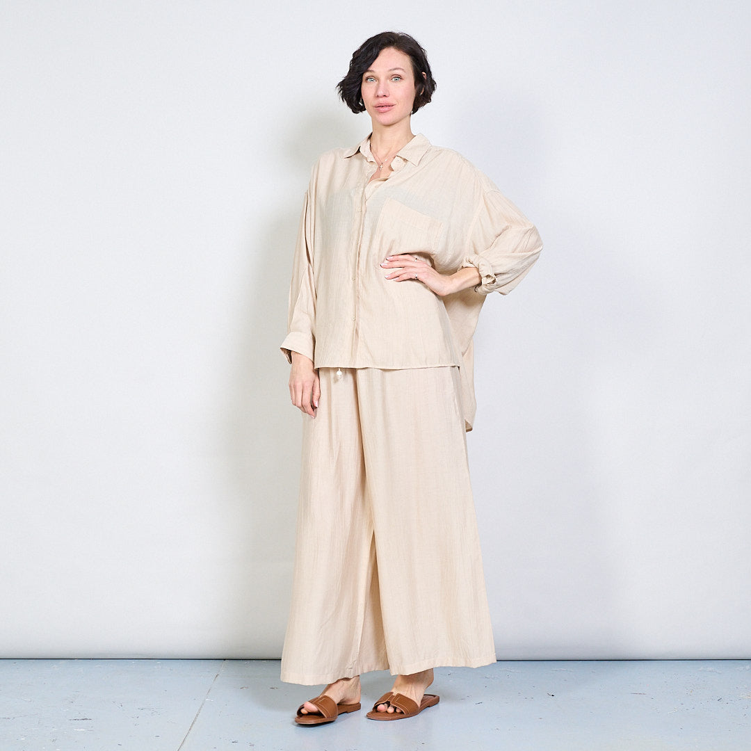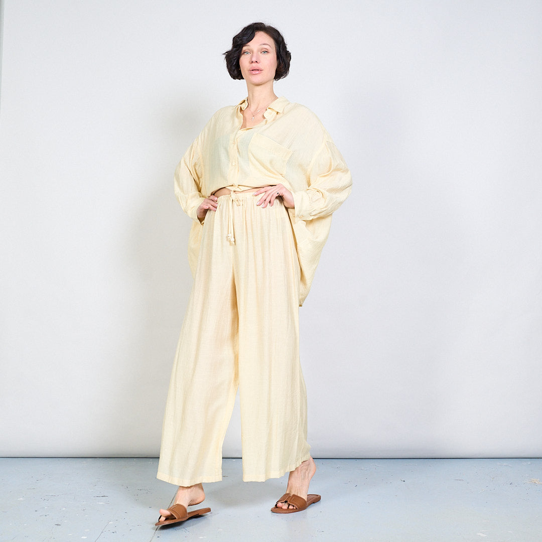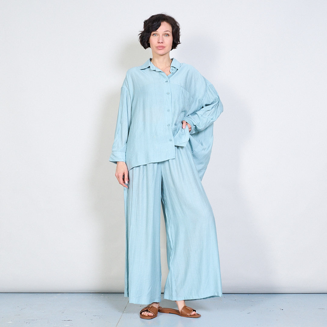 Flowy plačiosios kojos kelnės su didmenine plėvele