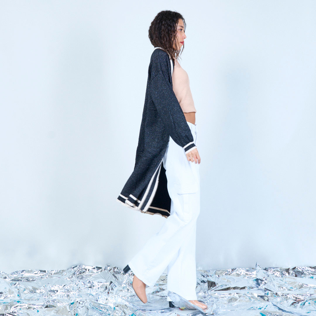 Ilgos blizgučių megztinis su kontrastine apdaila didmeninė prekyba
