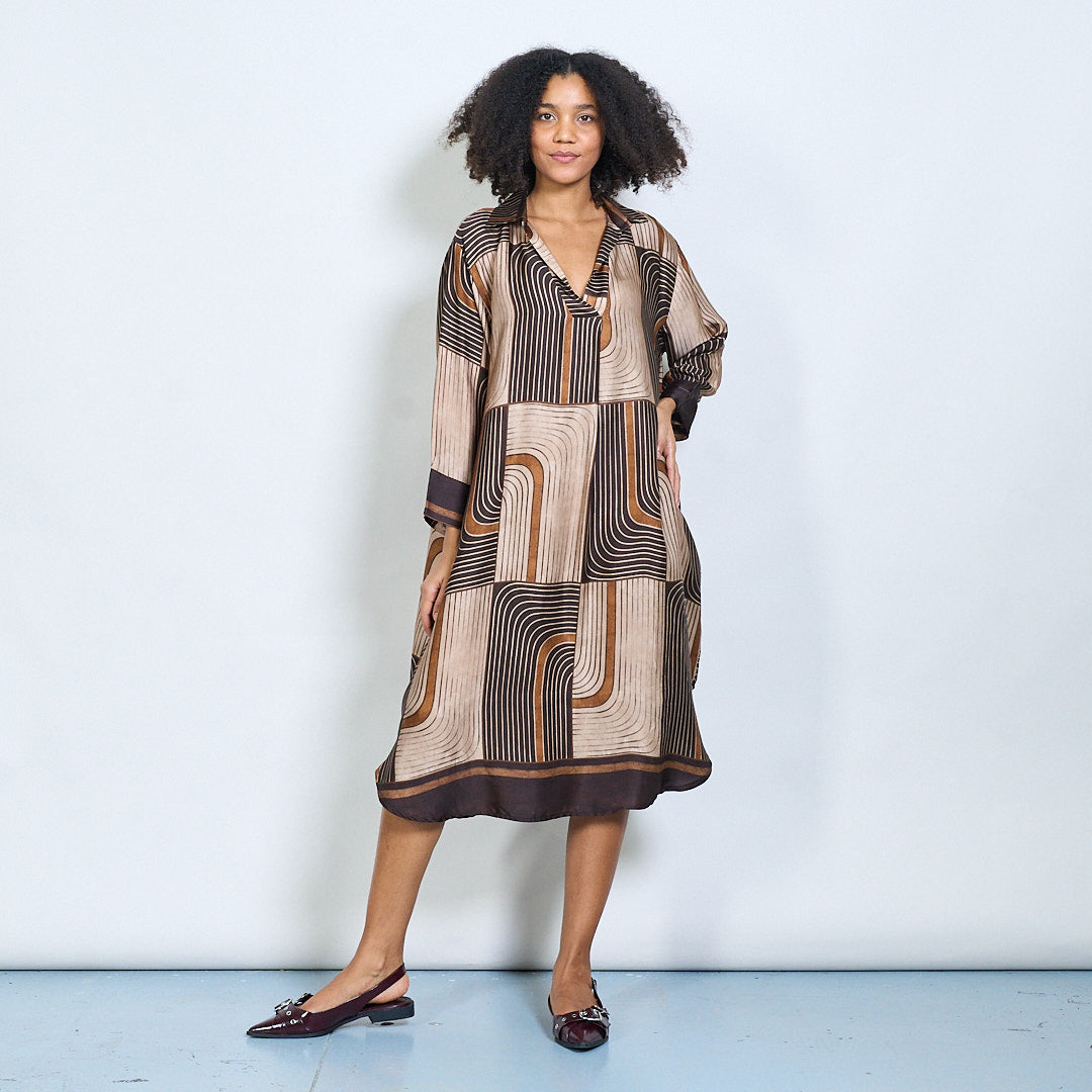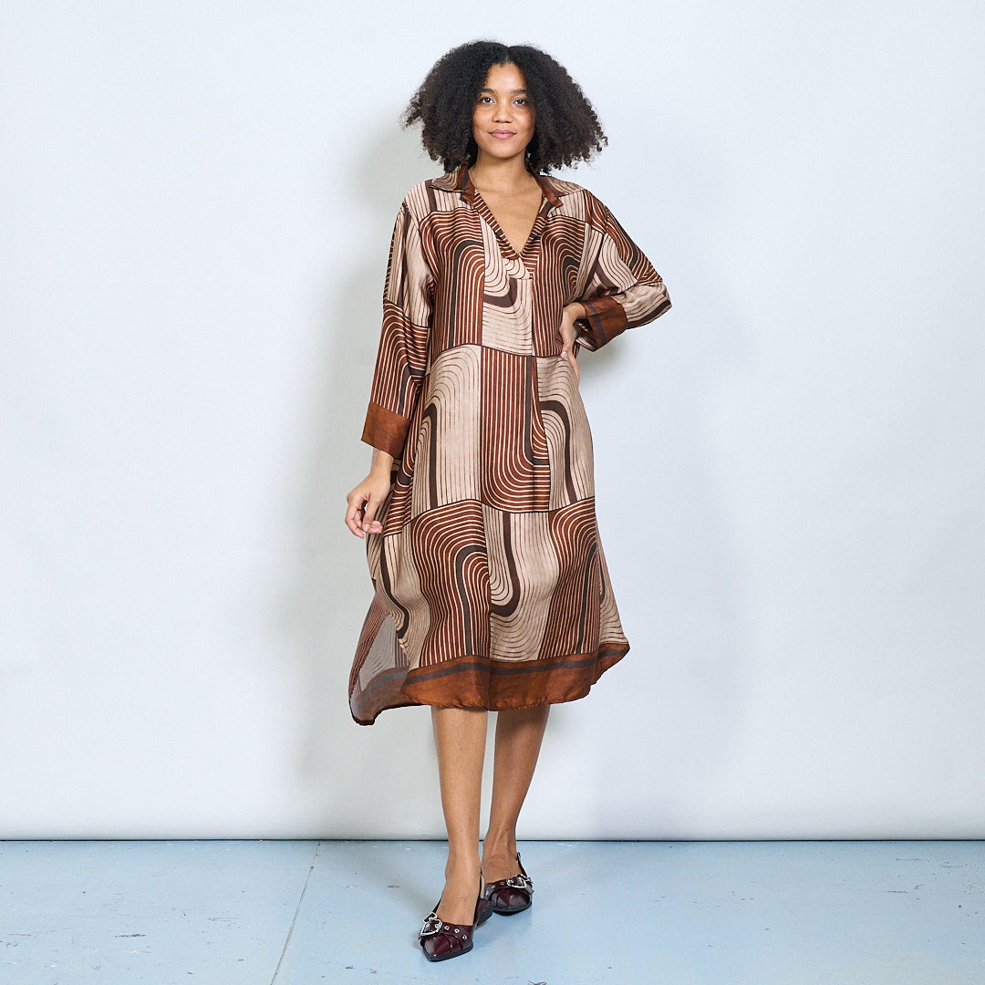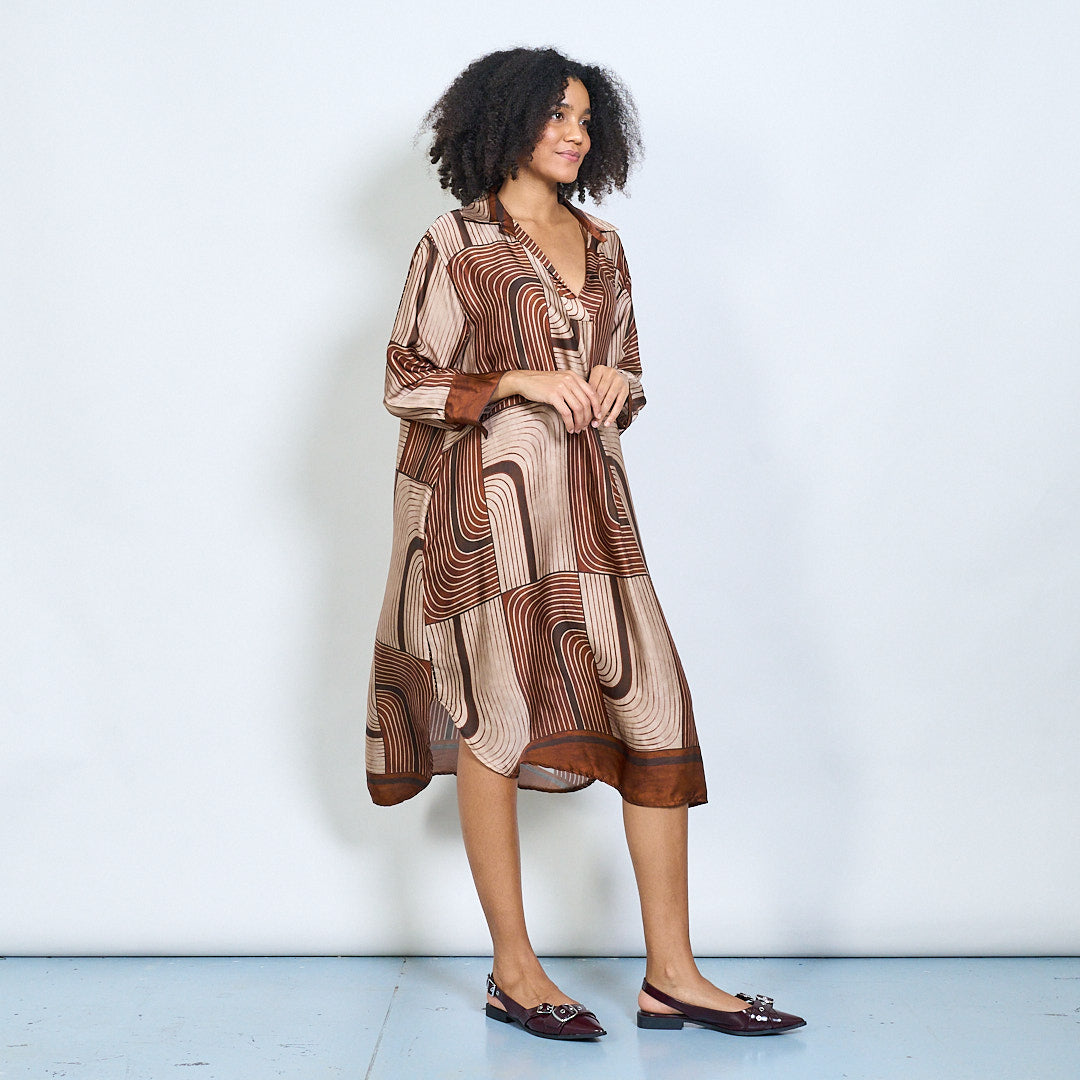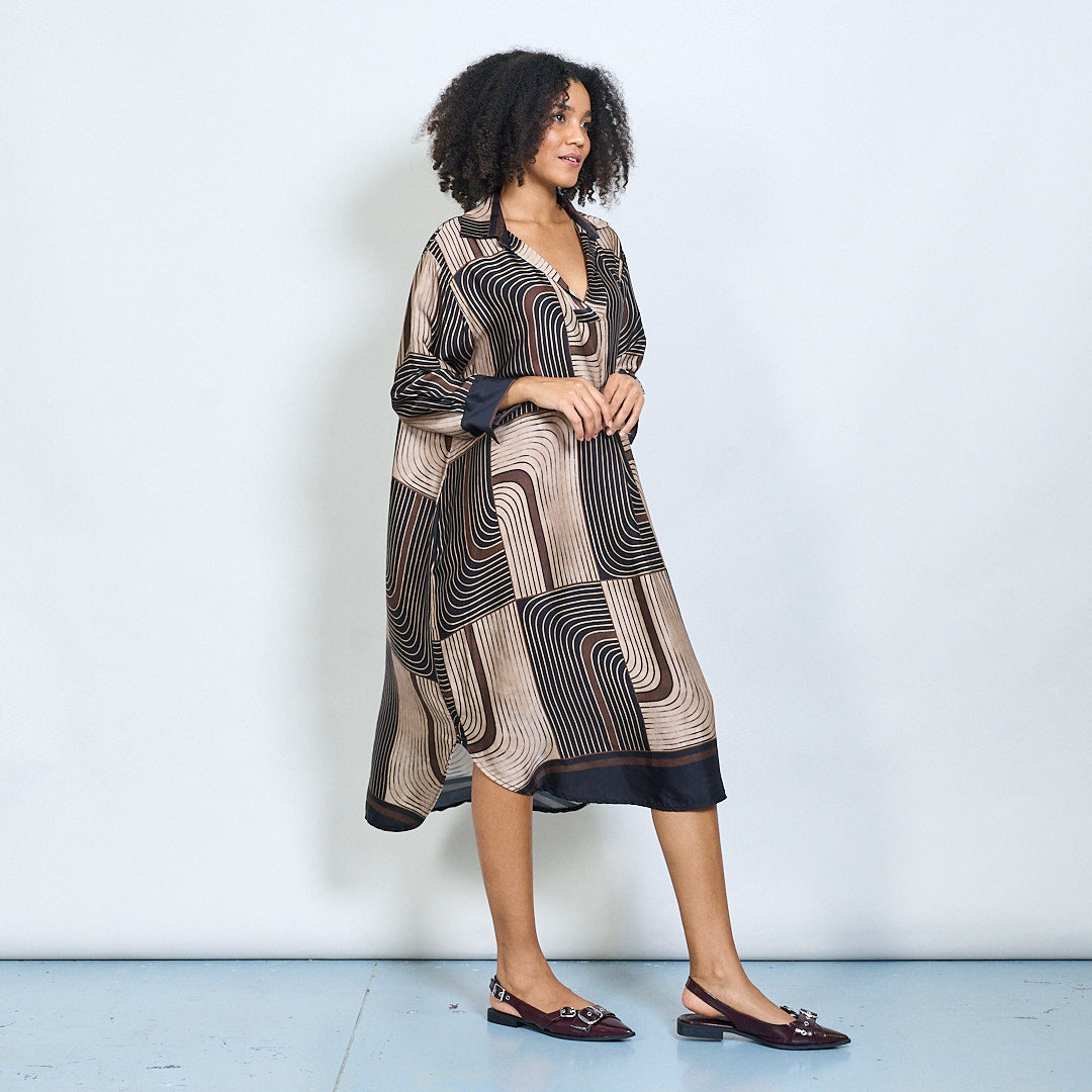 Retro geometrinis satino midi suknelė didmeninė prekyba