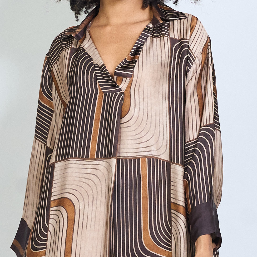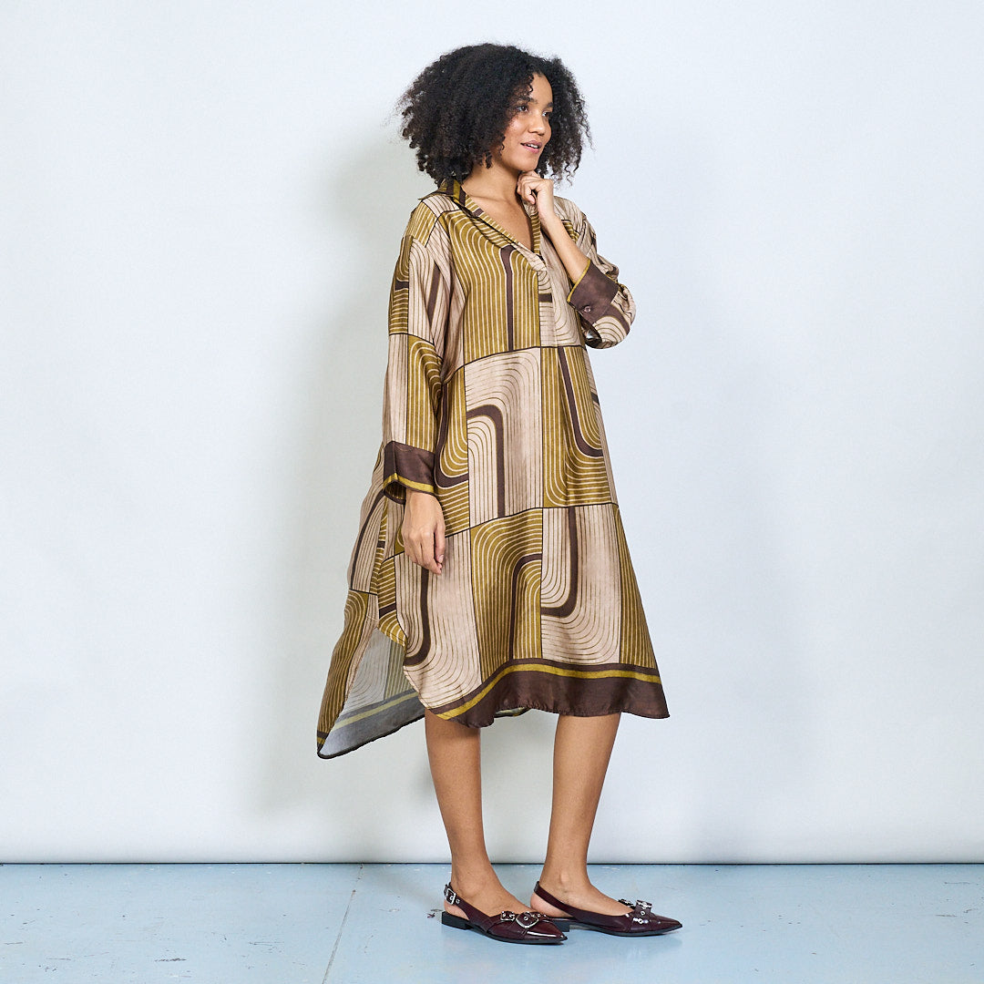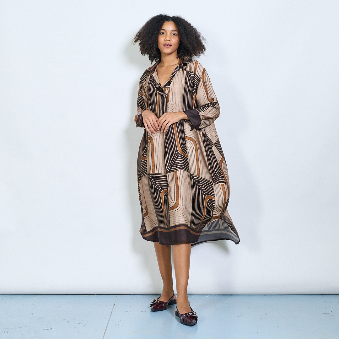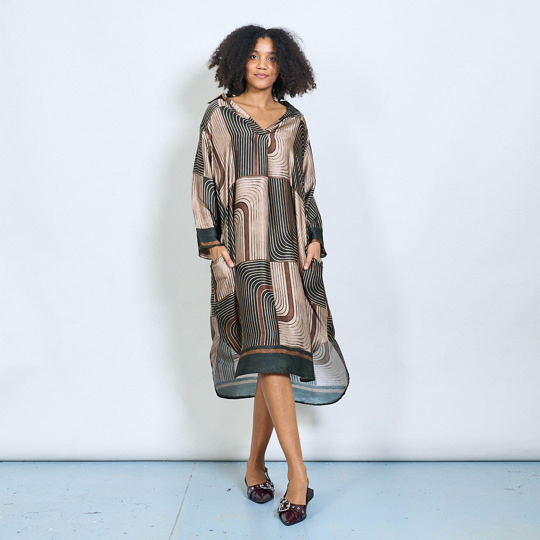 Retro geometrinis satino midi suknelė didmeninė prekyba