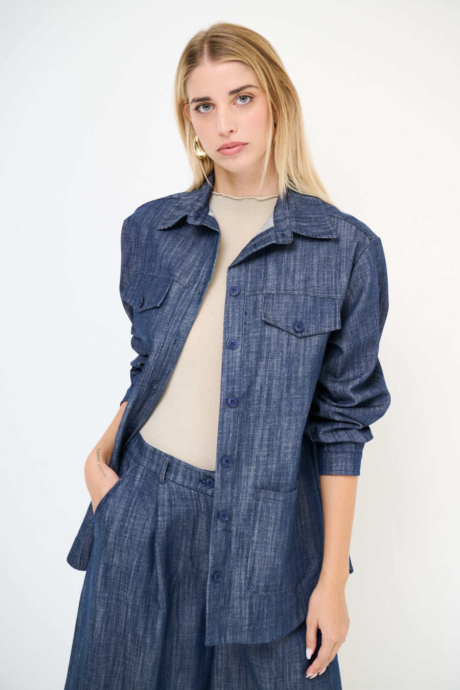 - Marškinių stiliaus striukė su struktūrizuota apykakle