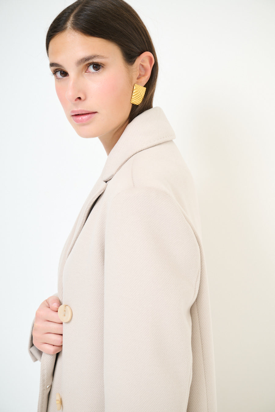 - Klasikinis dvigubo krūties priekis su struktūrizuotu mygtuko uždarymu