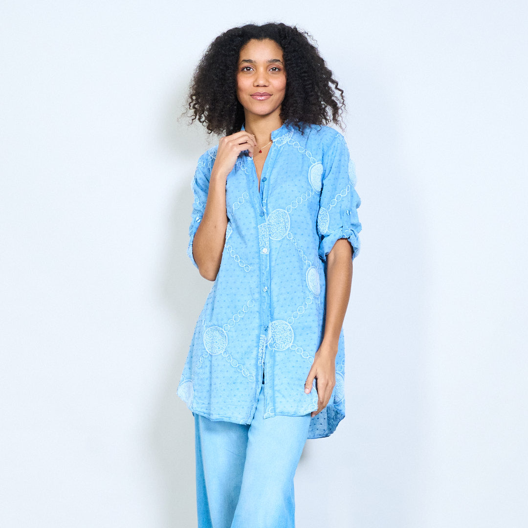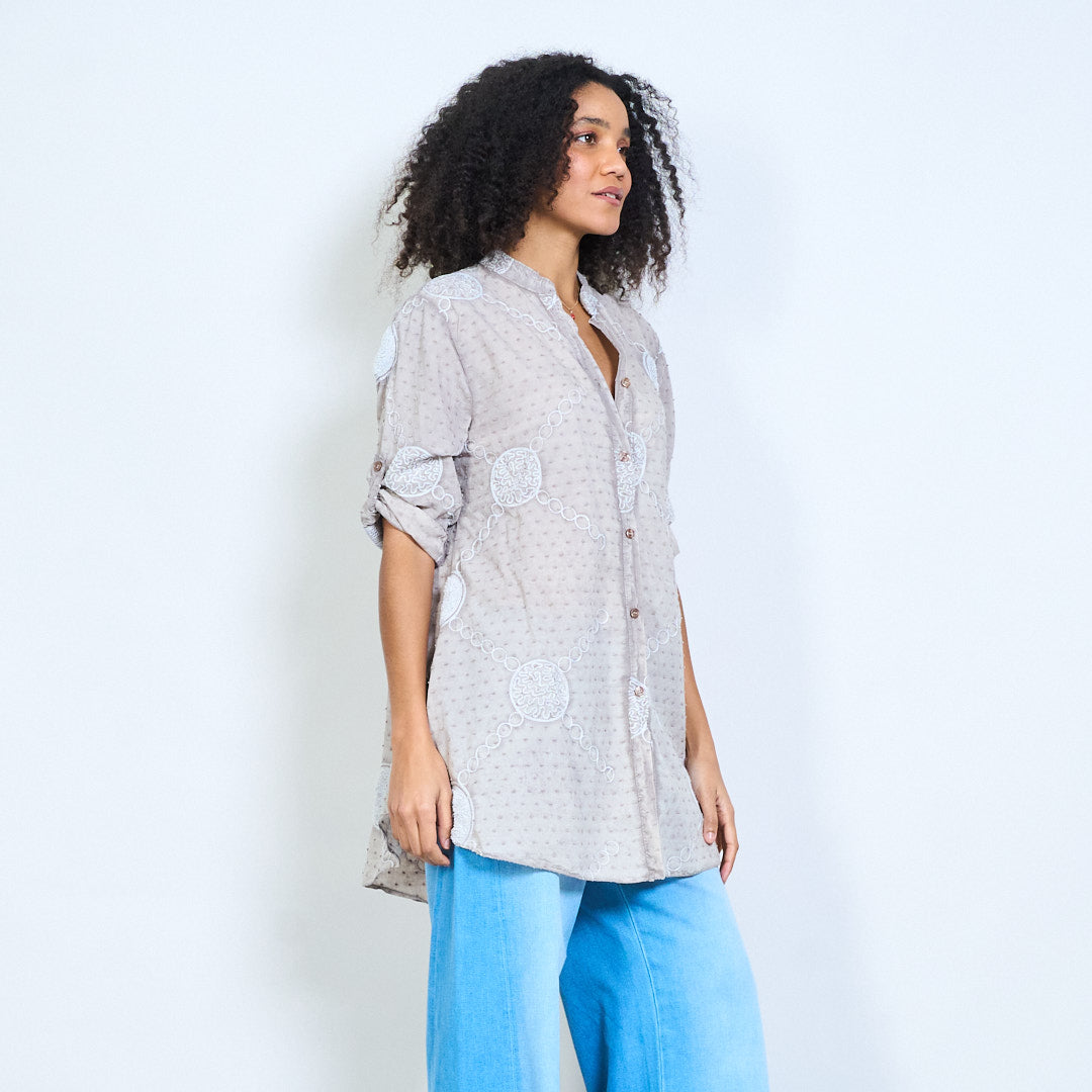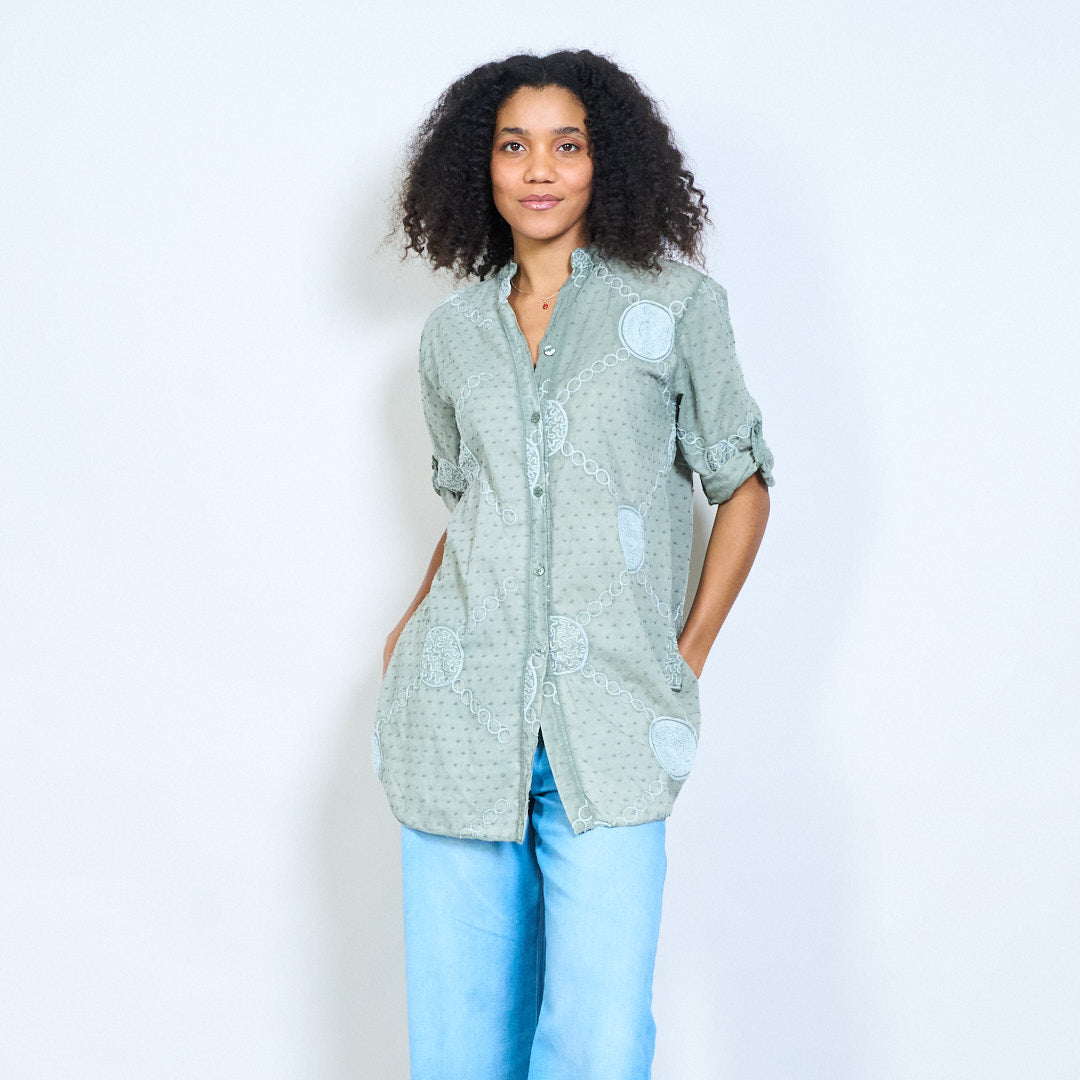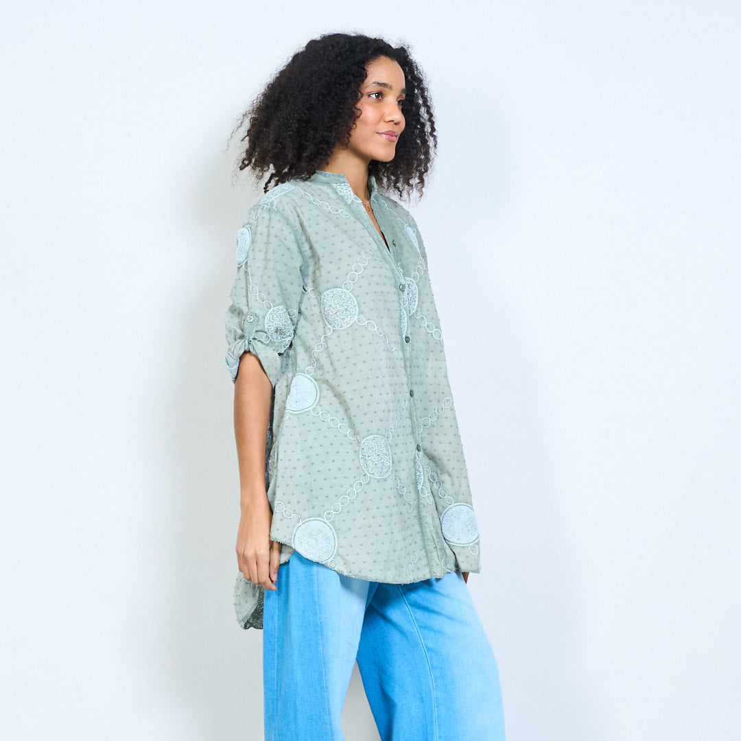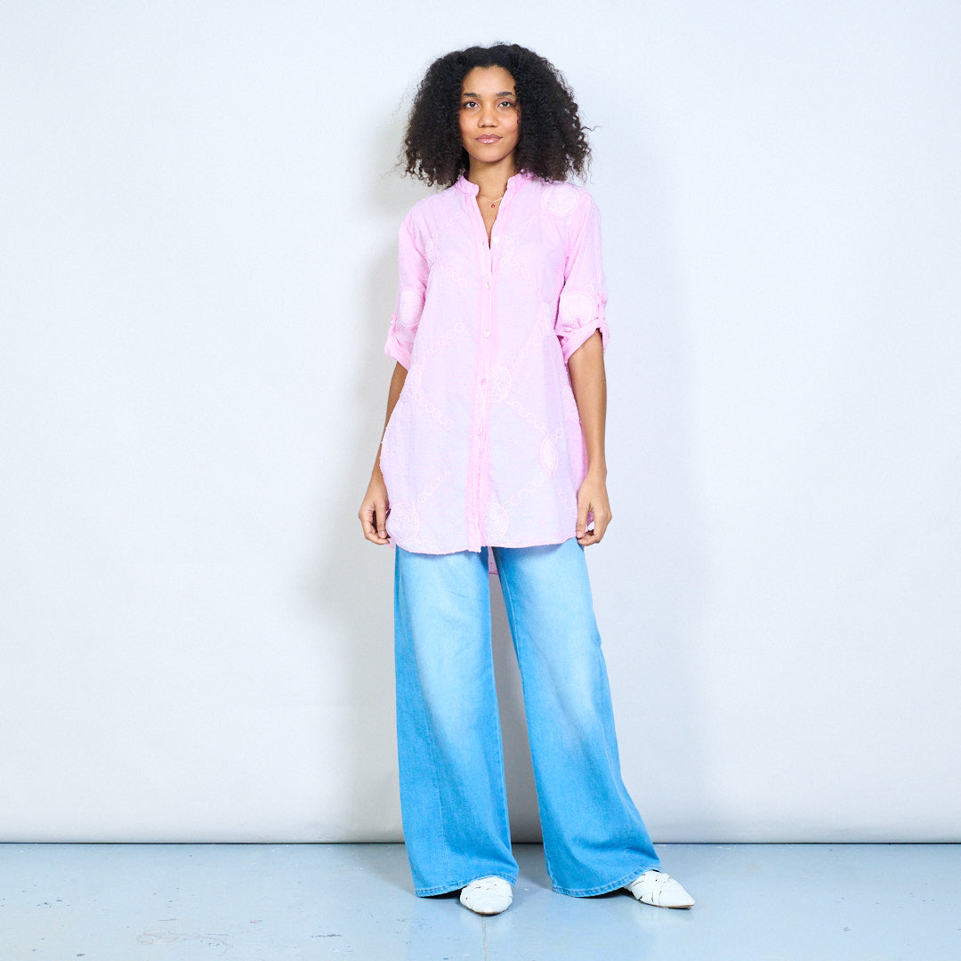 Apskrita siuvinėta palaidinė, suvyniota rankovėmis, didmeninė prekyba
