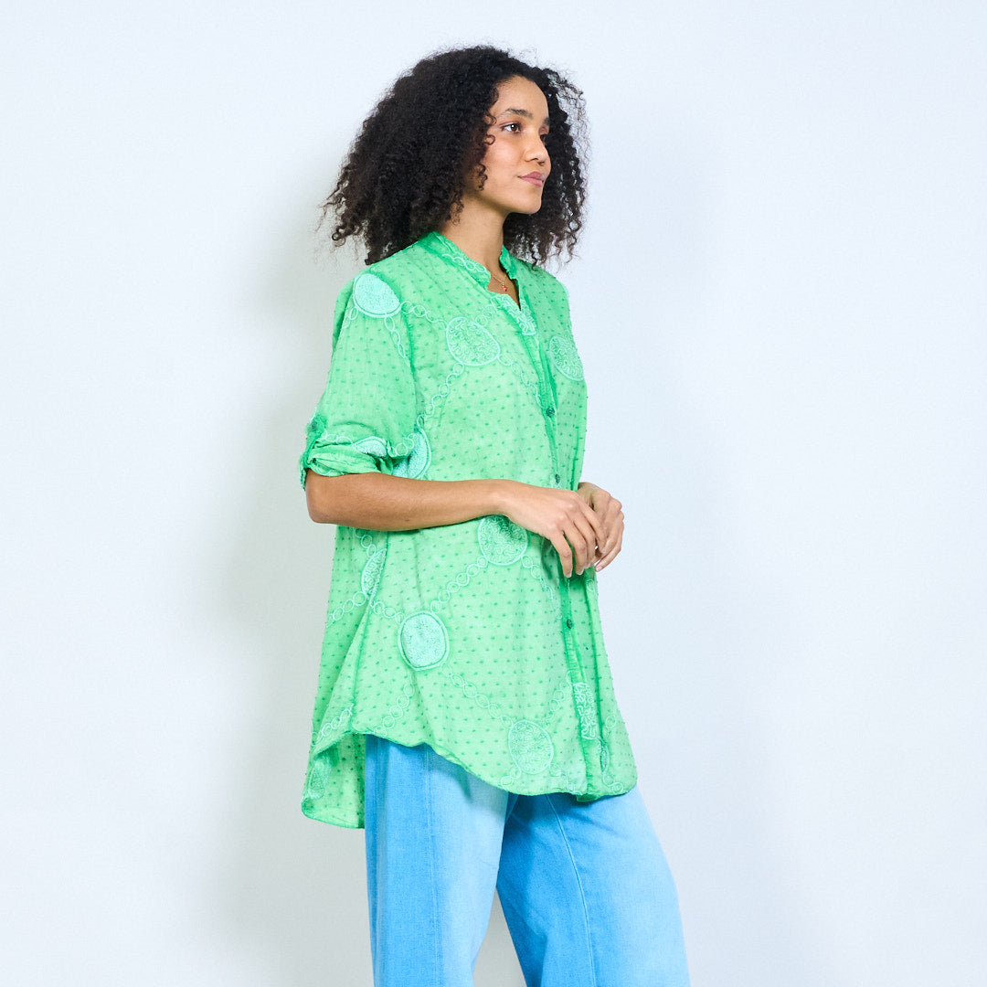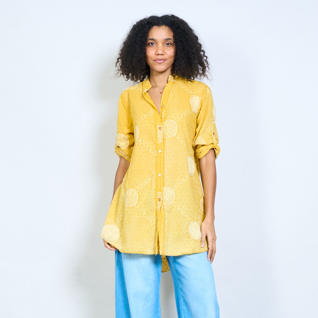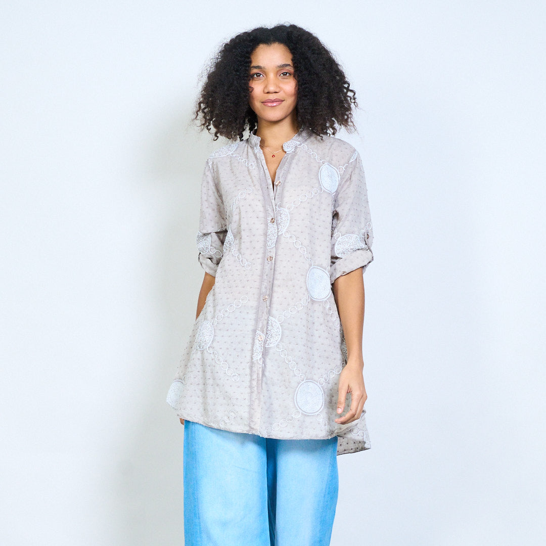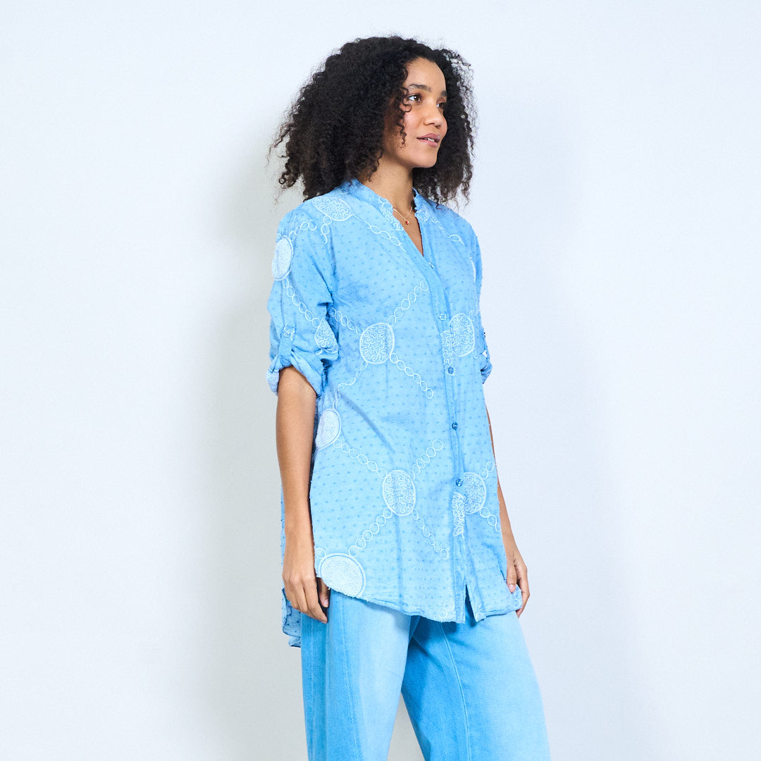 Apskrita siuvinėta palaidinė, suvyniota rankovėmis, didmeninė prekyba