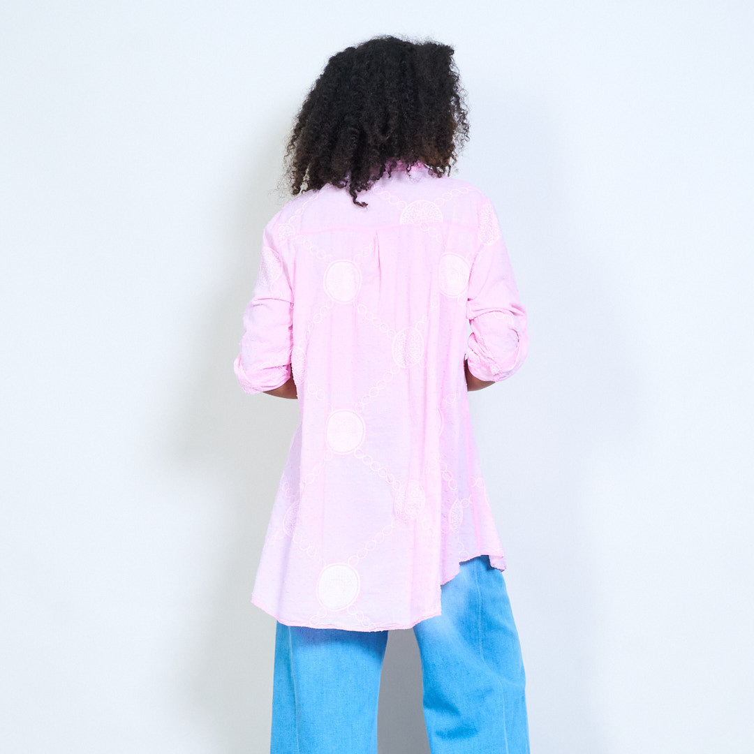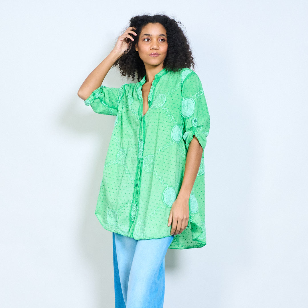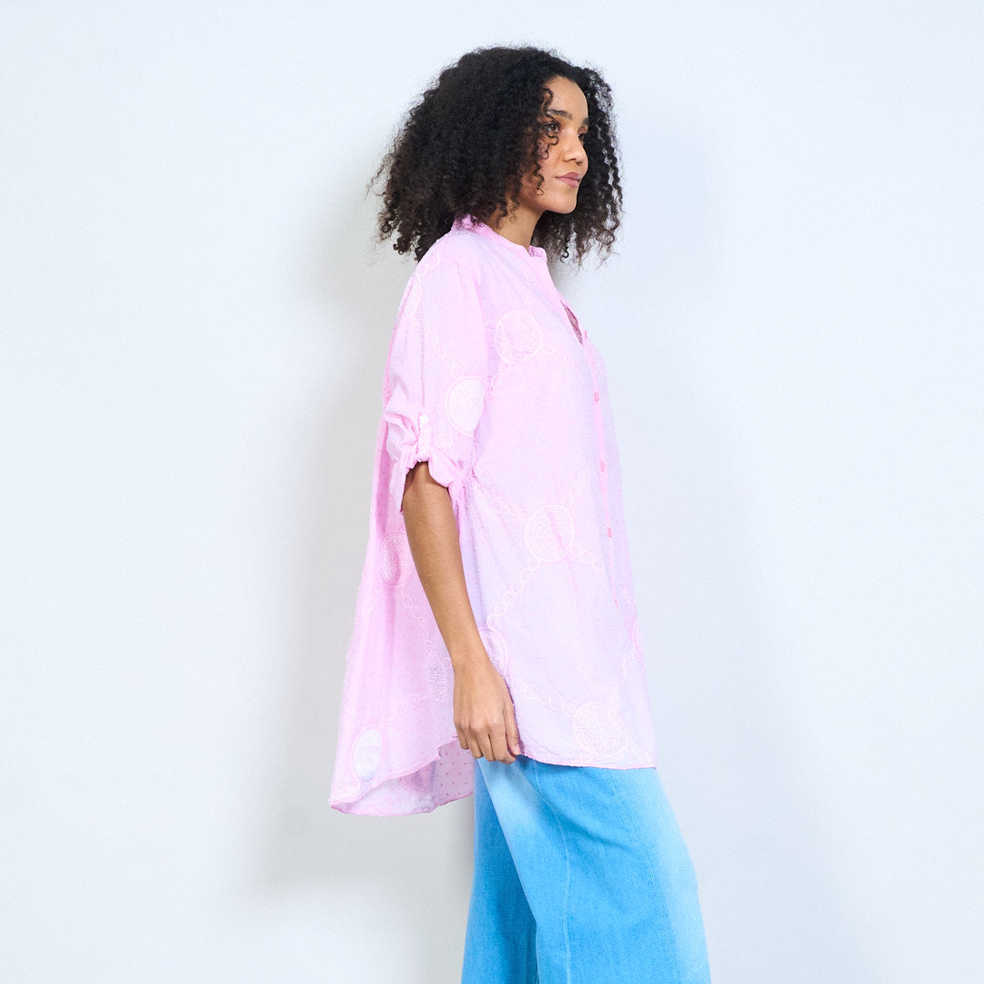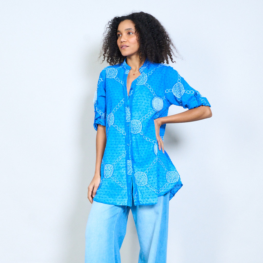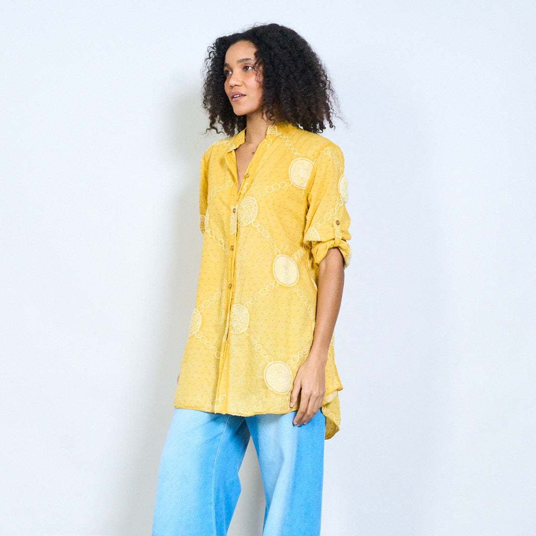 Apskrita siuvinėta palaidinė, suvyniota rankovėmis, didmeninė prekyba