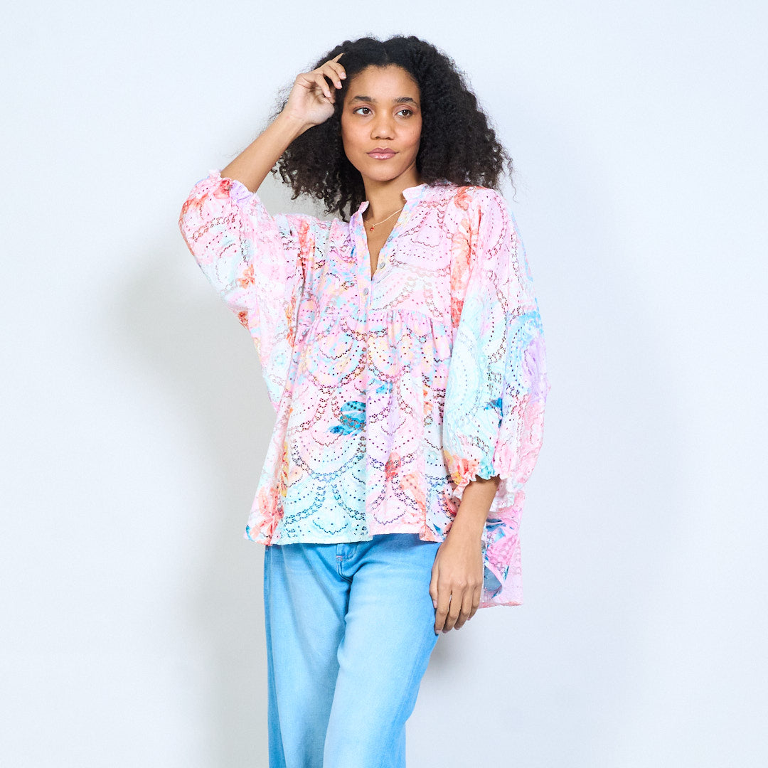 Palaidinė su gėlėmis paisley raštu, laisvai priglundanti, didmeninė prekyba