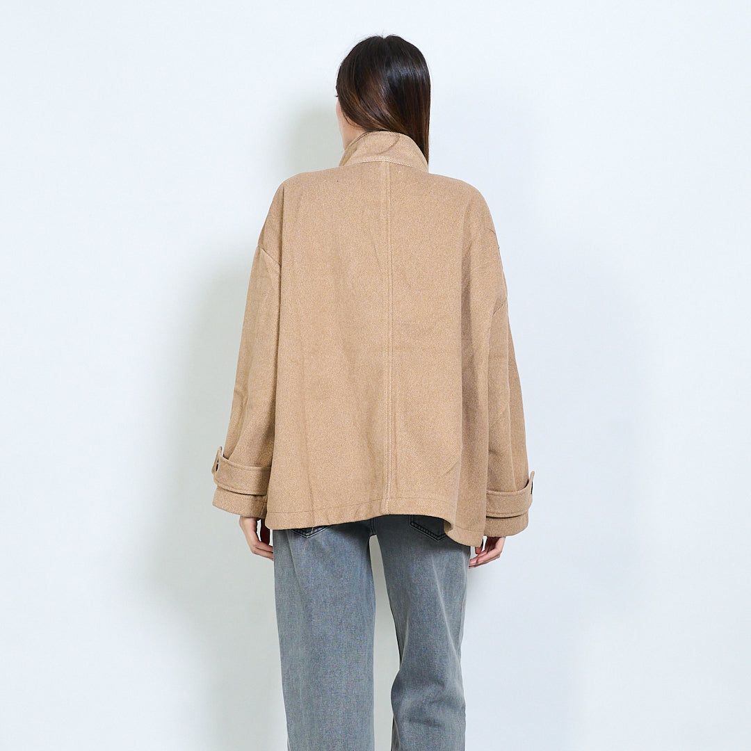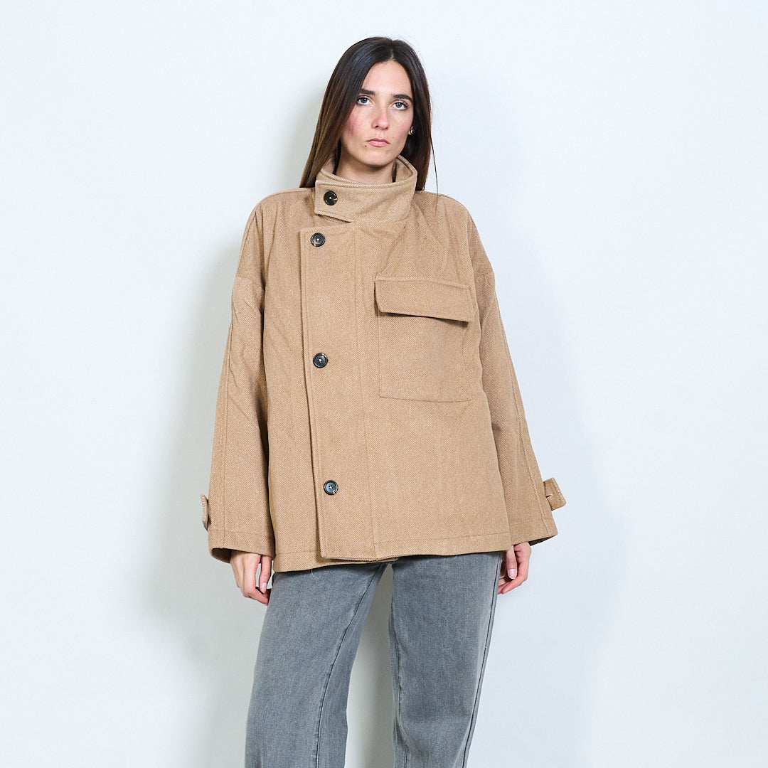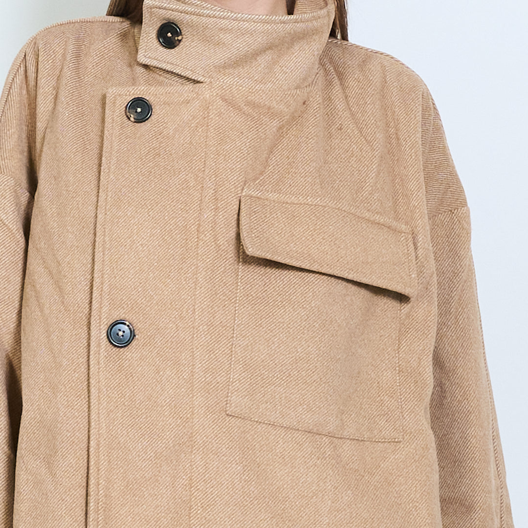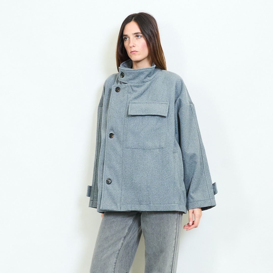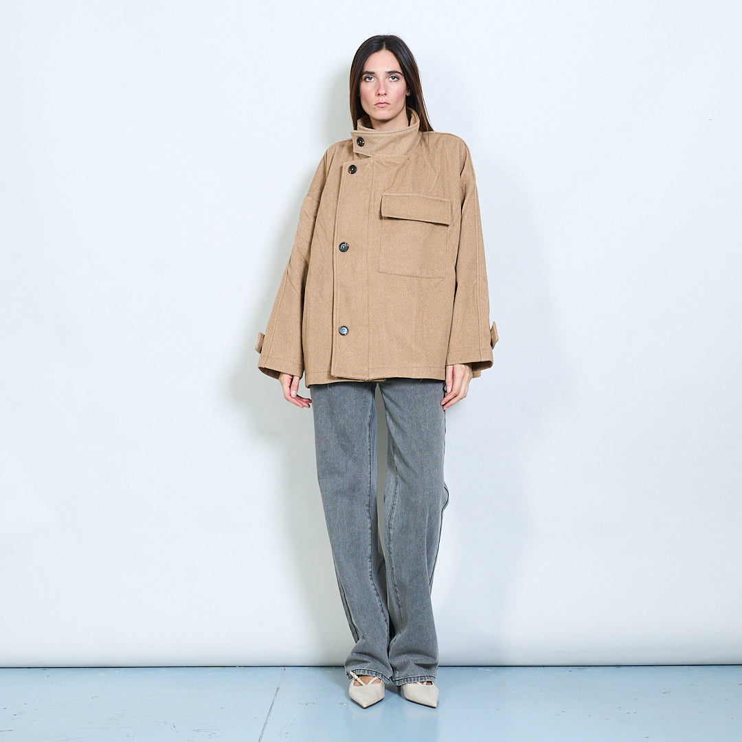 Asimetriškas mygtukas aukšto kaklo apkarpytas paltas didmeninė prekyba