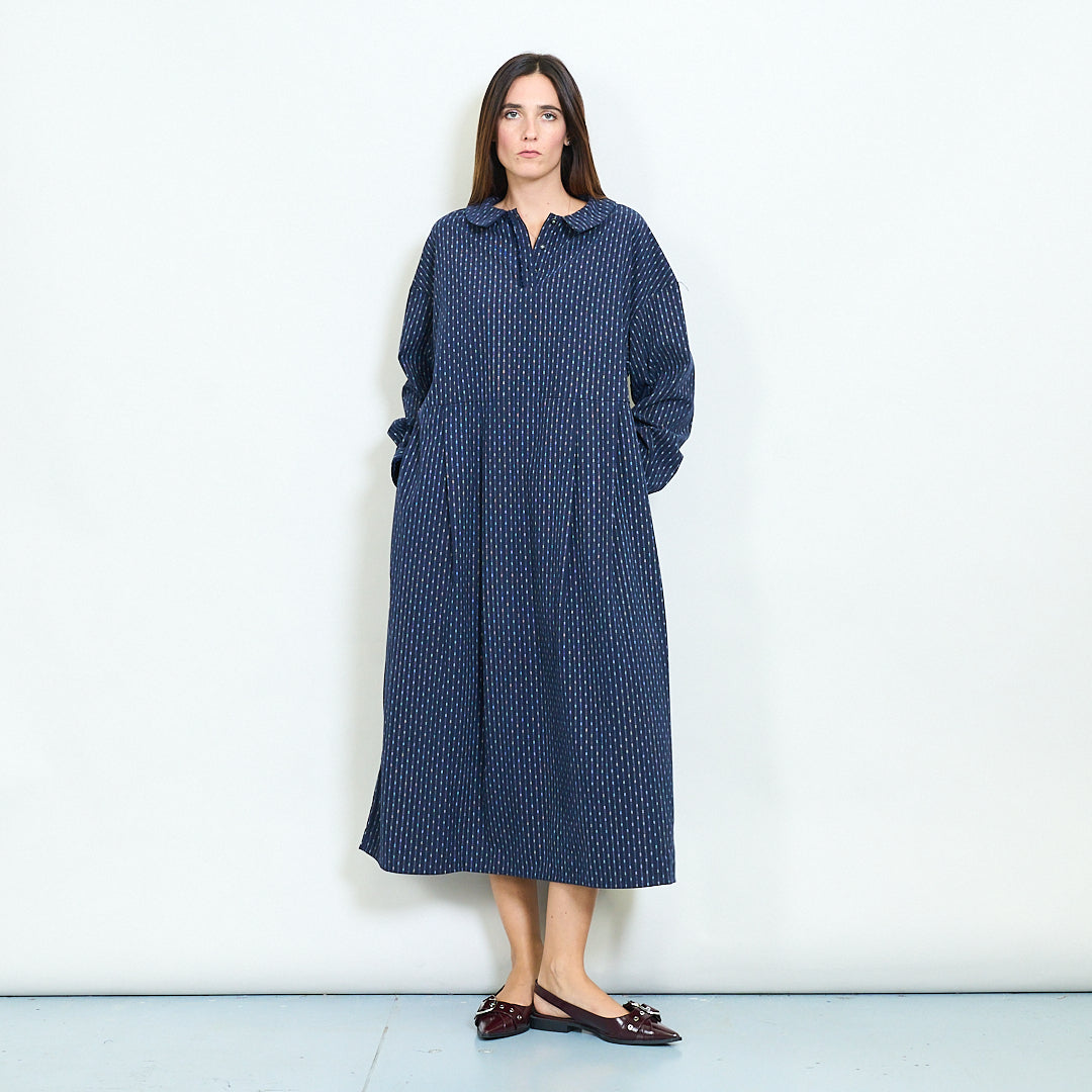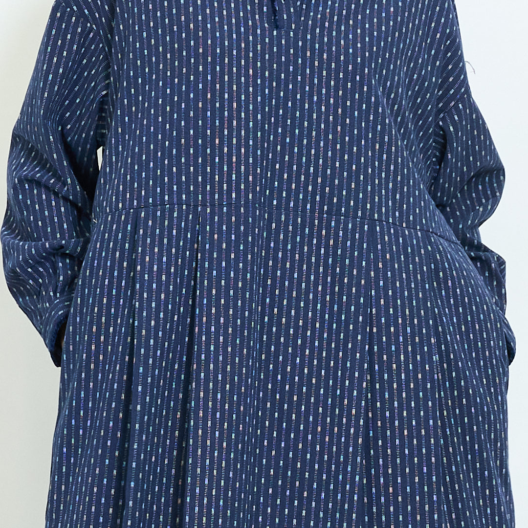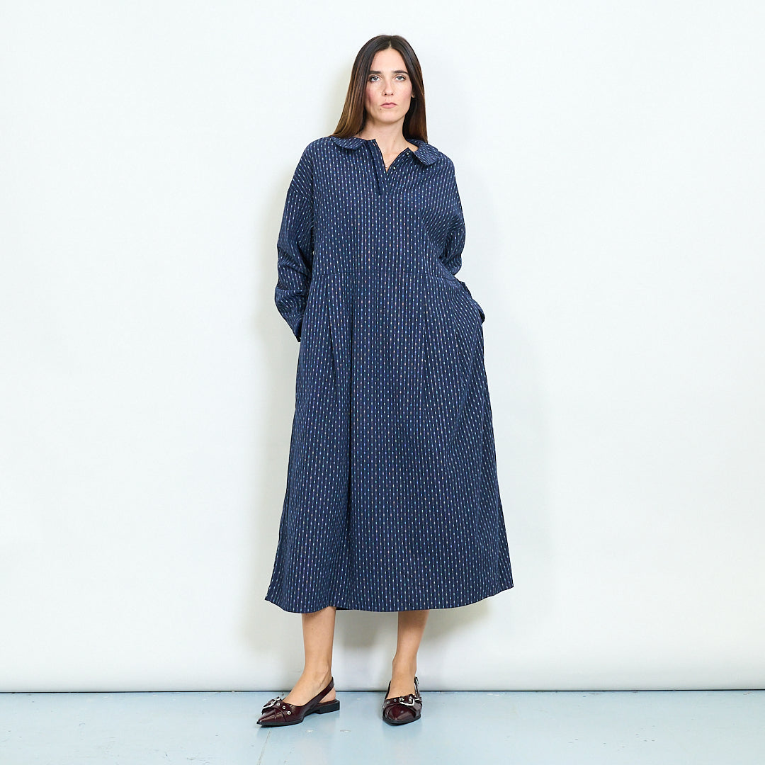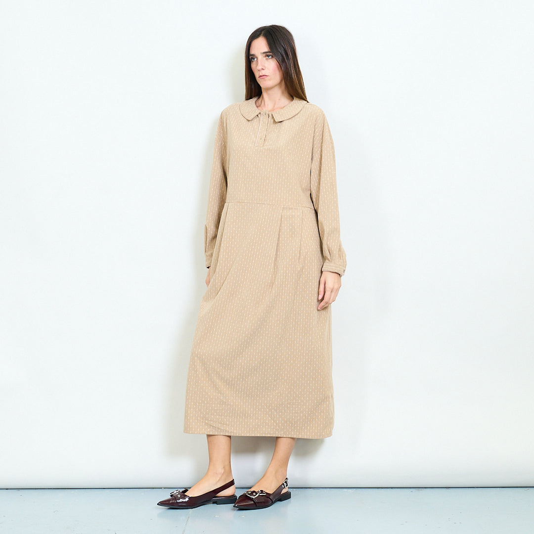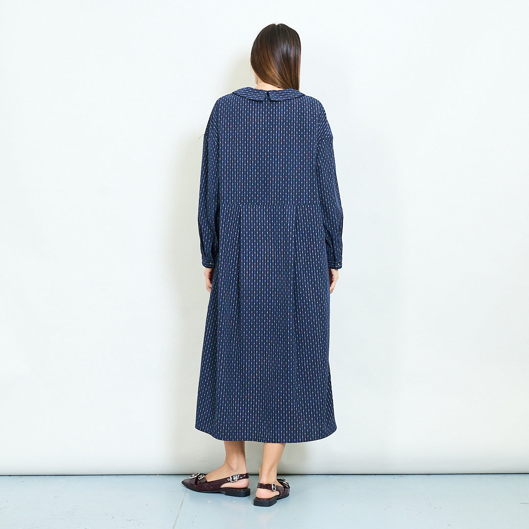 Dryžuotas mygtukas priekinis Peterio paner apykaklės ilgomis rankovėmis midi suknelė didmeninė prekyba