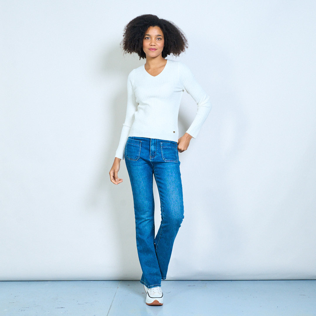 Didmeninė prekyba megztu su briaunuota V formos iškirpte