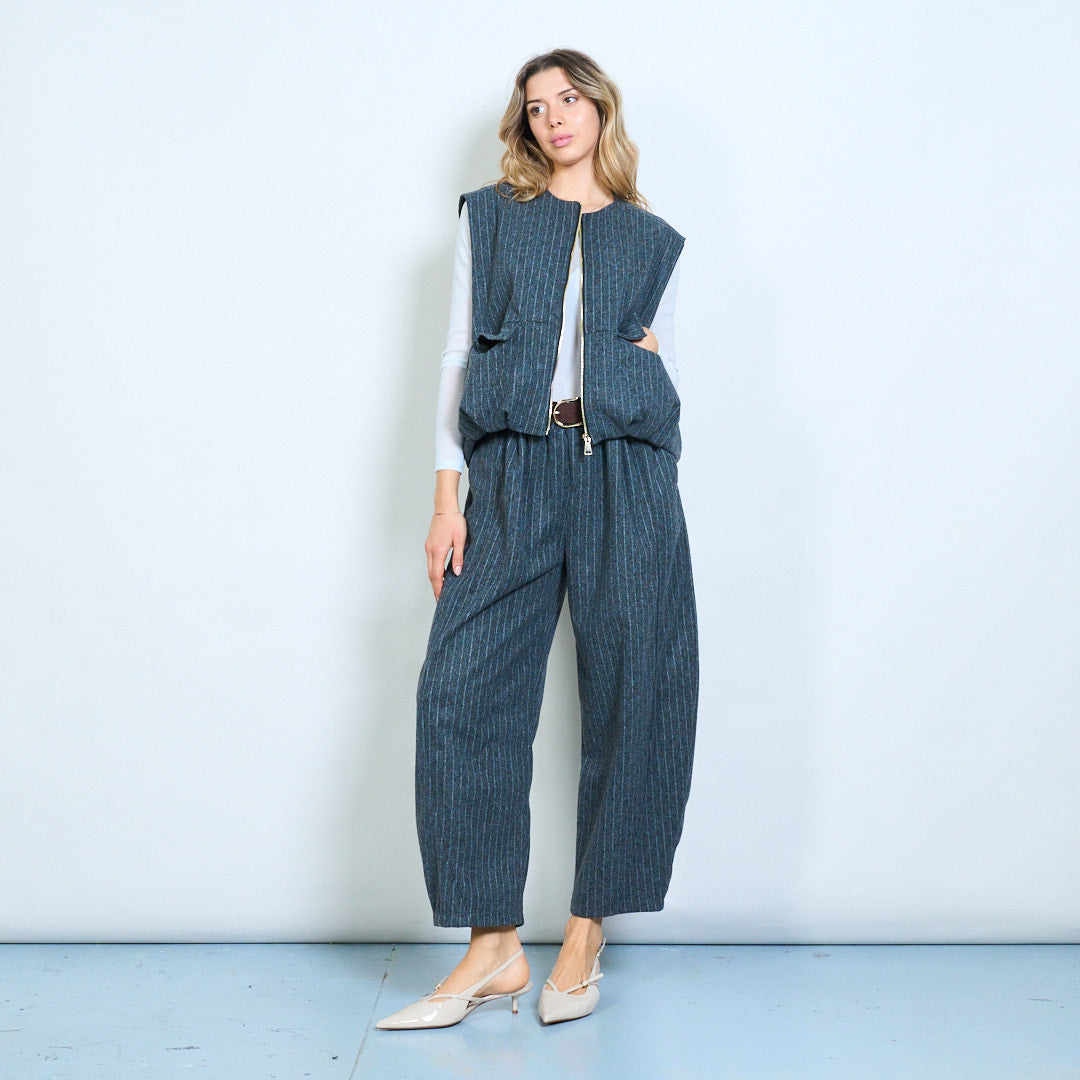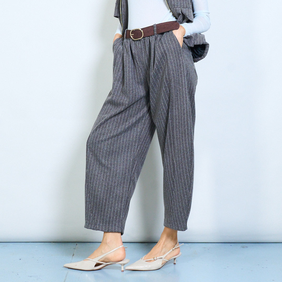 Dryžuotas raštas aukšto juosmens laisvų kelnių su diržo didmenine prekyba