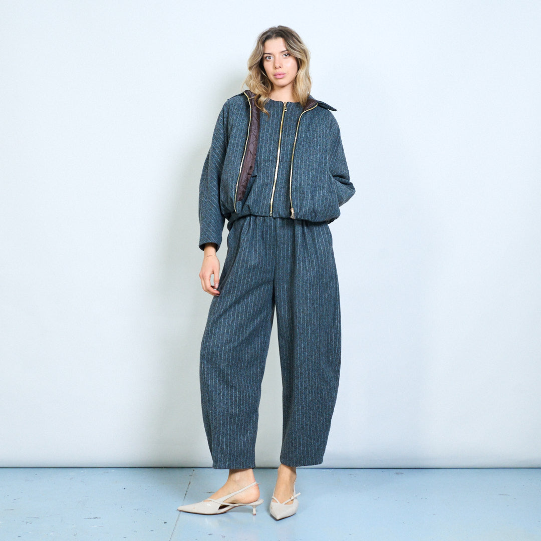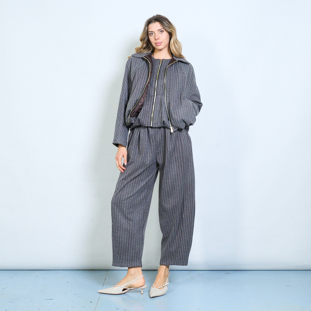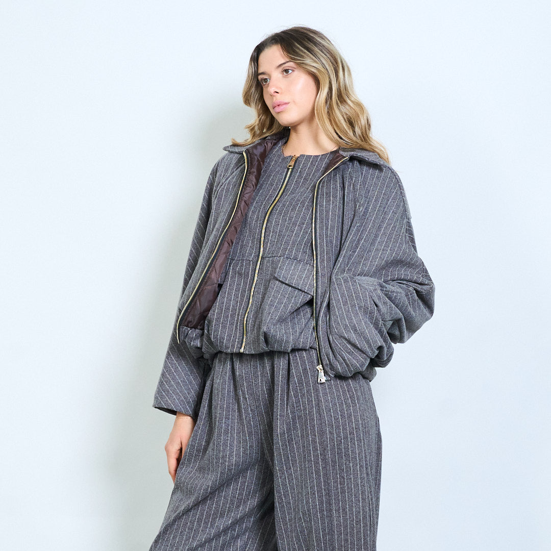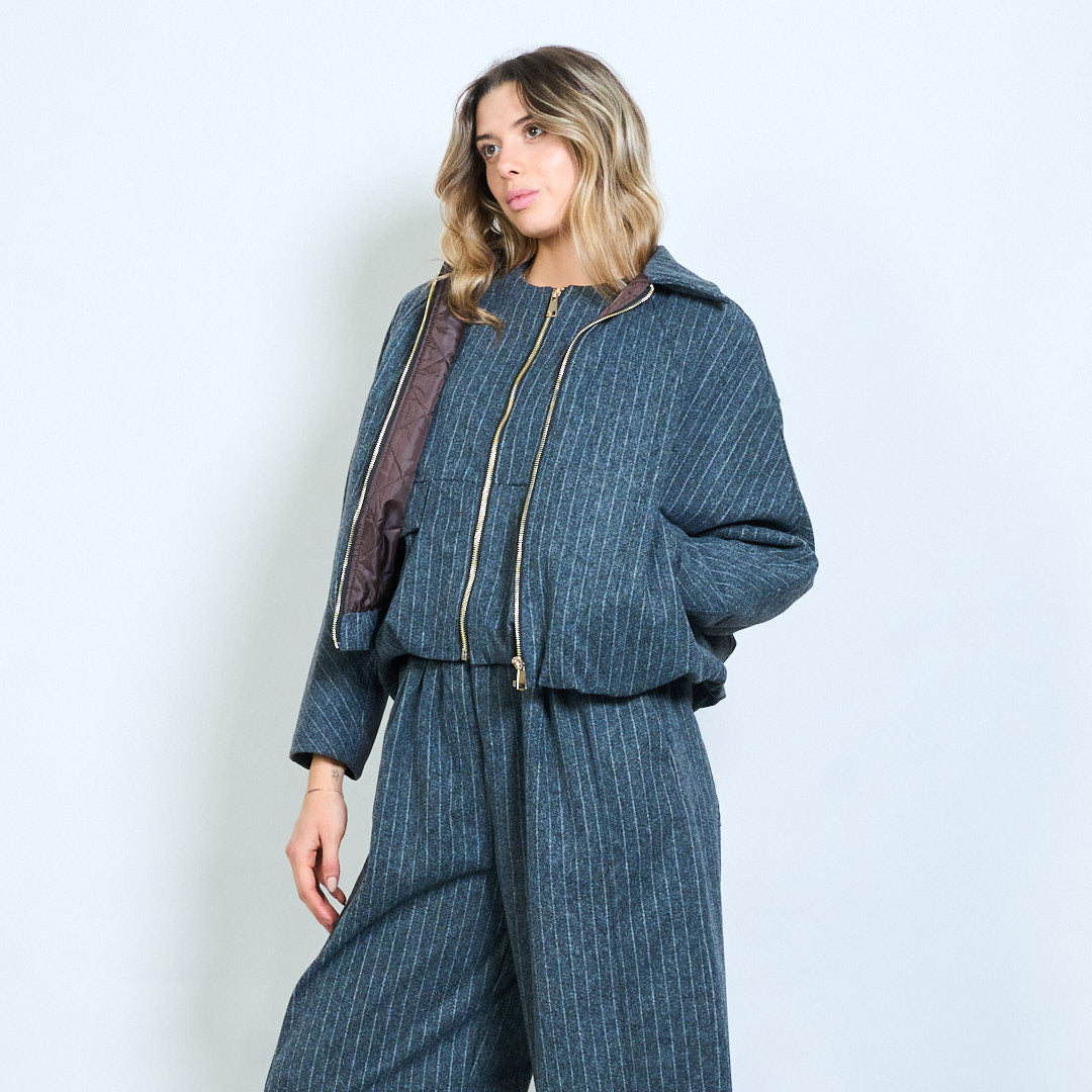 Dryžuotas raštas užtraukia apkarpytą striukę su plačia apykakle didmenine prekyba