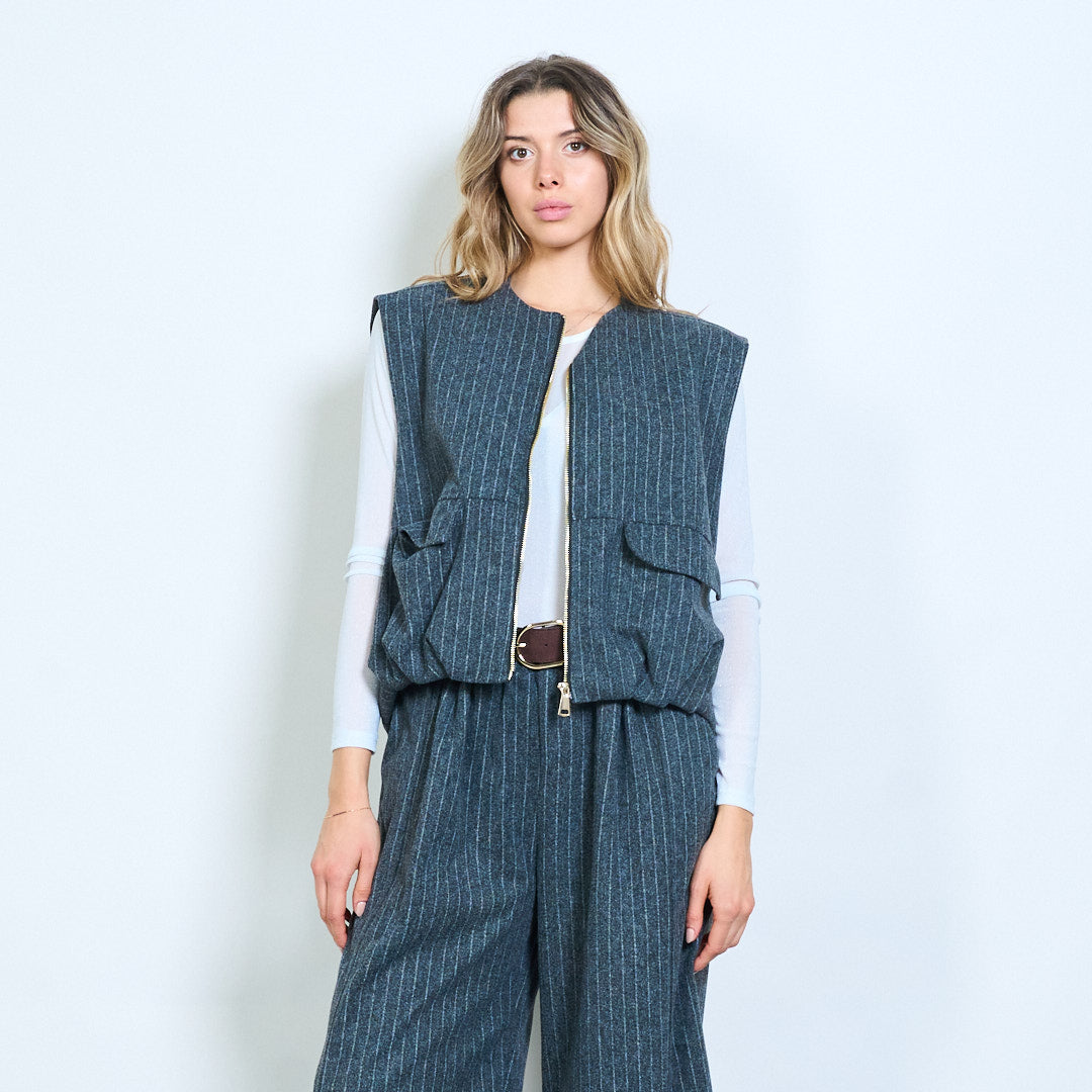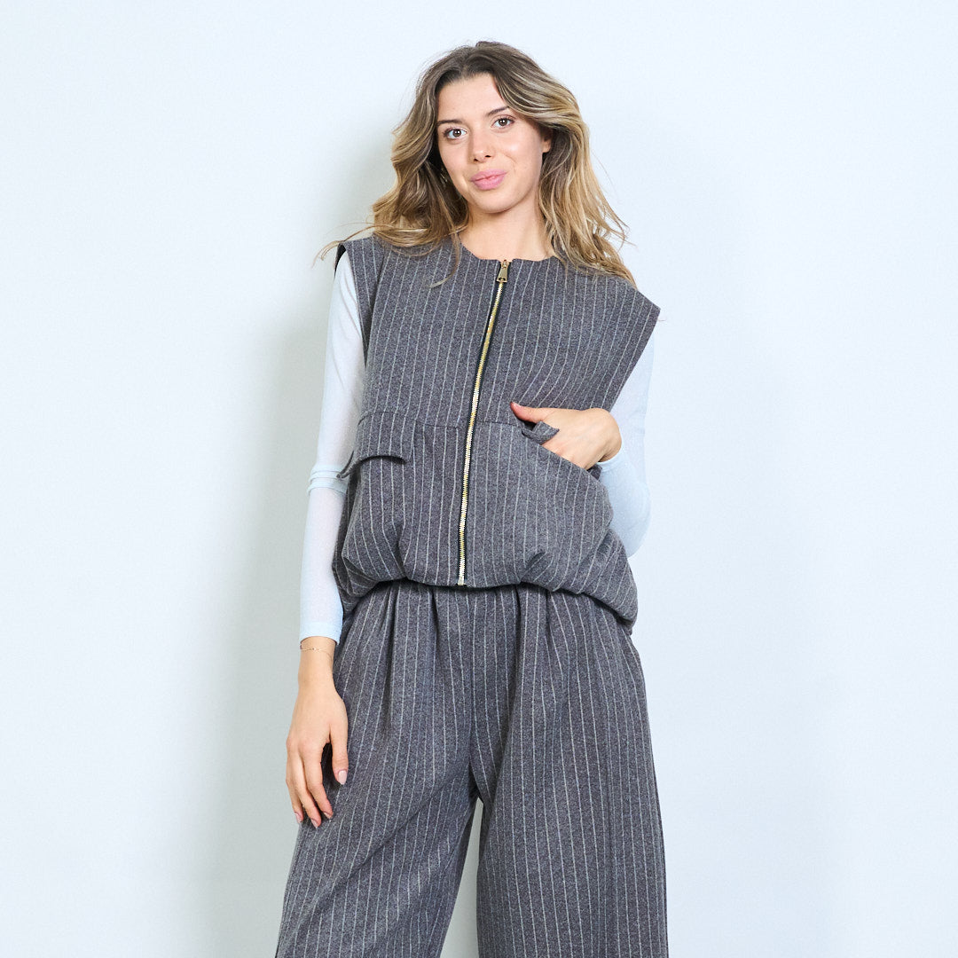 Dryžuotas raštas užtrauktuko priekinė be rankovių liemenė su didmenine detale