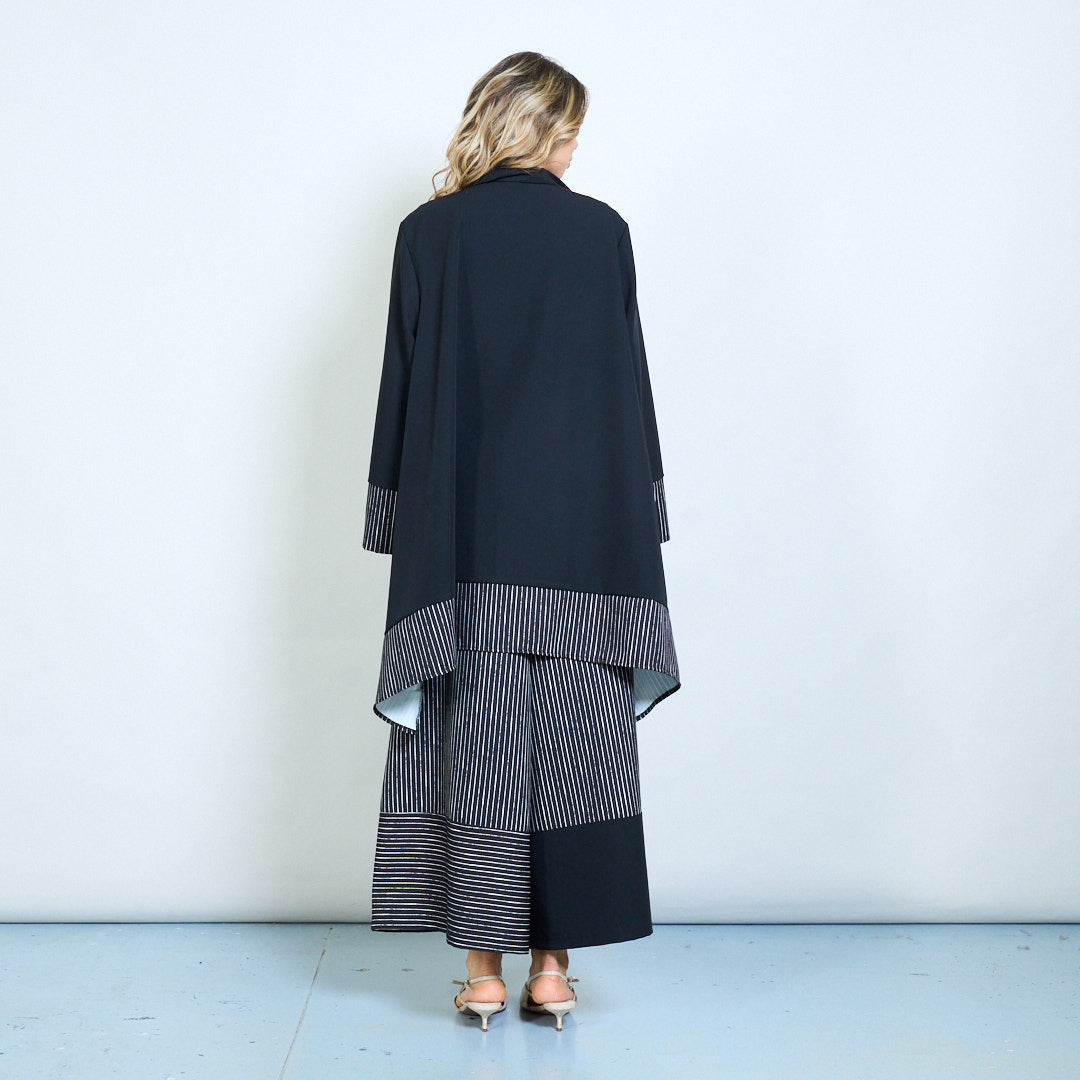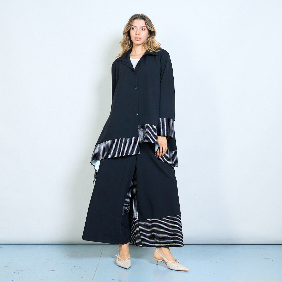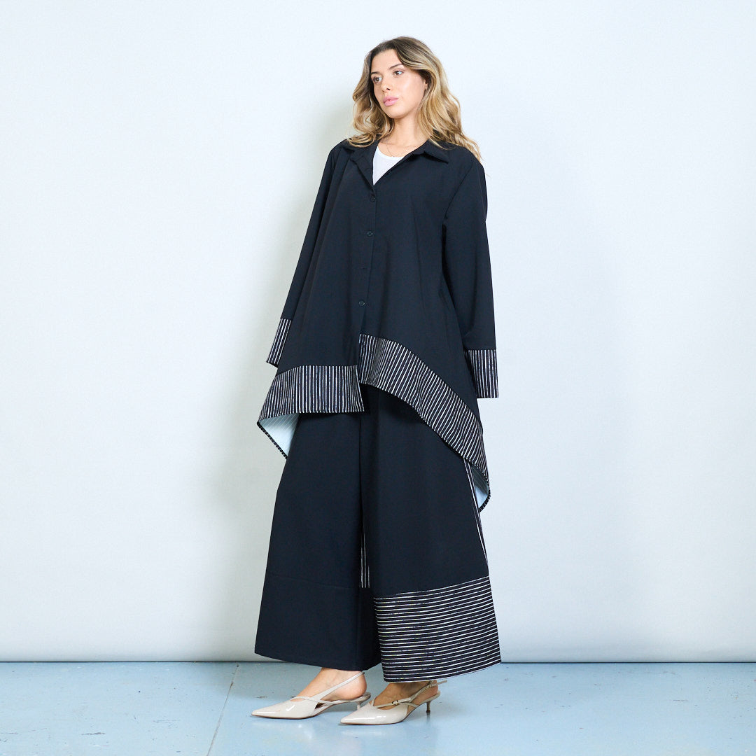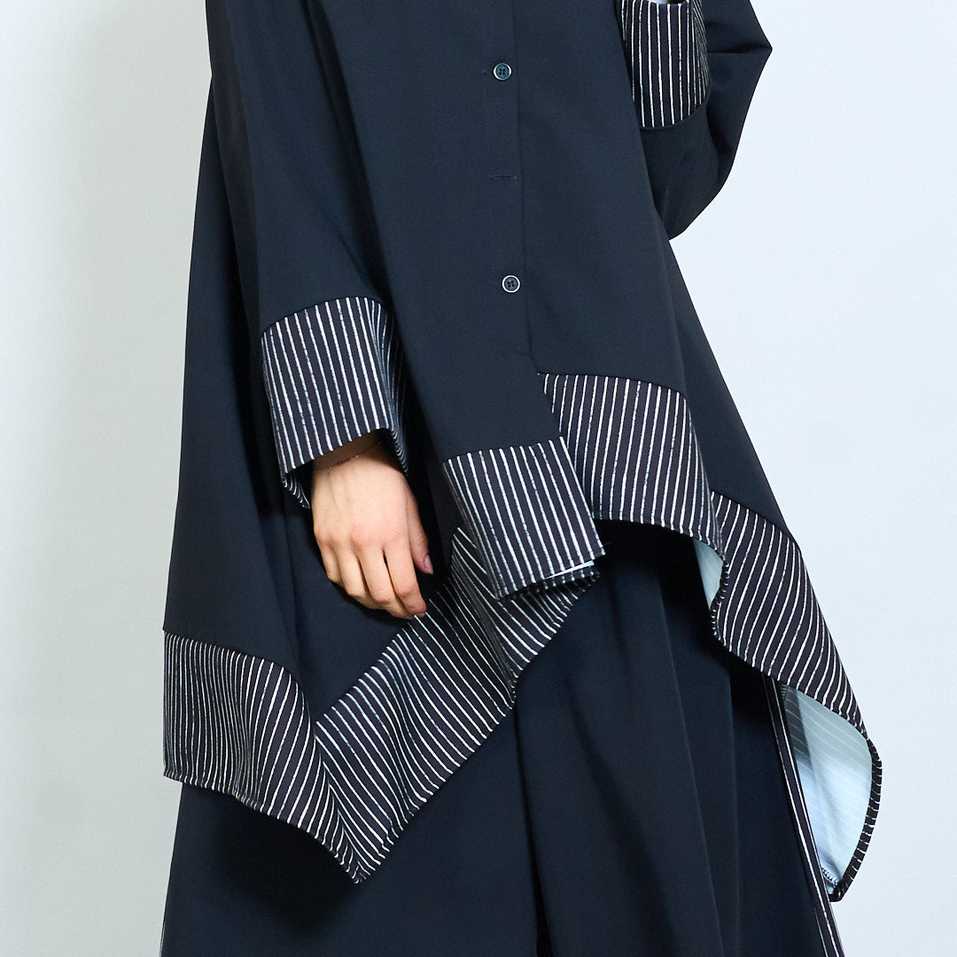 - Asimetrinė hemline sustiprinta dryžuota detalė