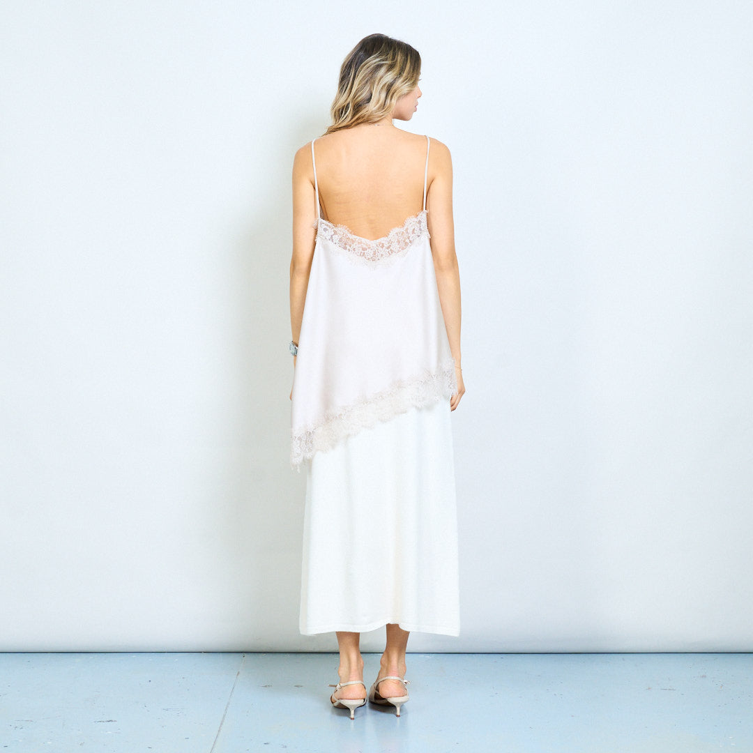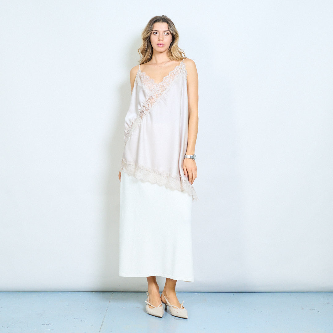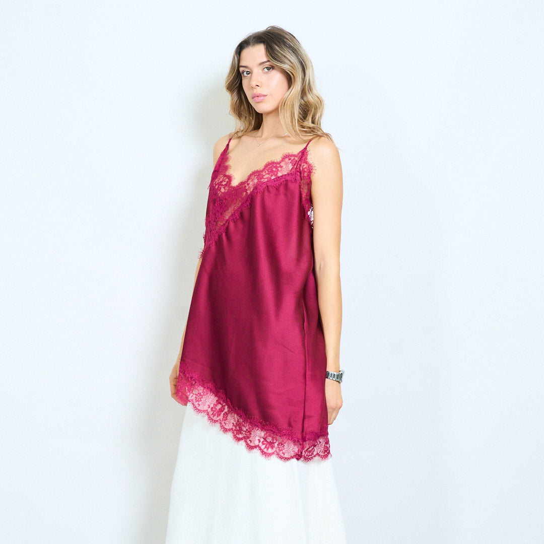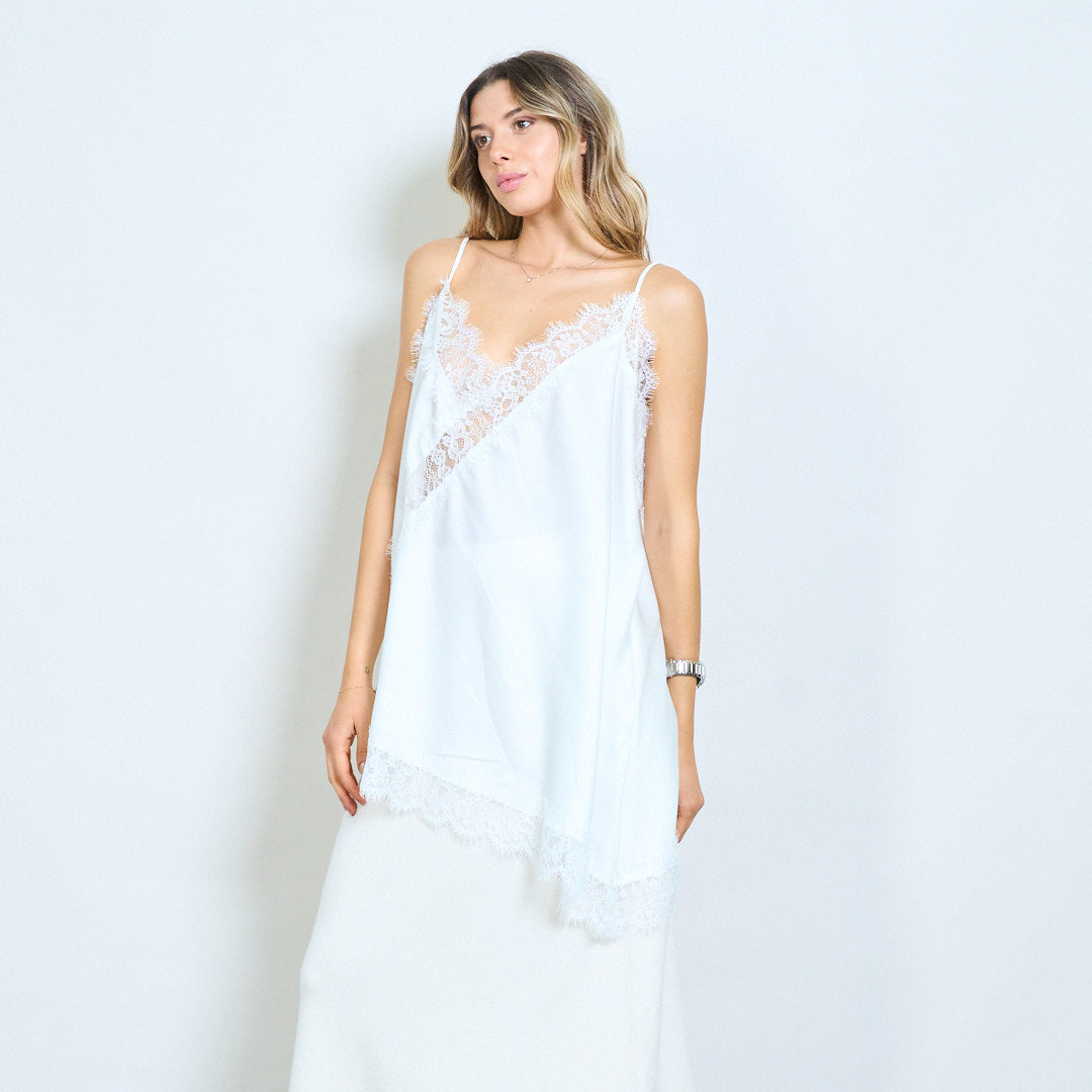 - Subtilus „Camisole“ dizainas su moteriškomis nėrinių apdaila ant iškirptės ir hem
