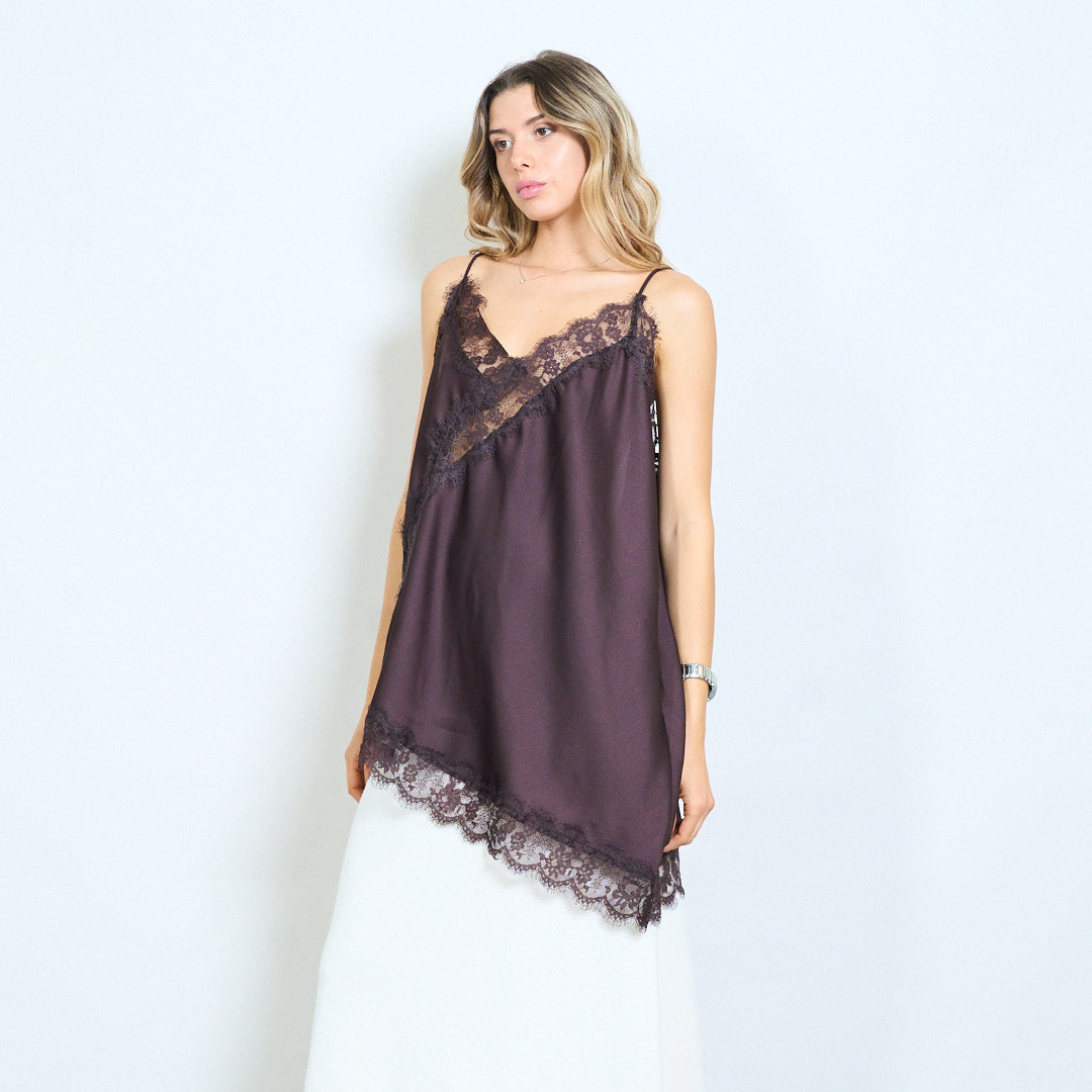 Šilko jutiklinis nėrinių detalė „Camisole“ viršutinė didmeninė prekyba