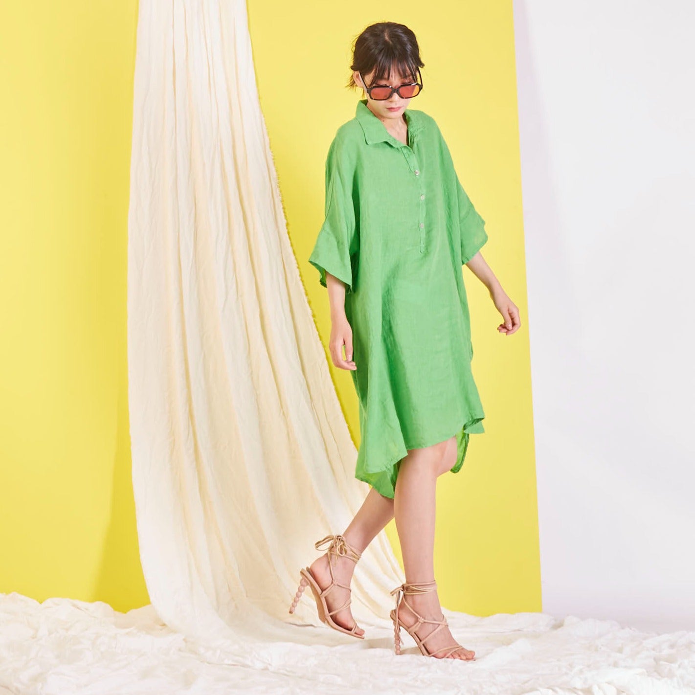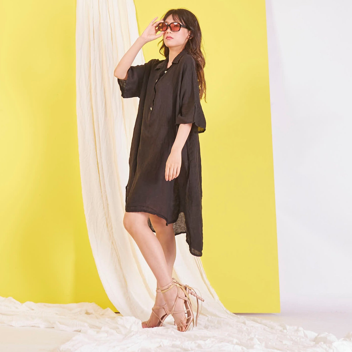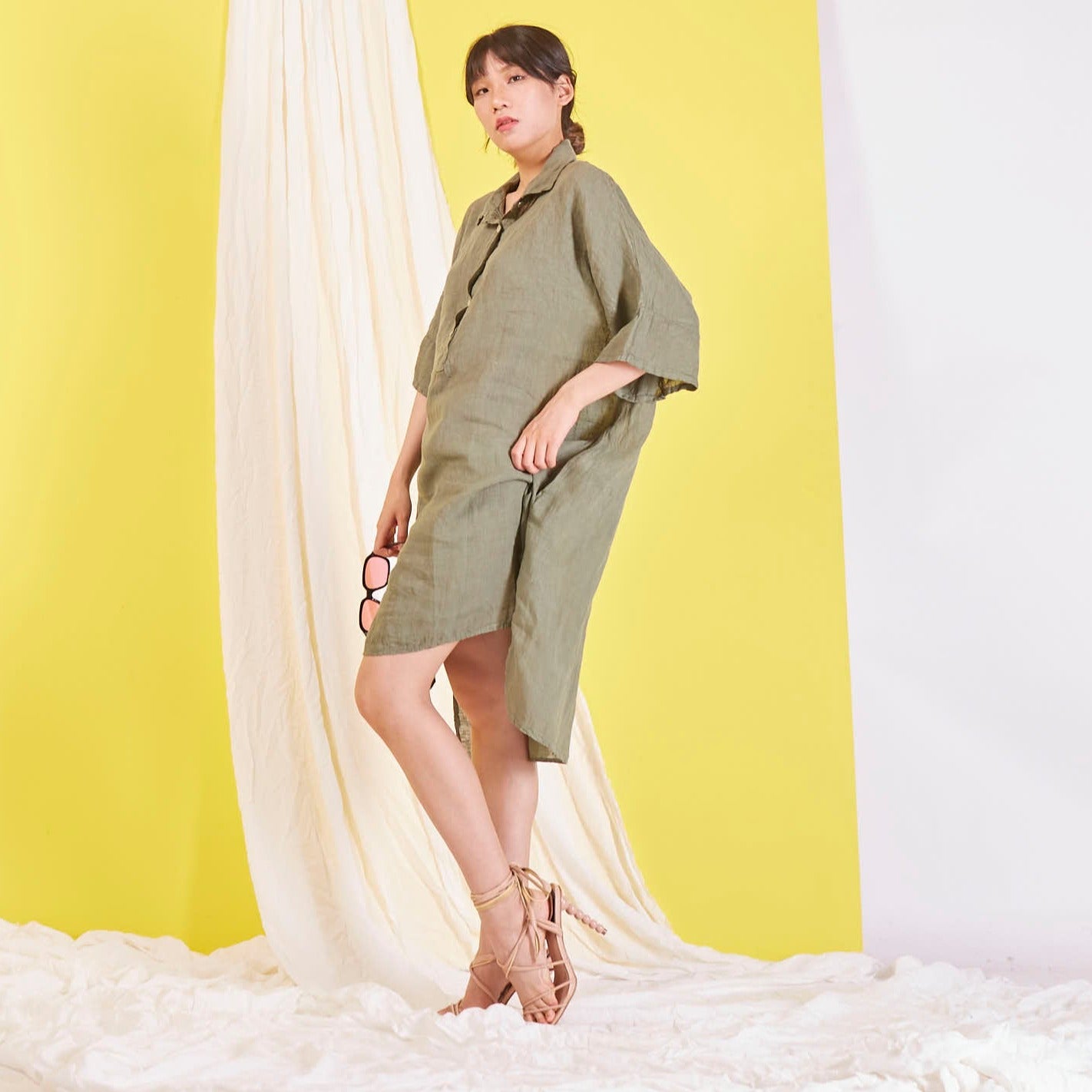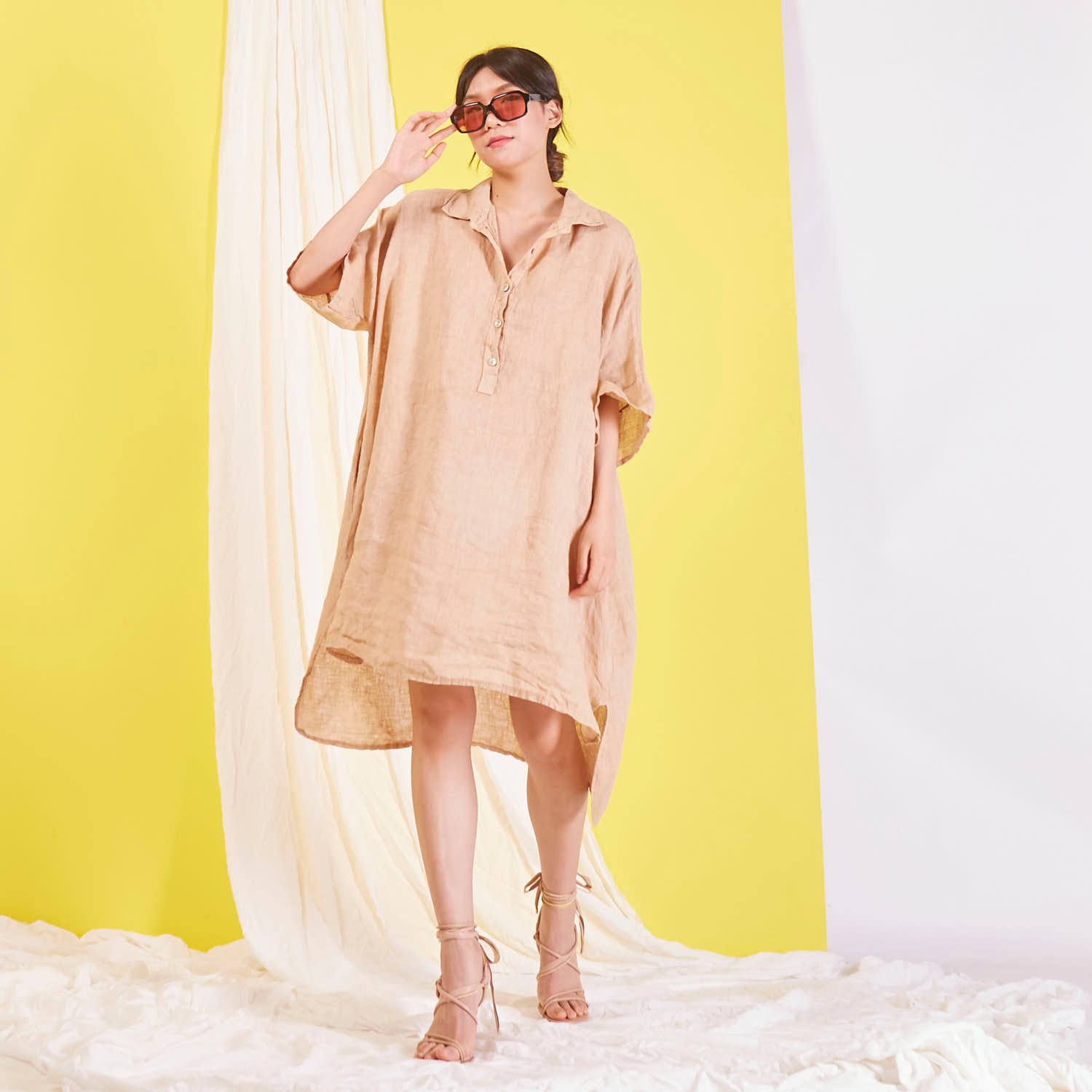 Didmeninė „Maxi“ lininė suknelė su marškinių apykakle