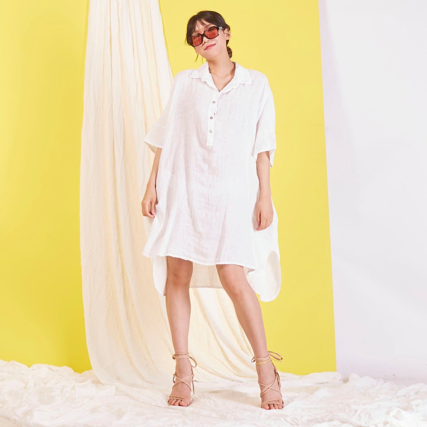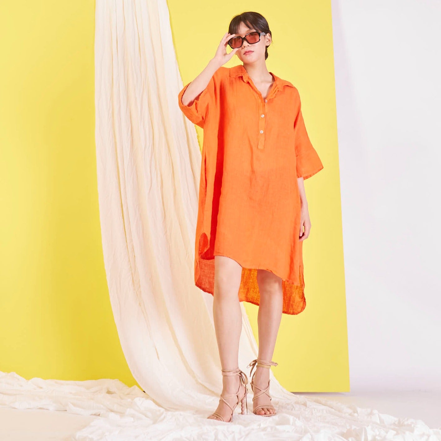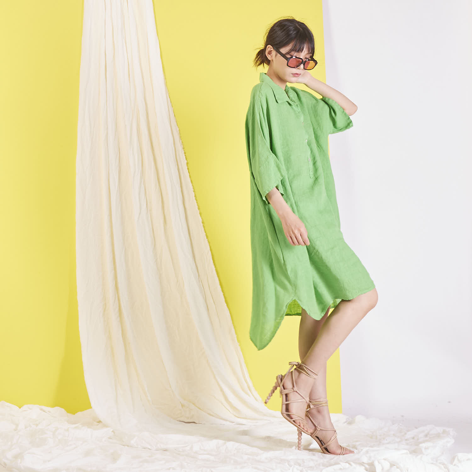 Didmeninė „Maxi“ lininė suknelė su marškinių apykakle