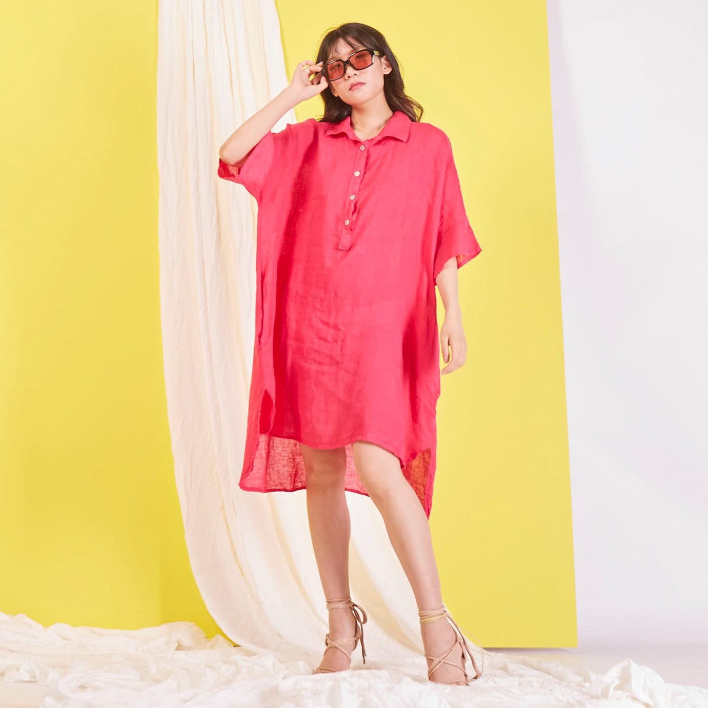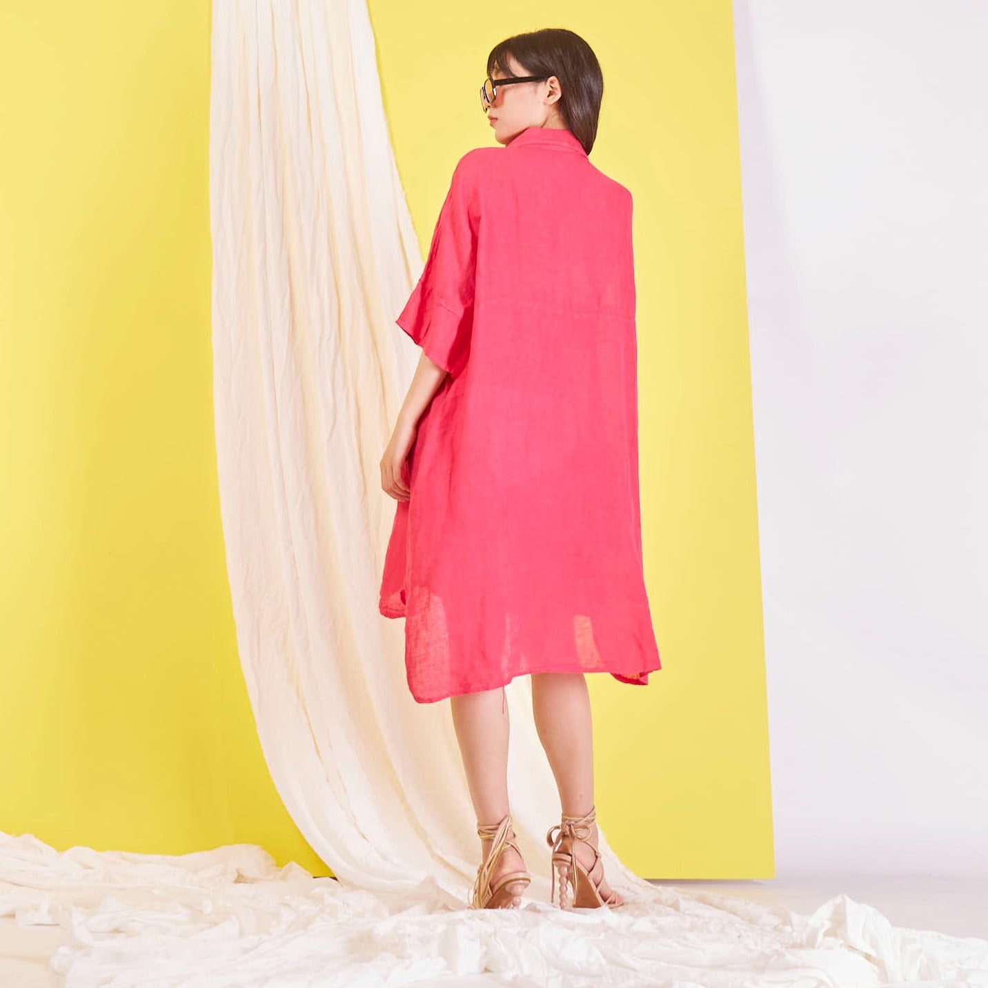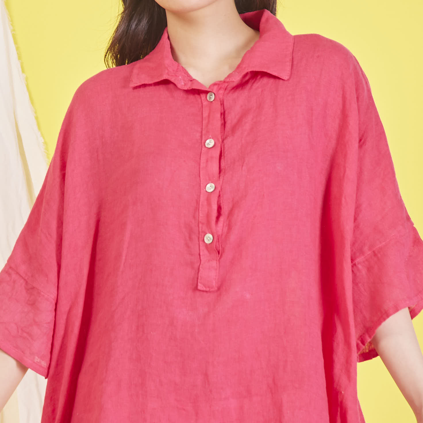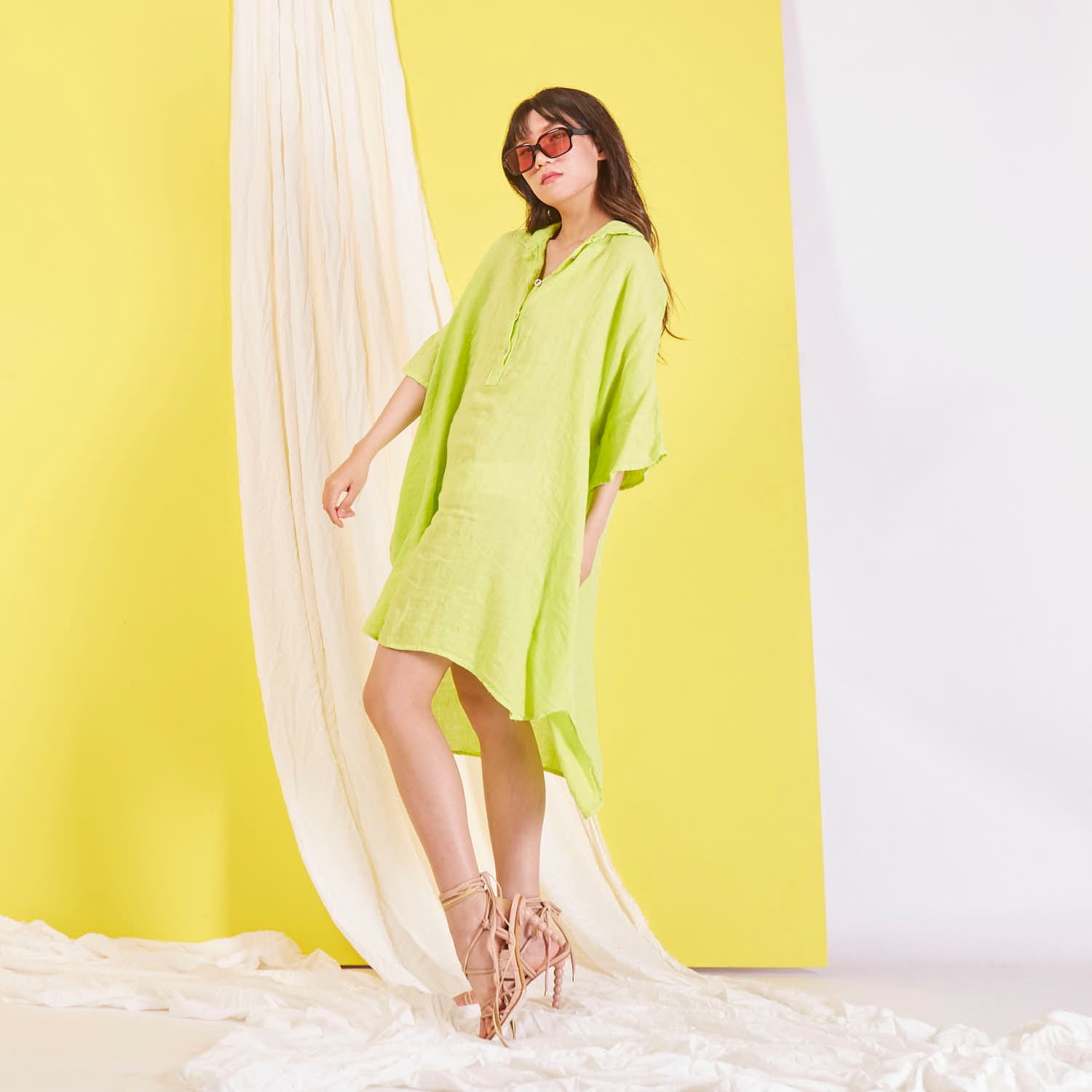 Didmeninė „Maxi“ lininė suknelė su marškinių apykakle