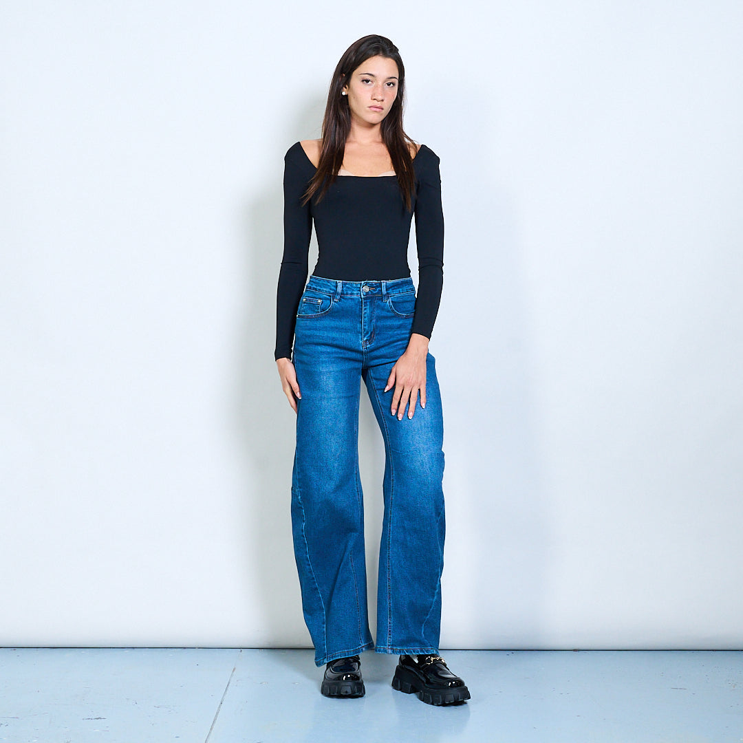 Klasikinės plačiosios kojos džinsinės kelnės didmeninės prekybos