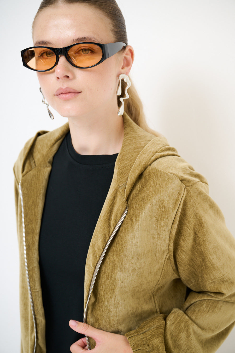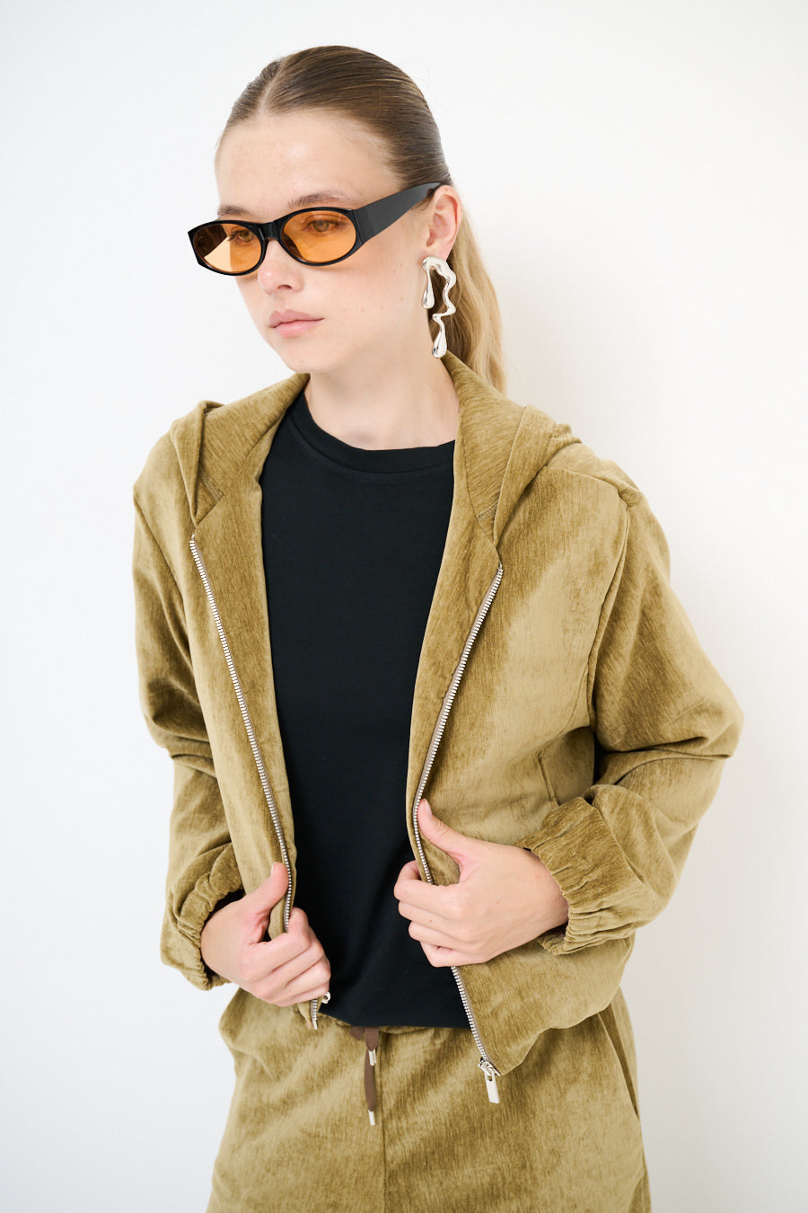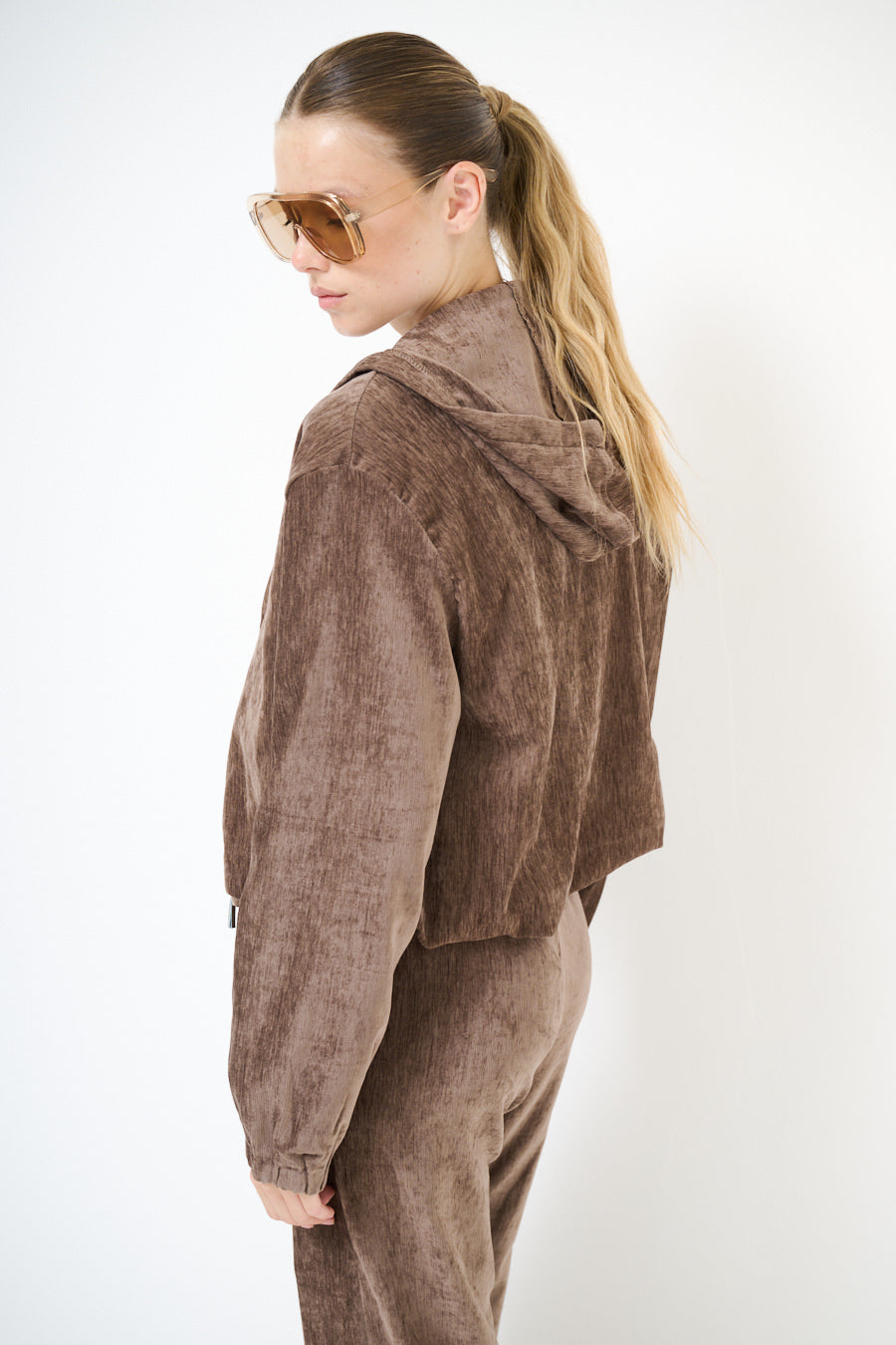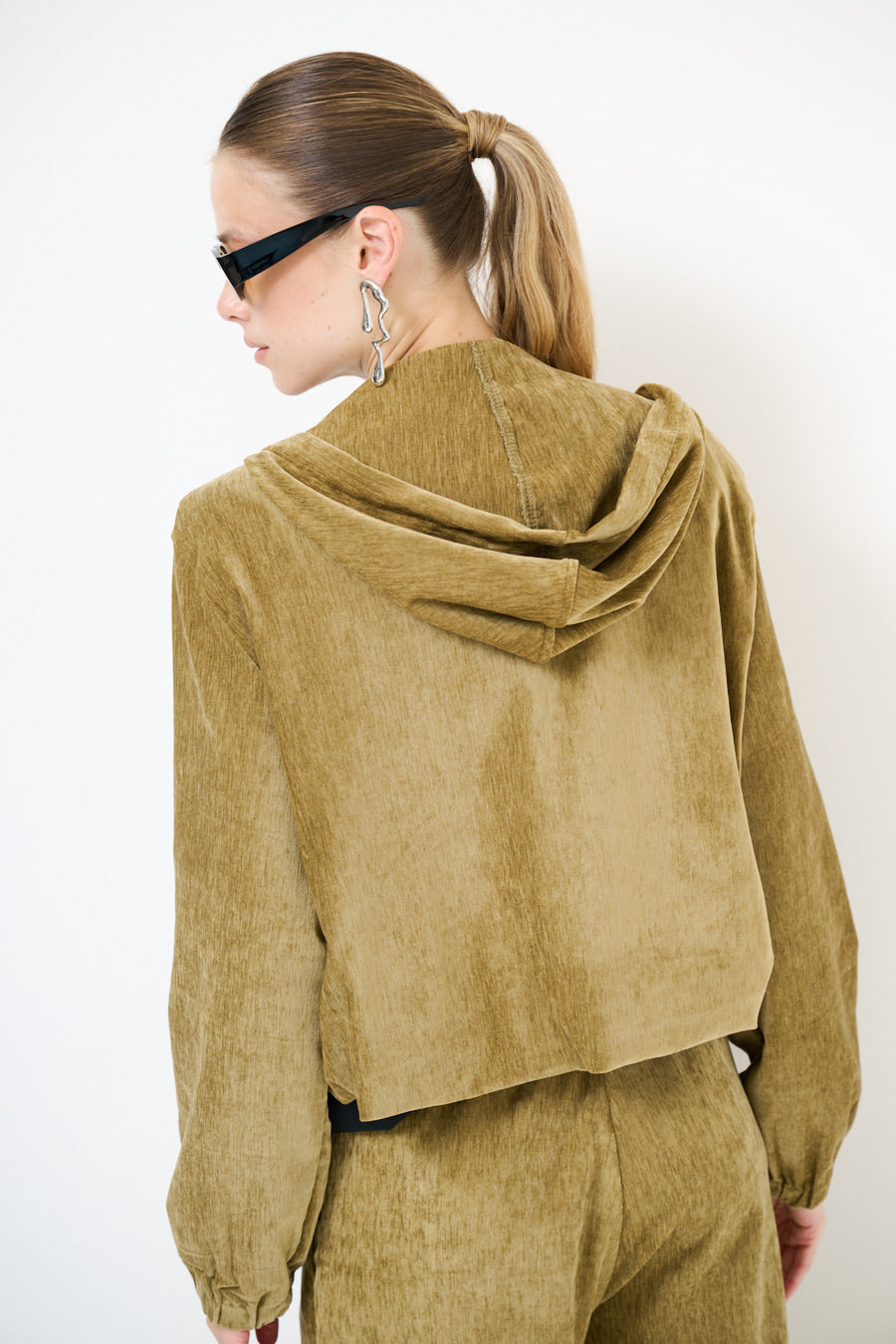 Susmulkintas aksominis užtrauktukas aukštyn hoopie striukė didmeninė prekyba