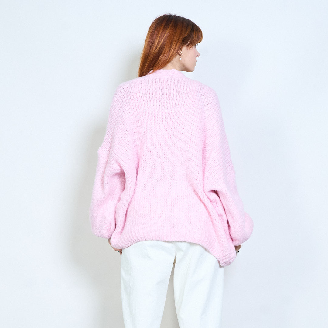 - Atviro priekinio megztinio dizainas leidžia lengvai sluoksniuoti ir formuoti