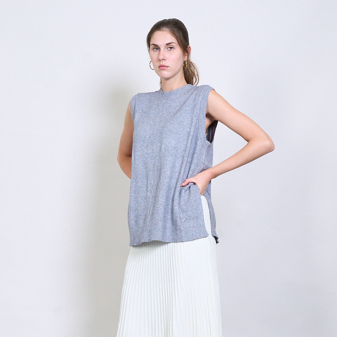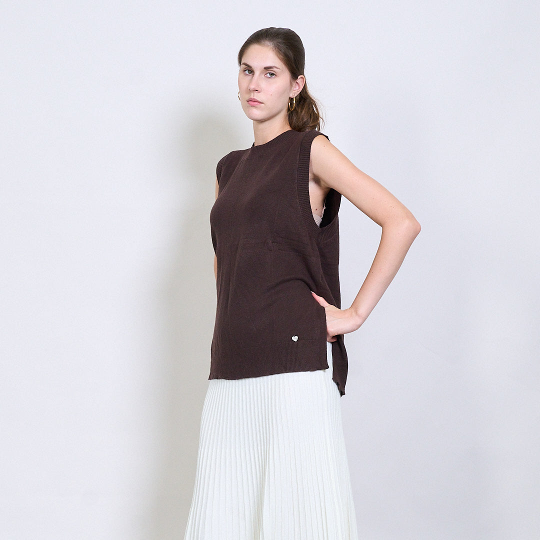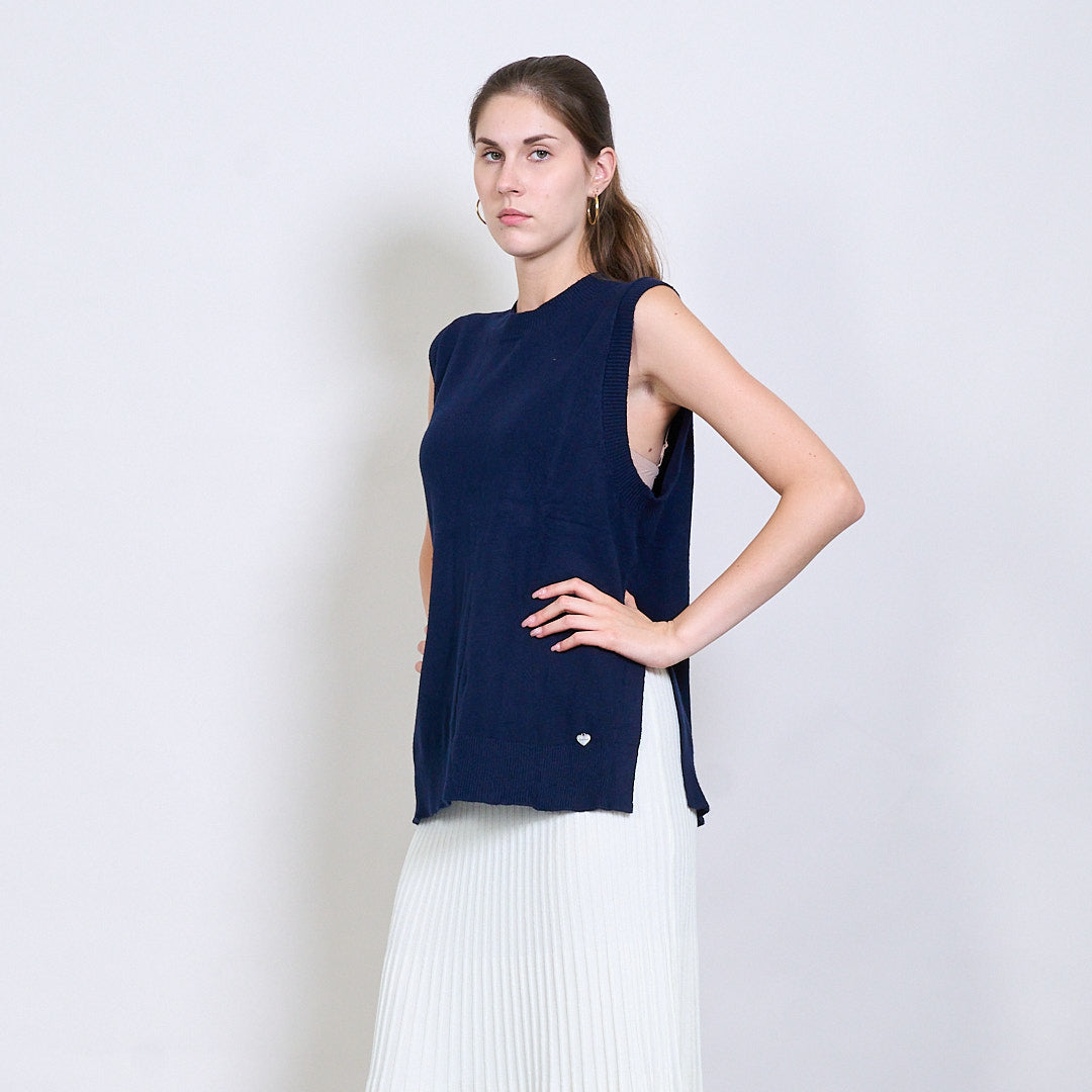Minimalistinis įgulos mezgimo megztinės liemenė su metaline širdies žyma didmenine prekyba