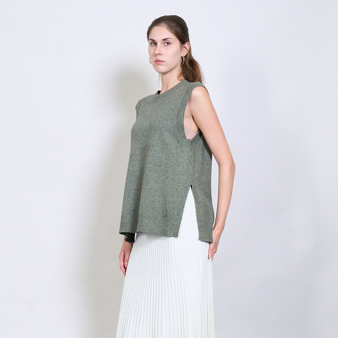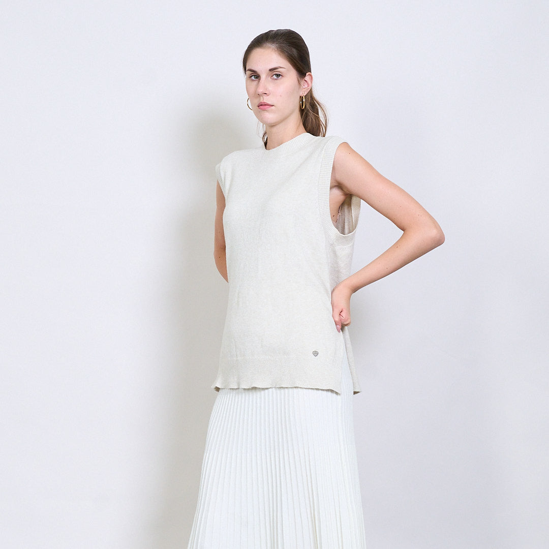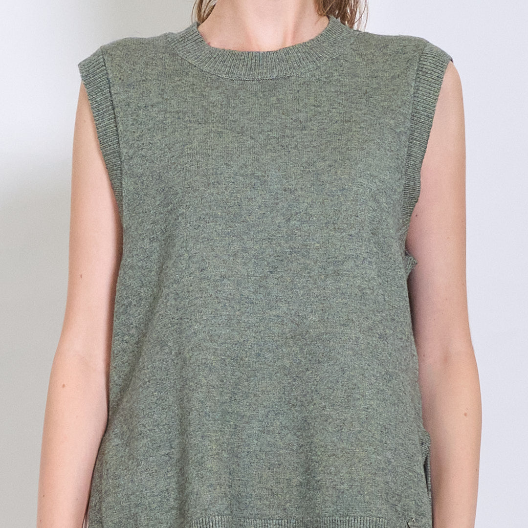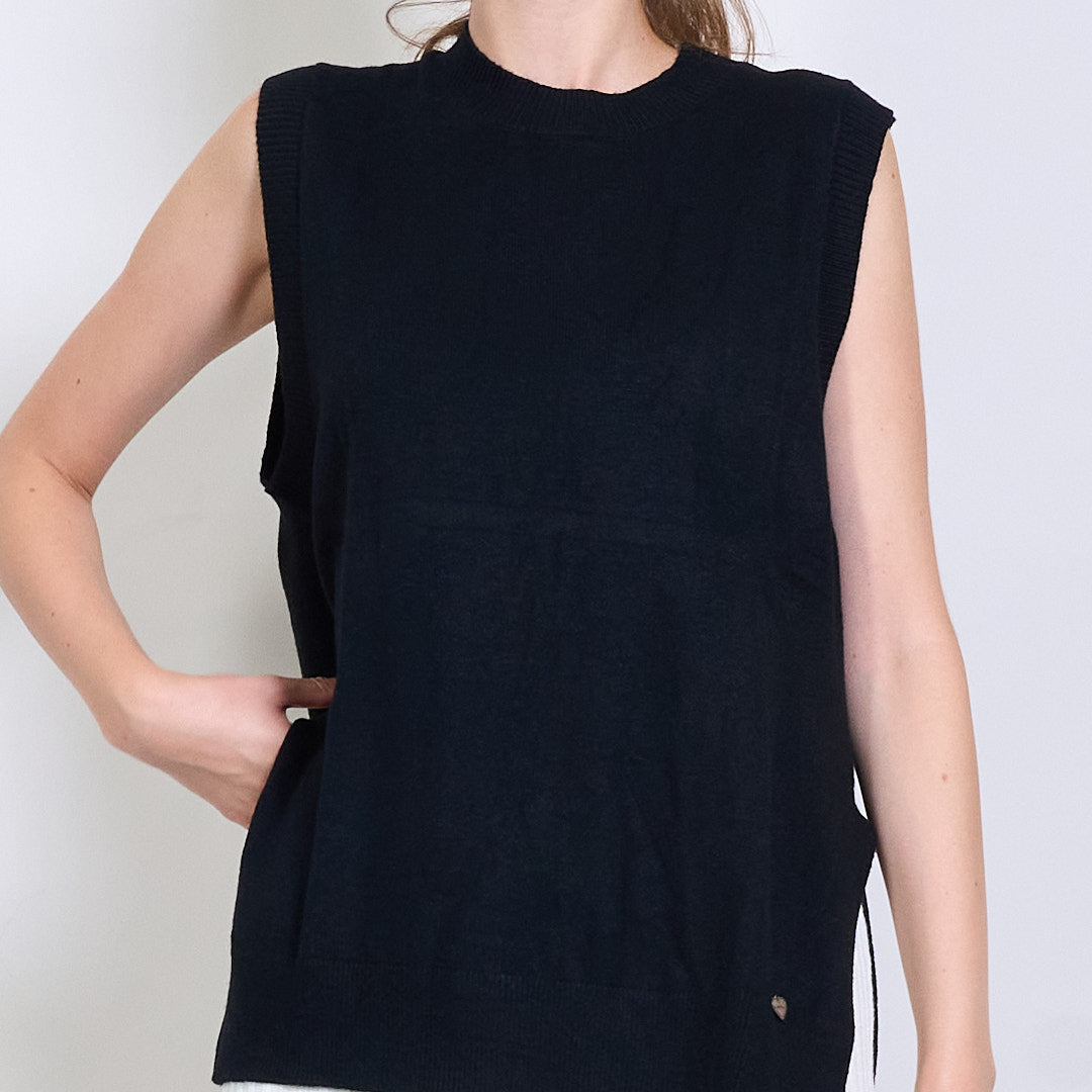 Minimalistinis įgulos mezgimo megztinės liemenė su metaline širdies žyma didmenine prekyba