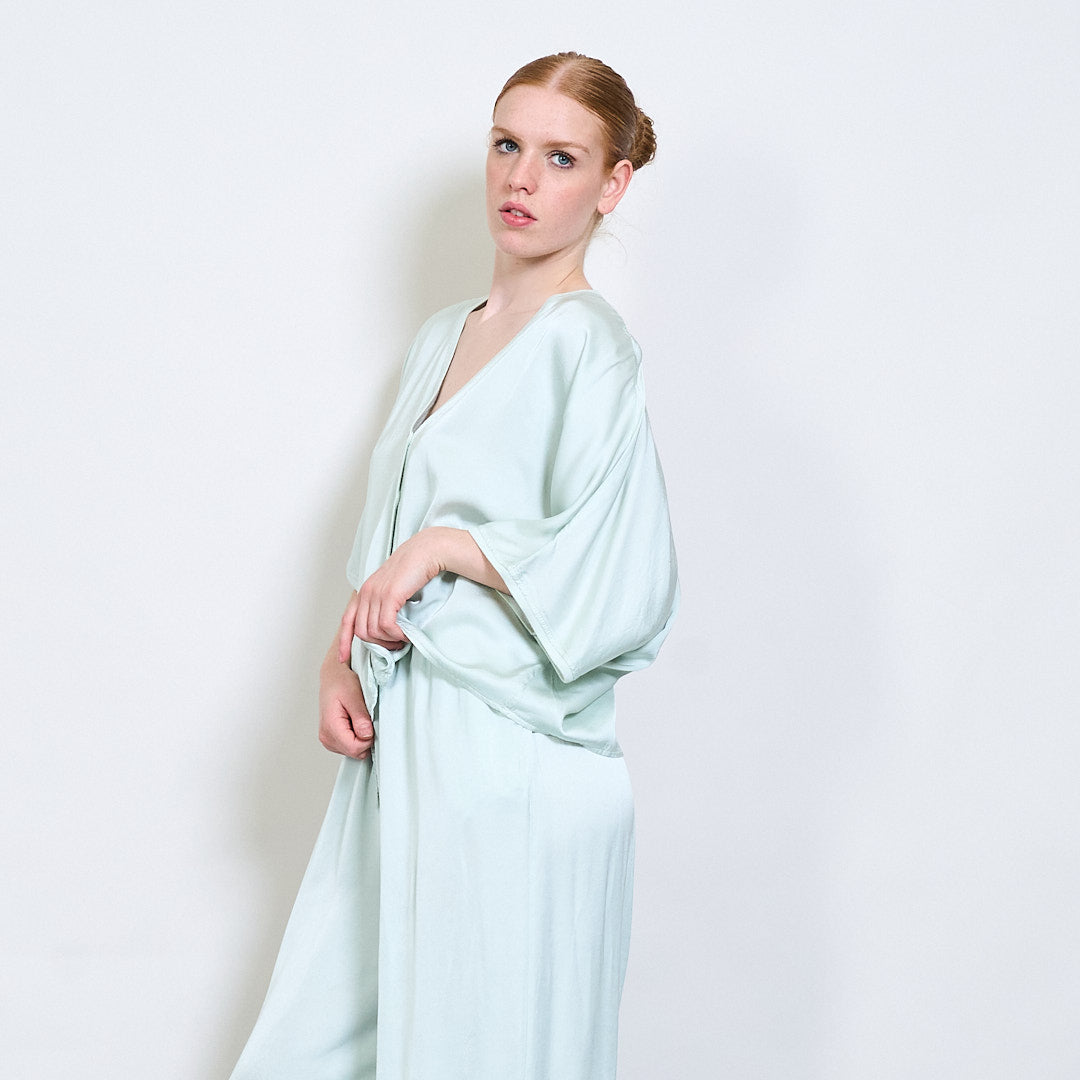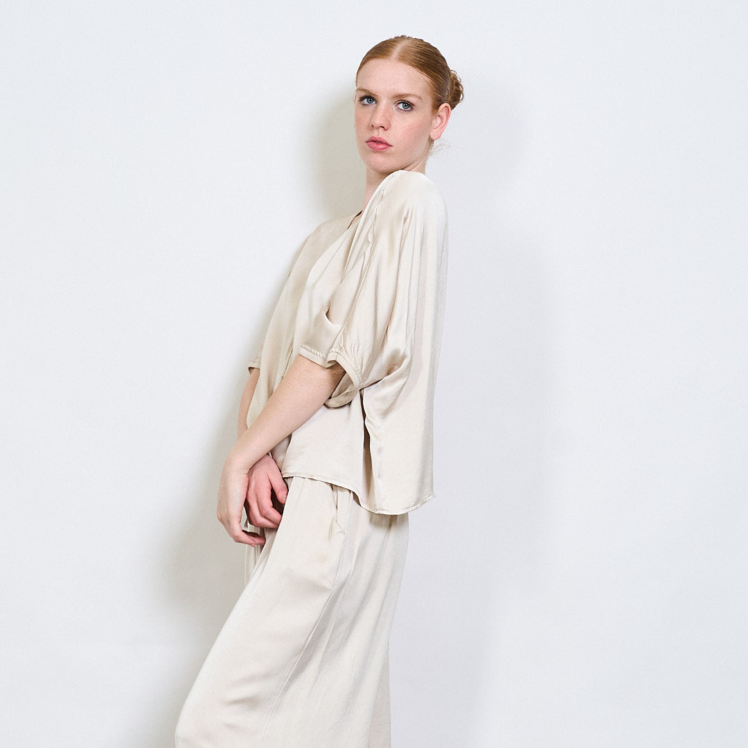 - Pasižymi šikšnosparnių rankovėmis su atsipalaidavusiu, per dideliu siluetu