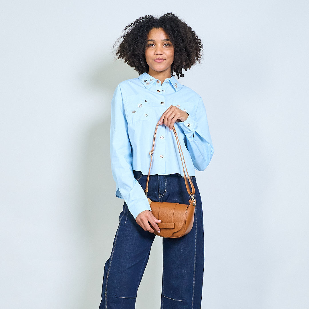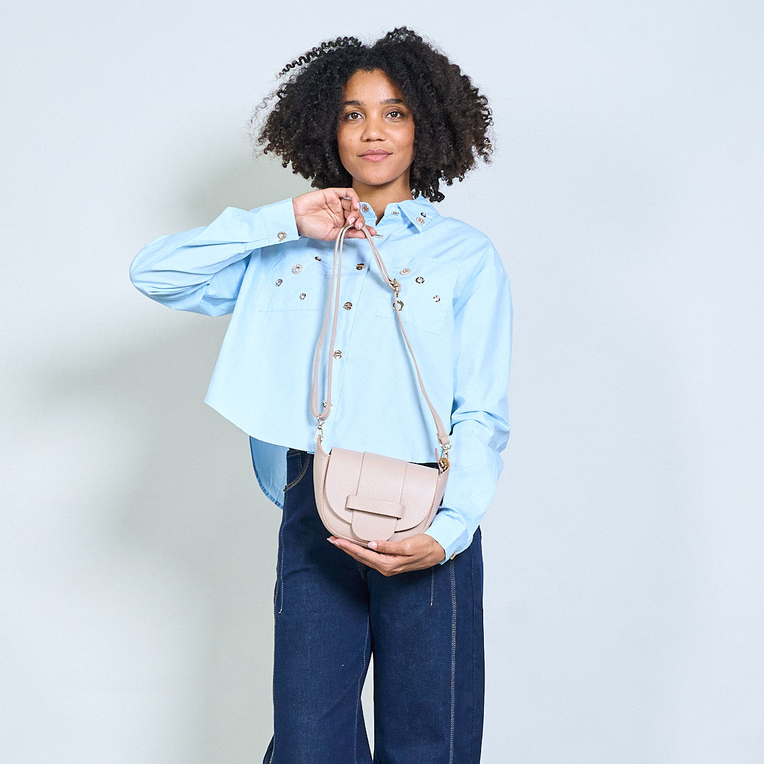 Suapvalintas atvarto kryžminis balno krepšys su viršutine dalimi didmenine detale