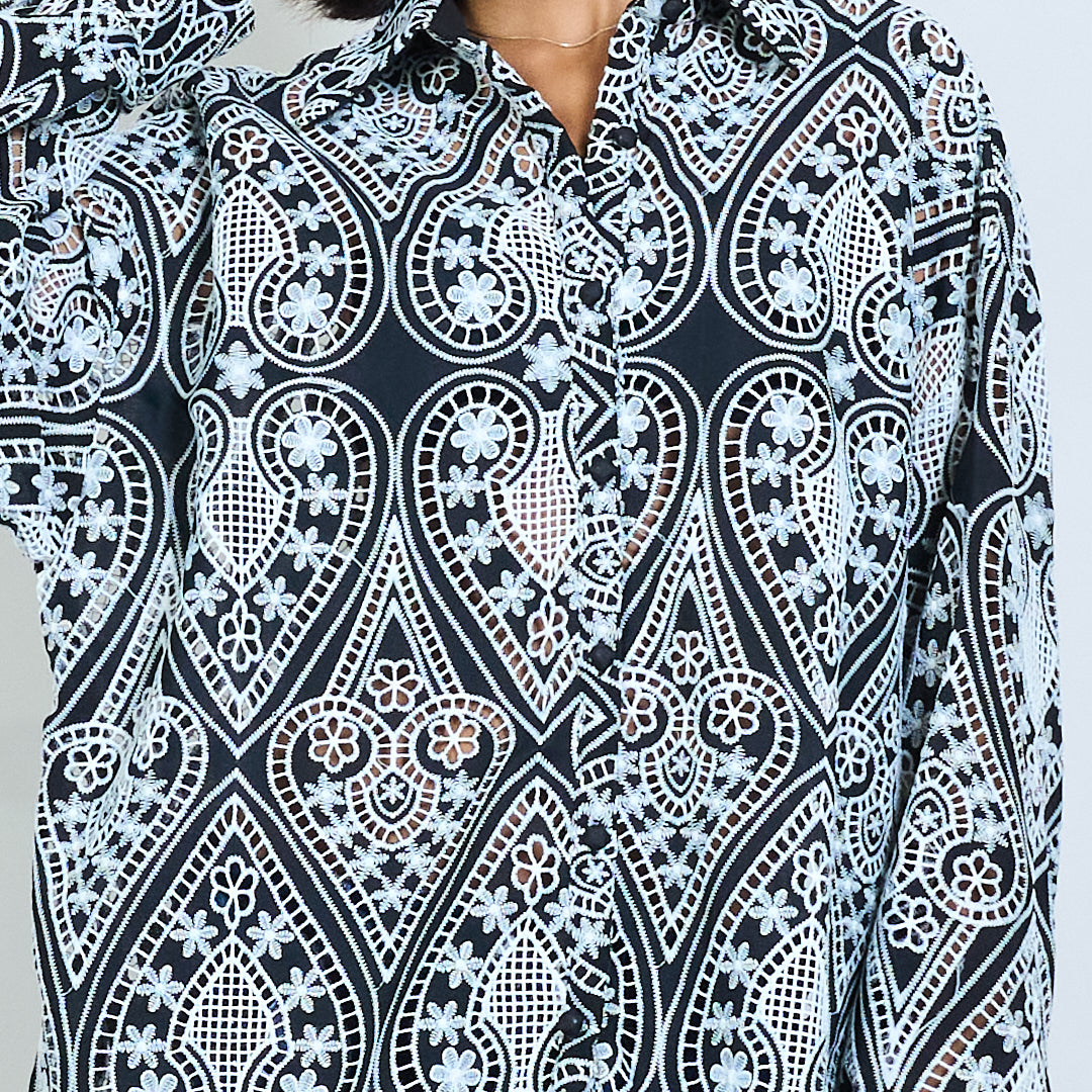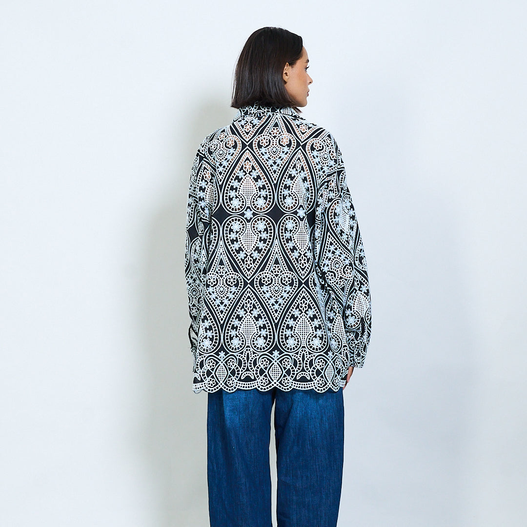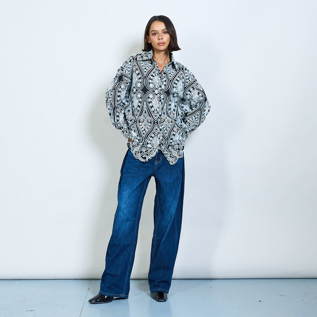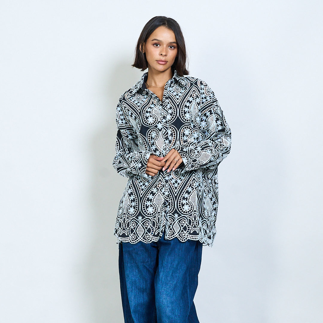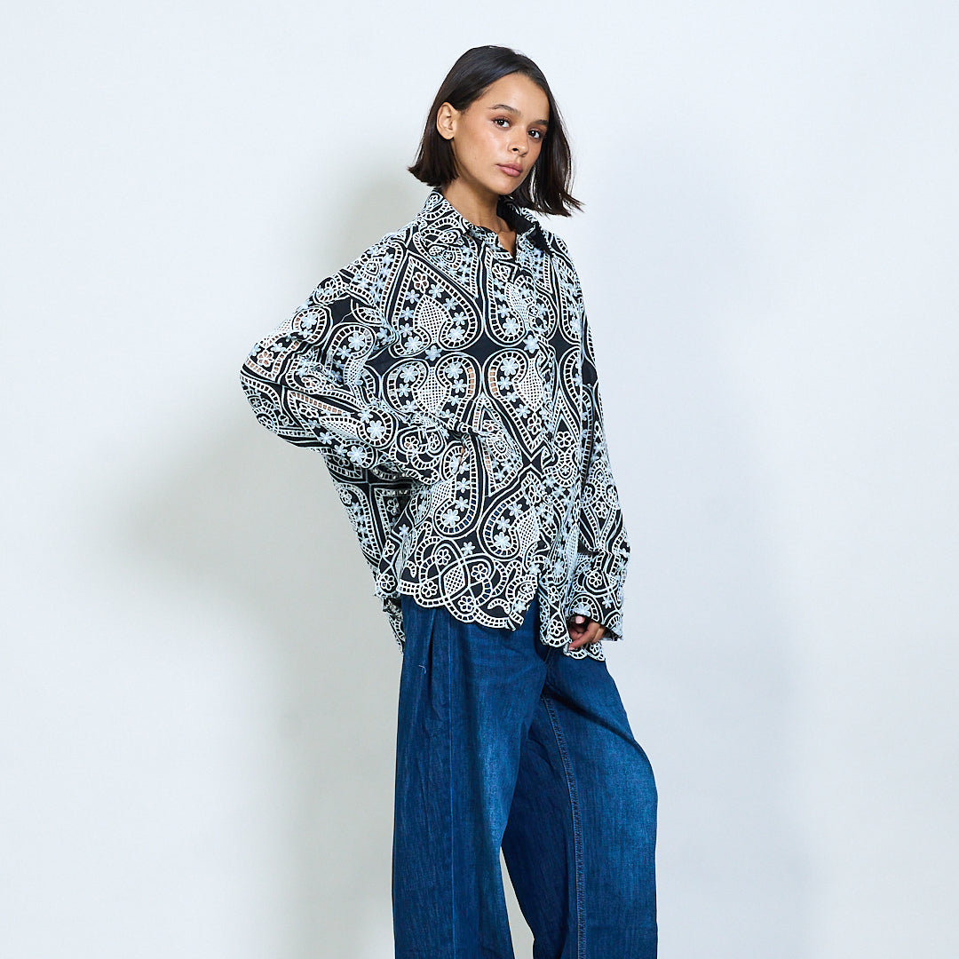 Baroko paisley gėlių spausdinimo ilgomis rankovėmis marškinėliai didmeninė prekyba