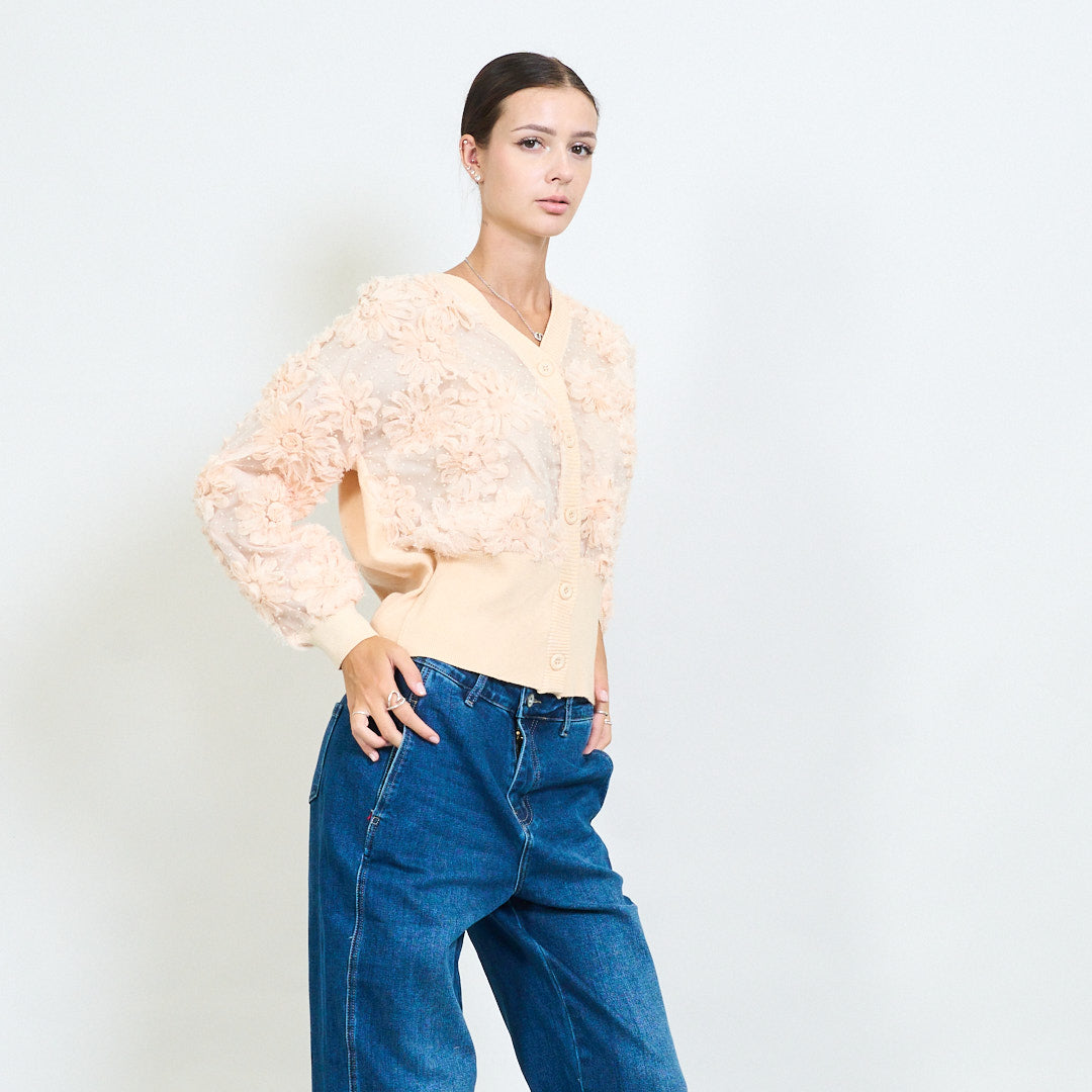 3D gėlių tekstūruotas mygtukas priekinis megztas megztas megztinis didmeninė prekyba