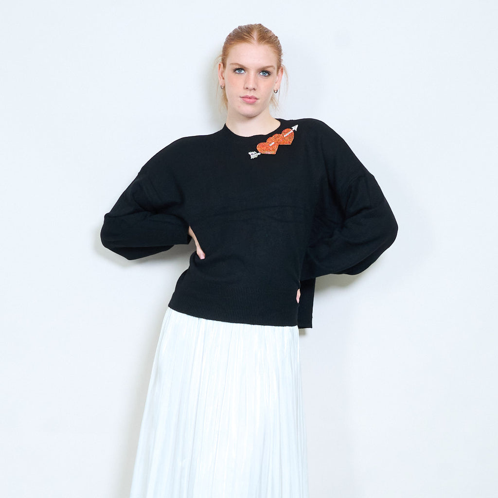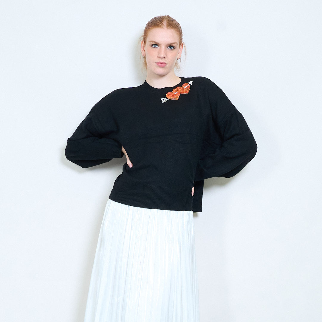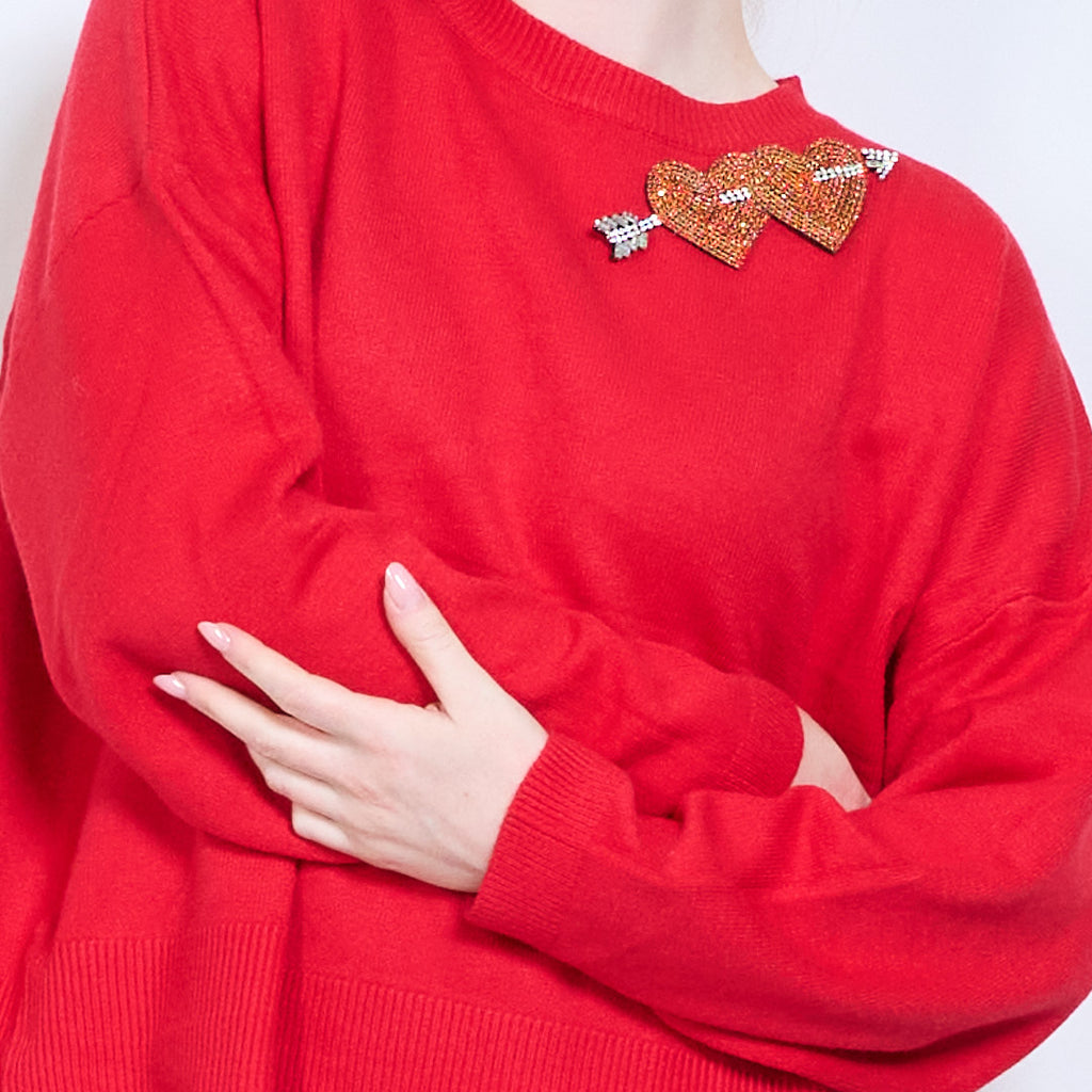 Kalnų krištolinio širdelės rodyklės aplikacijos megztinis su apvalia kakle didmeninė prekyba