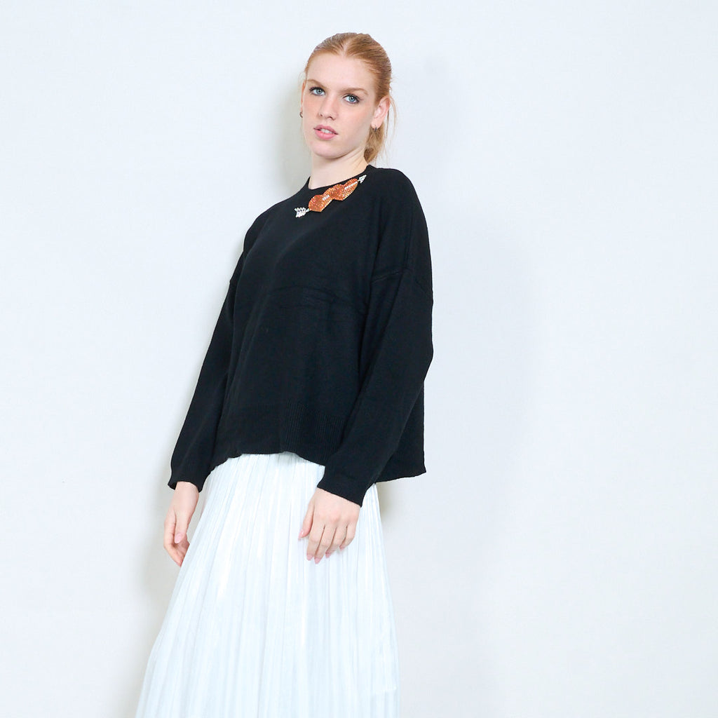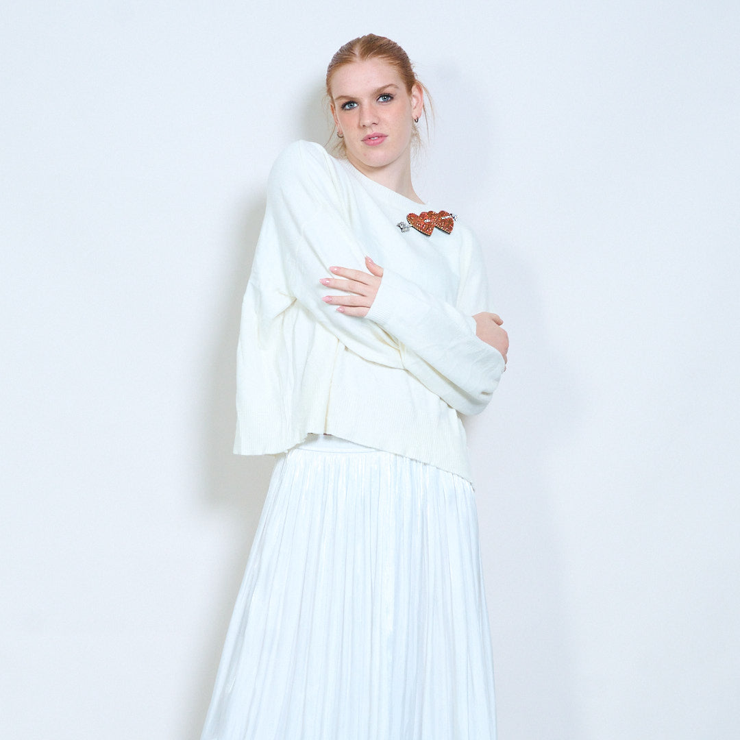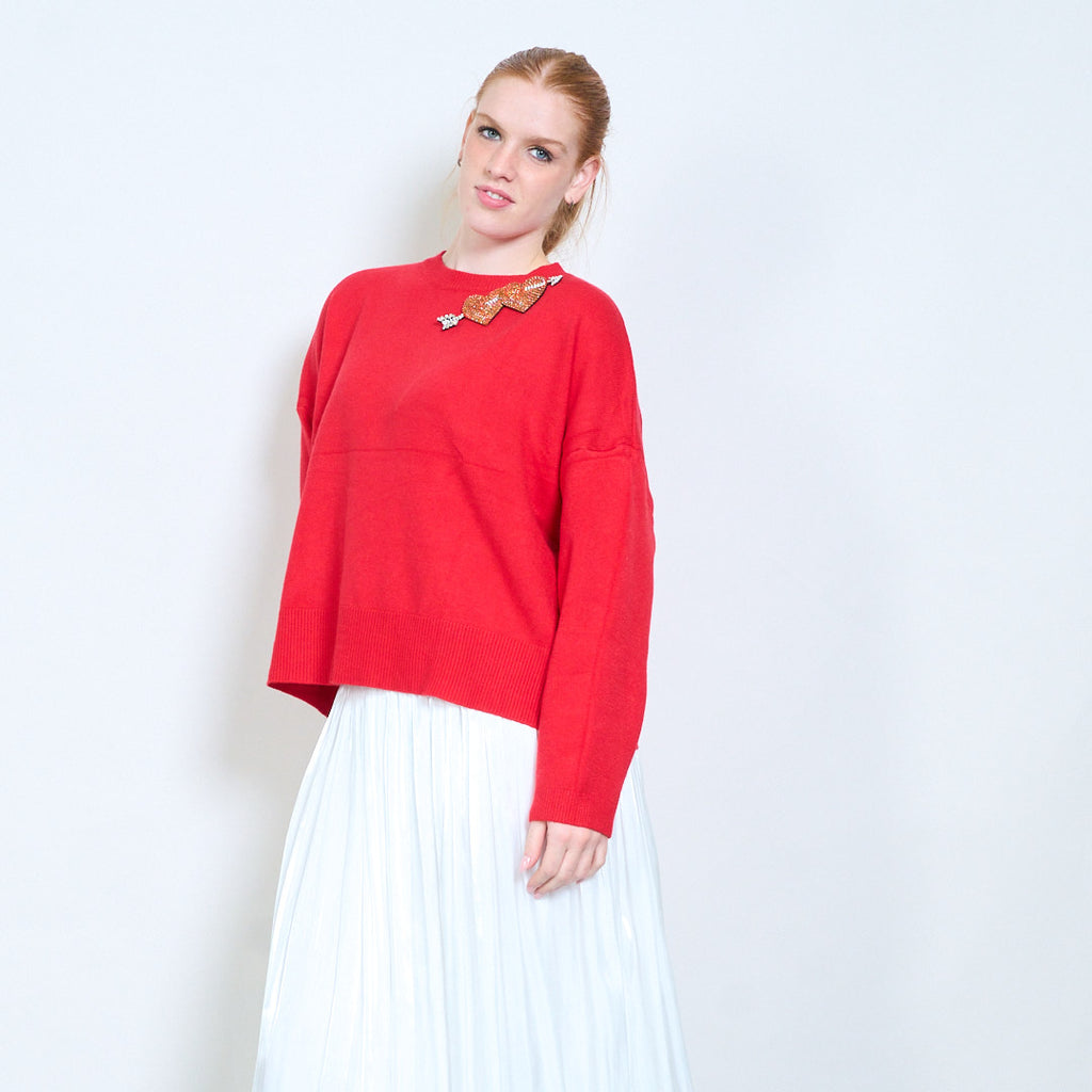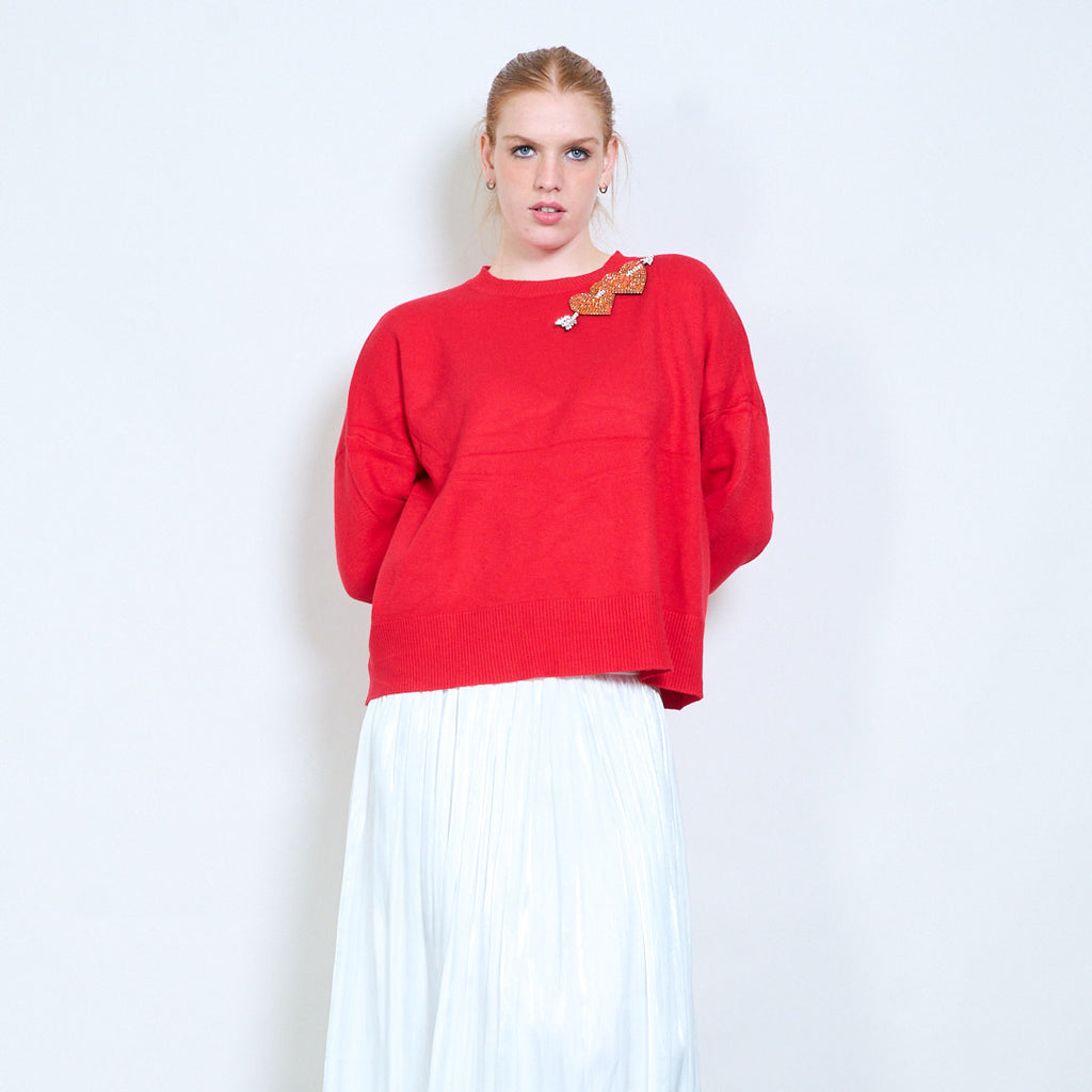Kalnų krištolinio širdelės rodyklės aplikacijos megztinis su apvalia kakle didmeninė prekyba