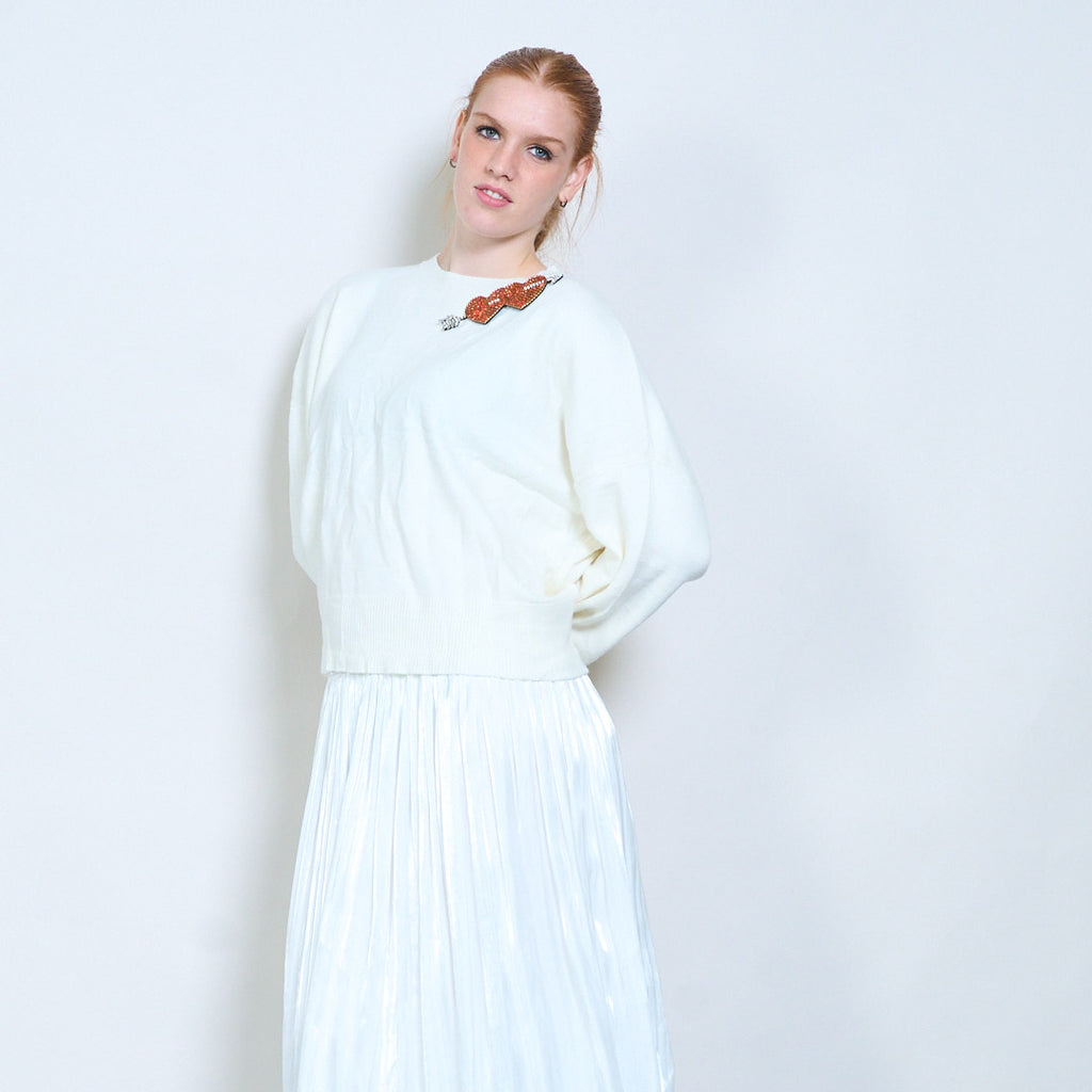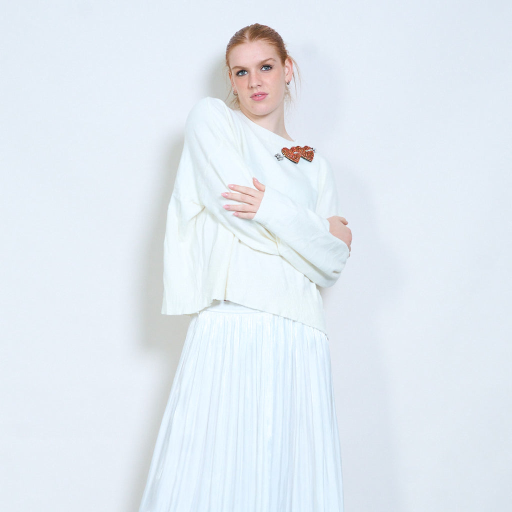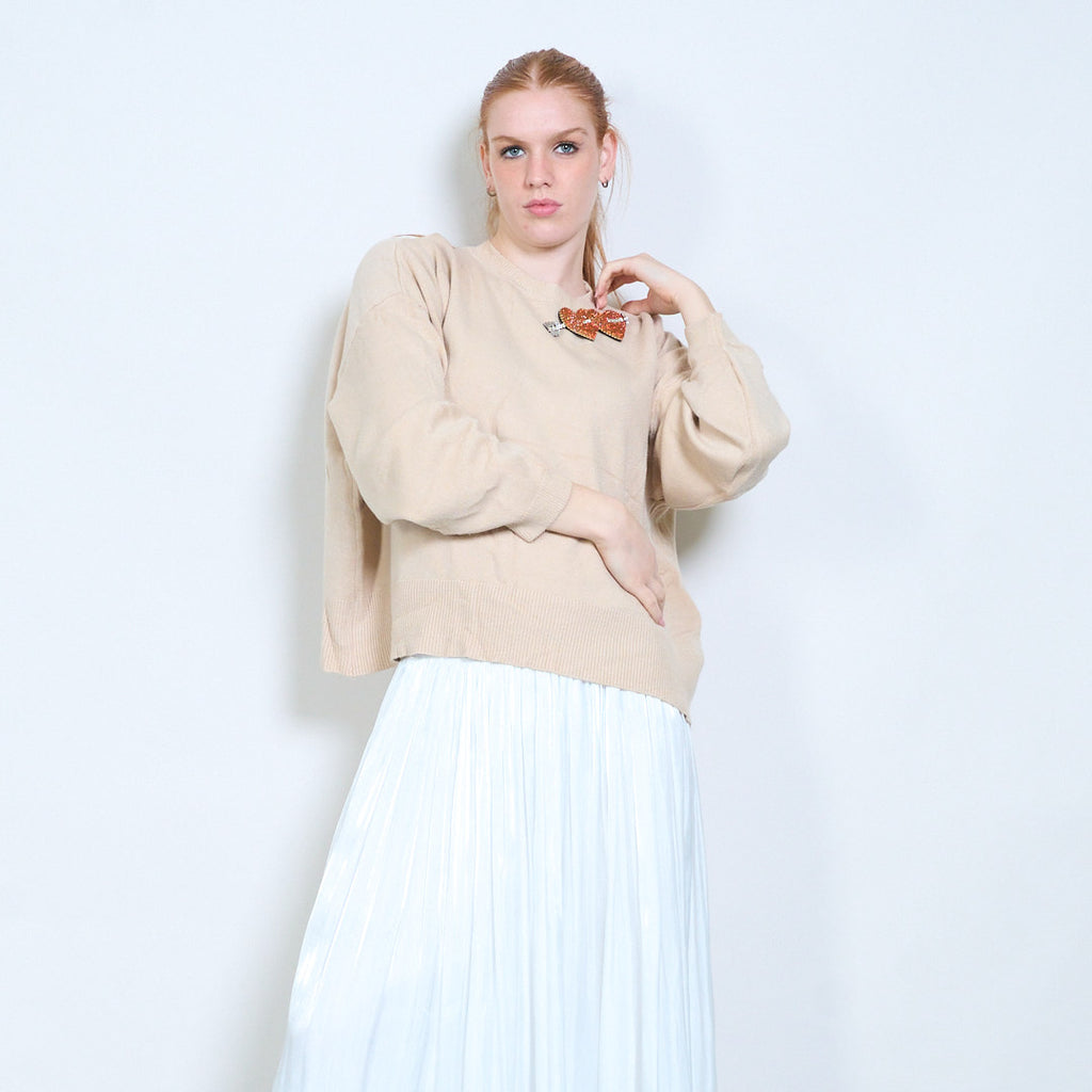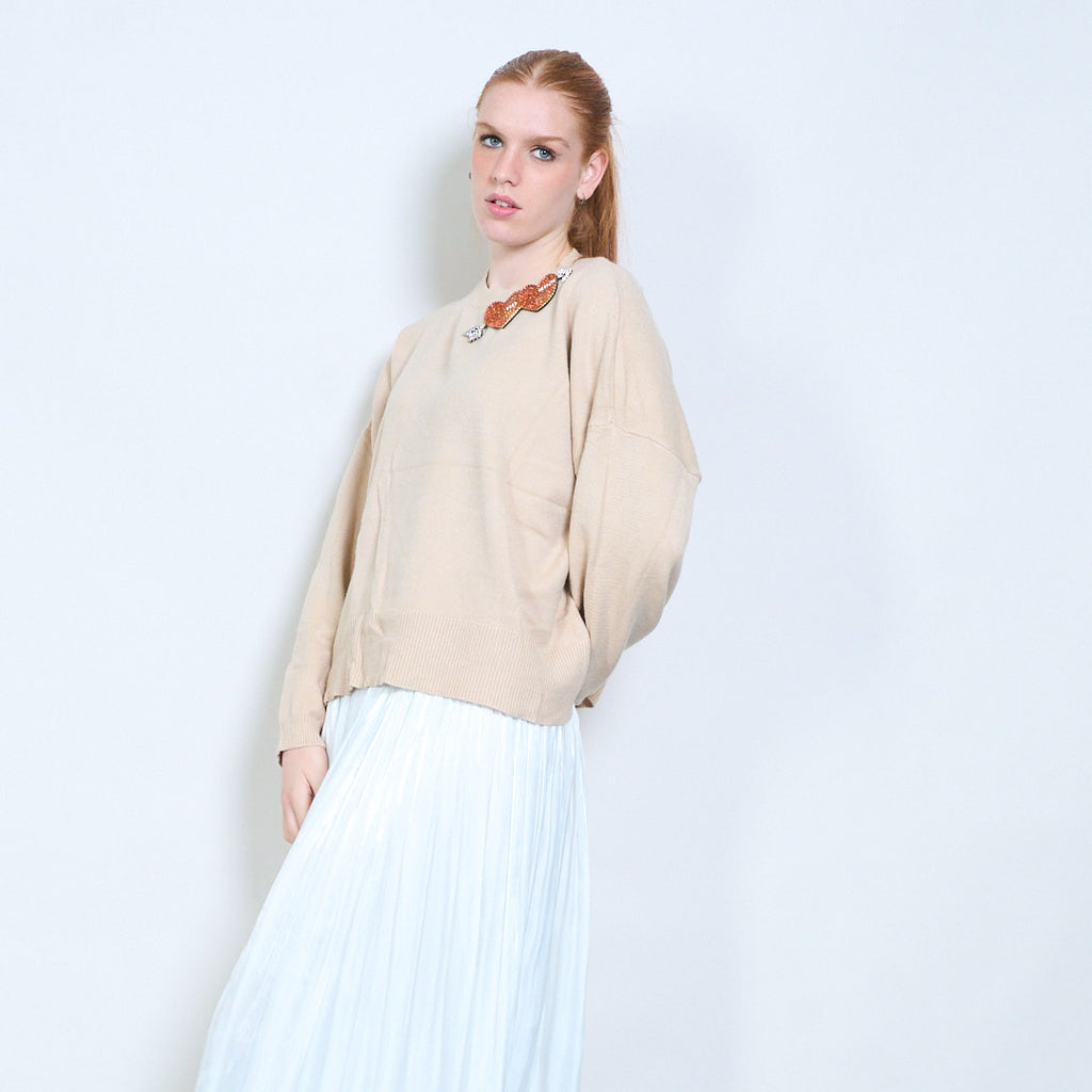 • Klasikinė apvali iškirptė, suteikianti švelnų ir universalų siluetą