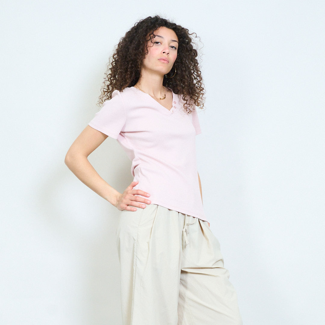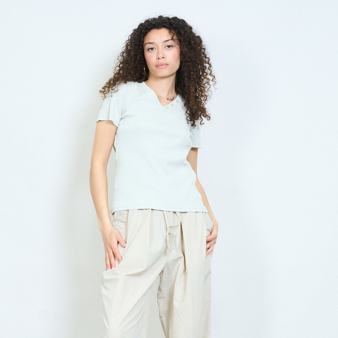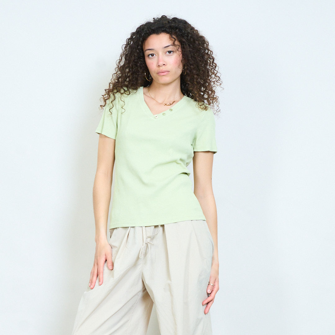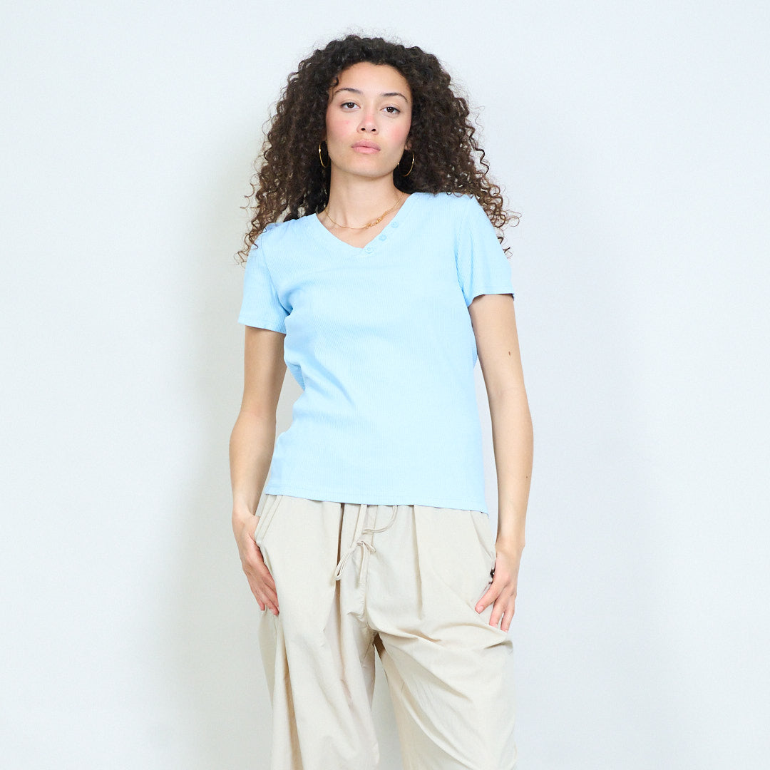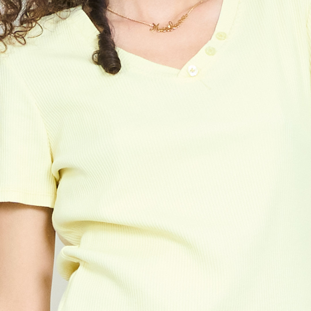 Didmeninė prekyba trumpomis rankovėmis marškinėliai su briaunelėmis su sagomis iškirpte