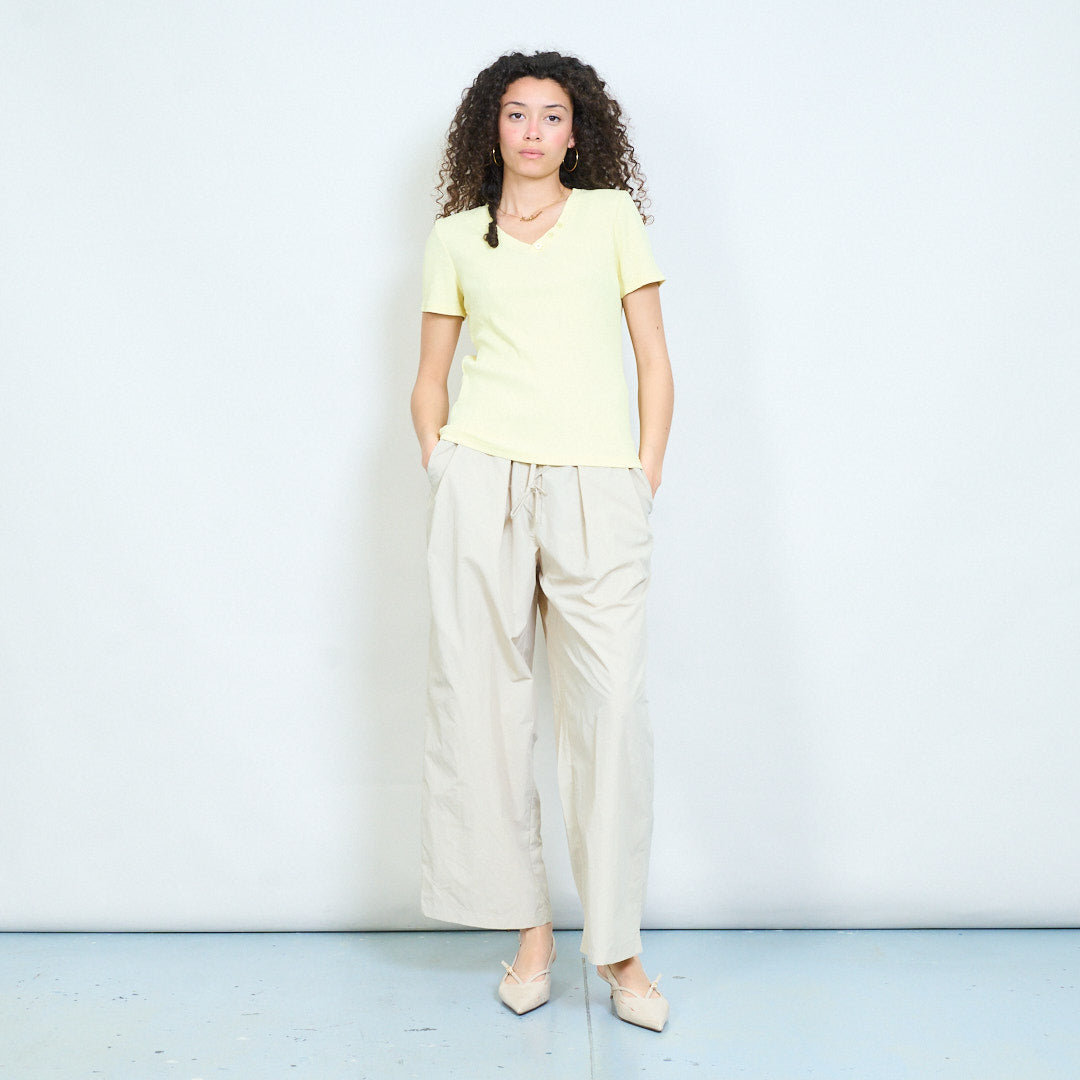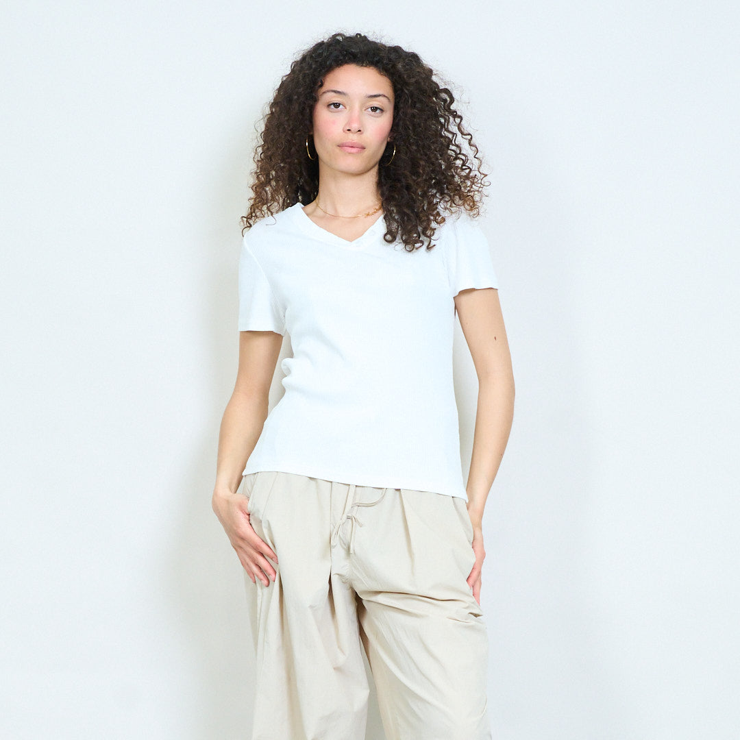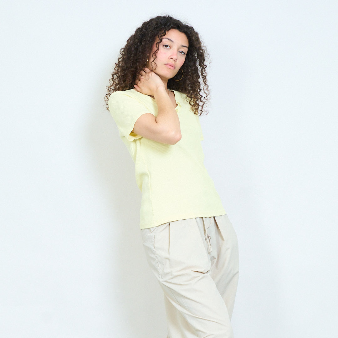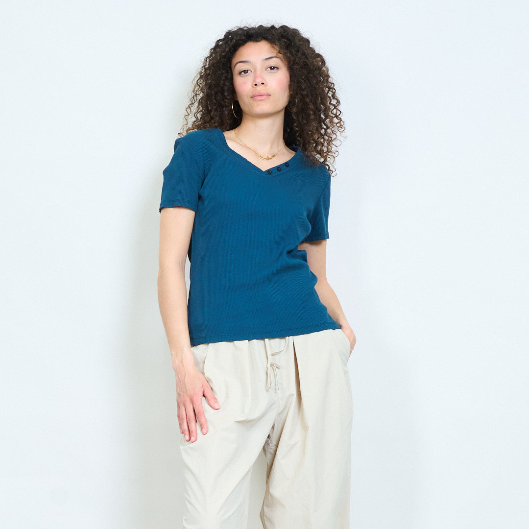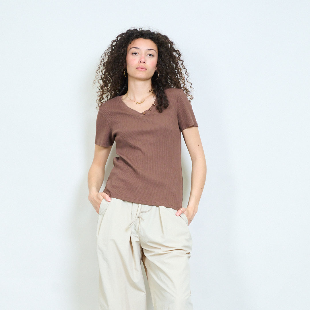 Didmeninė prekyba trumpomis rankovėmis marškinėliai su briaunelėmis su sagomis iškirpte