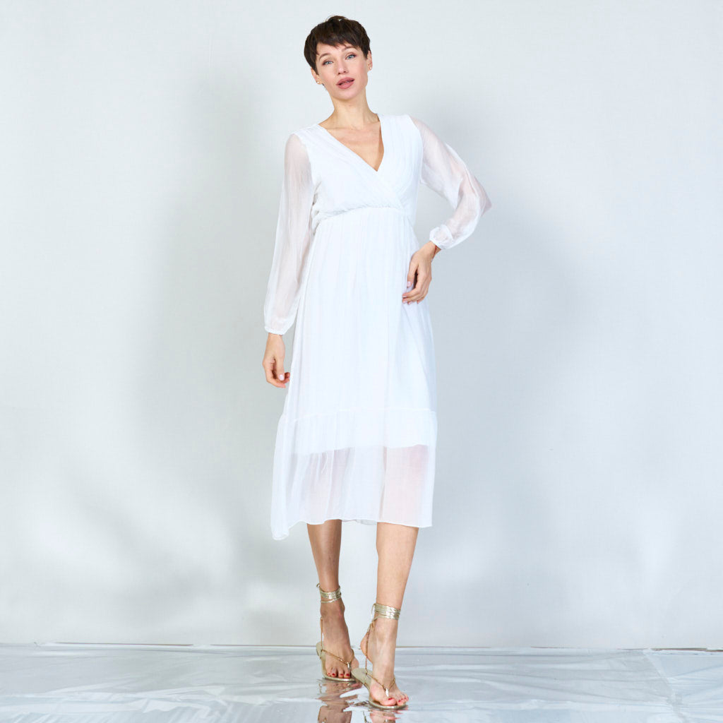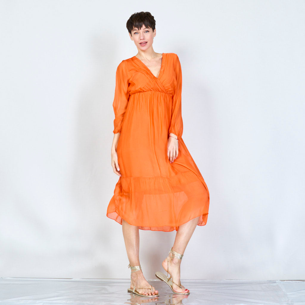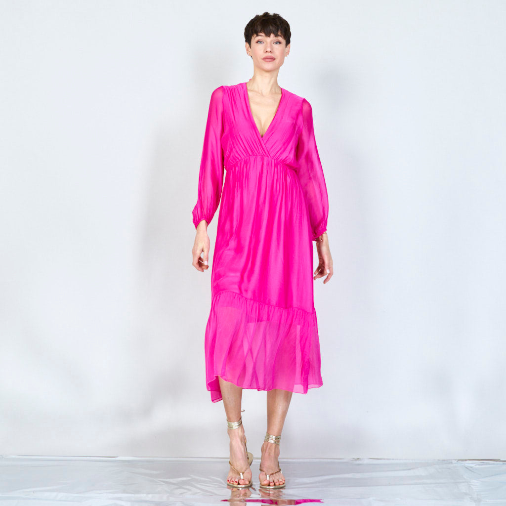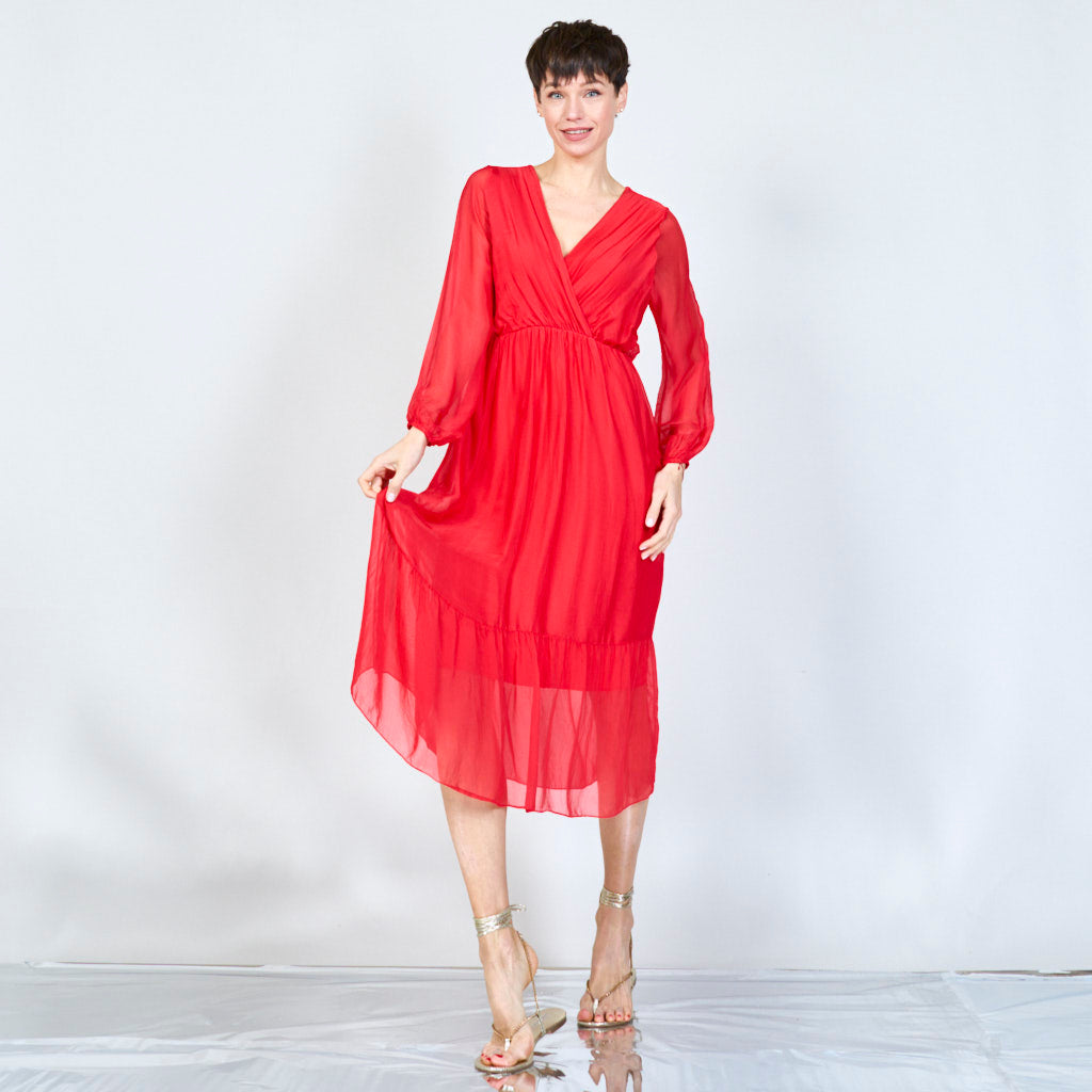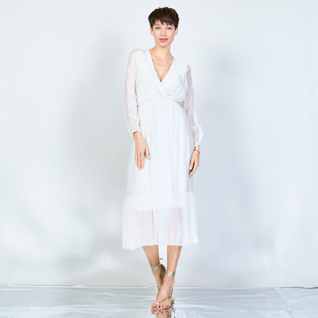 Ilgas kryžminis V formos kaklo šilko šifono suknelė didmeninė prekyba