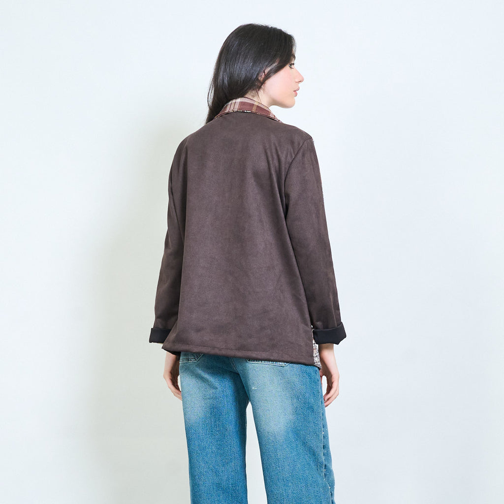- Klasikinis įpjovtas atlapo apykaklė, sustiprinanti struktūrizuotą siluetą