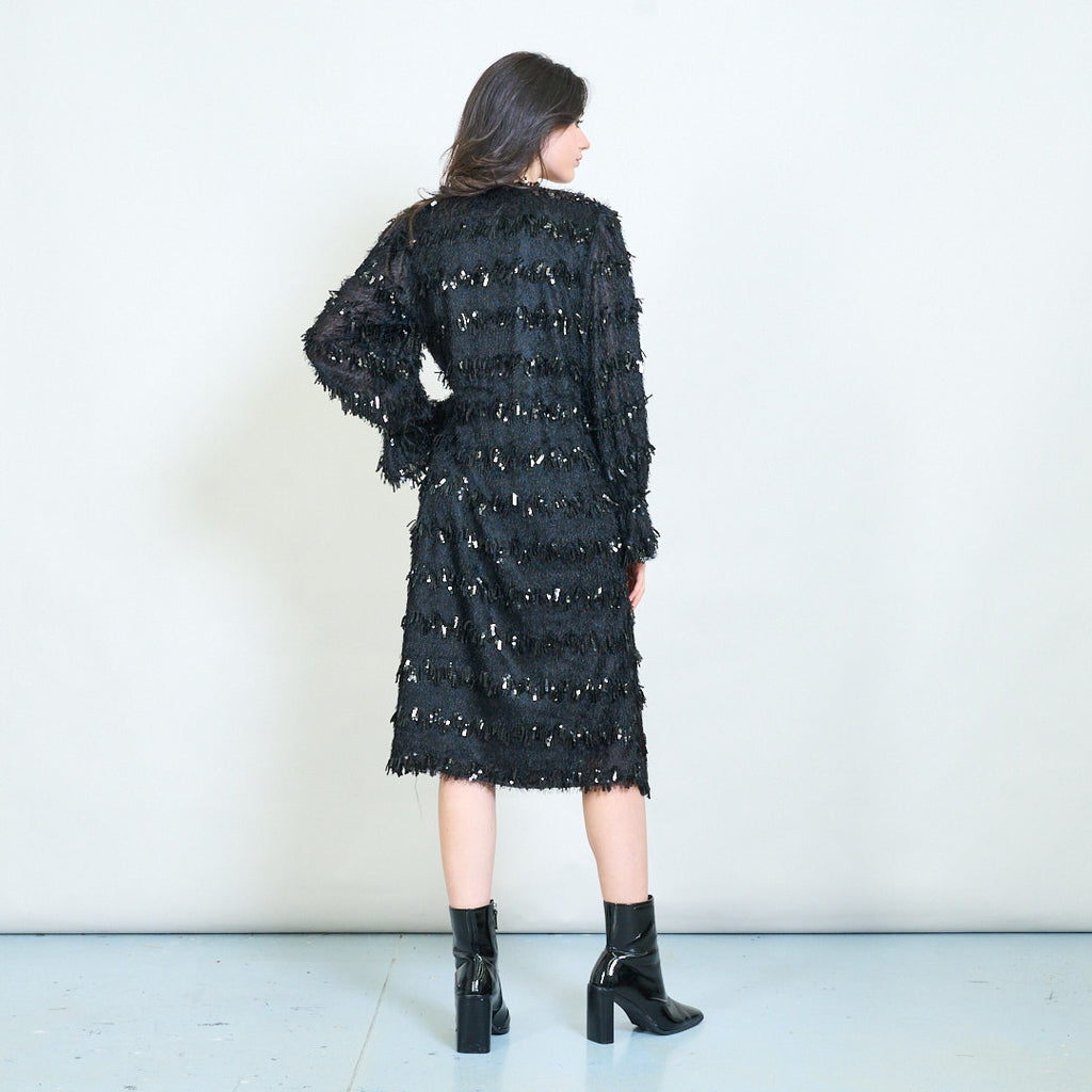 - „Shaggy Faux“ kailio apykaklė, rankogaliai ir hemline