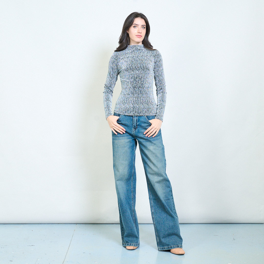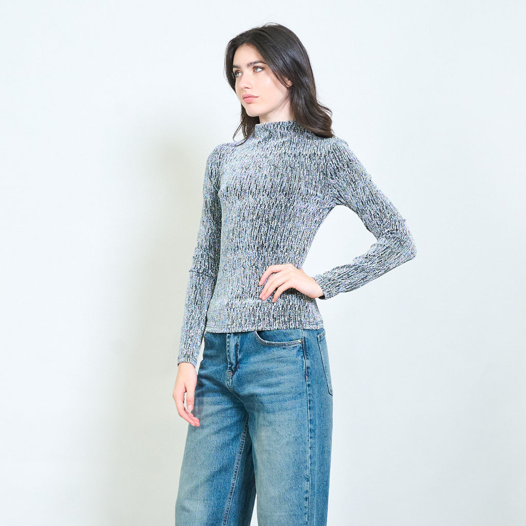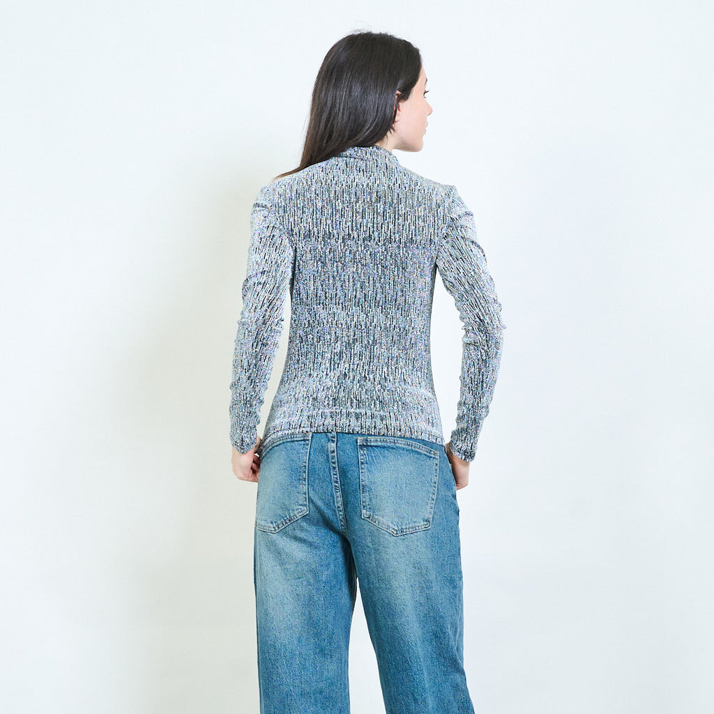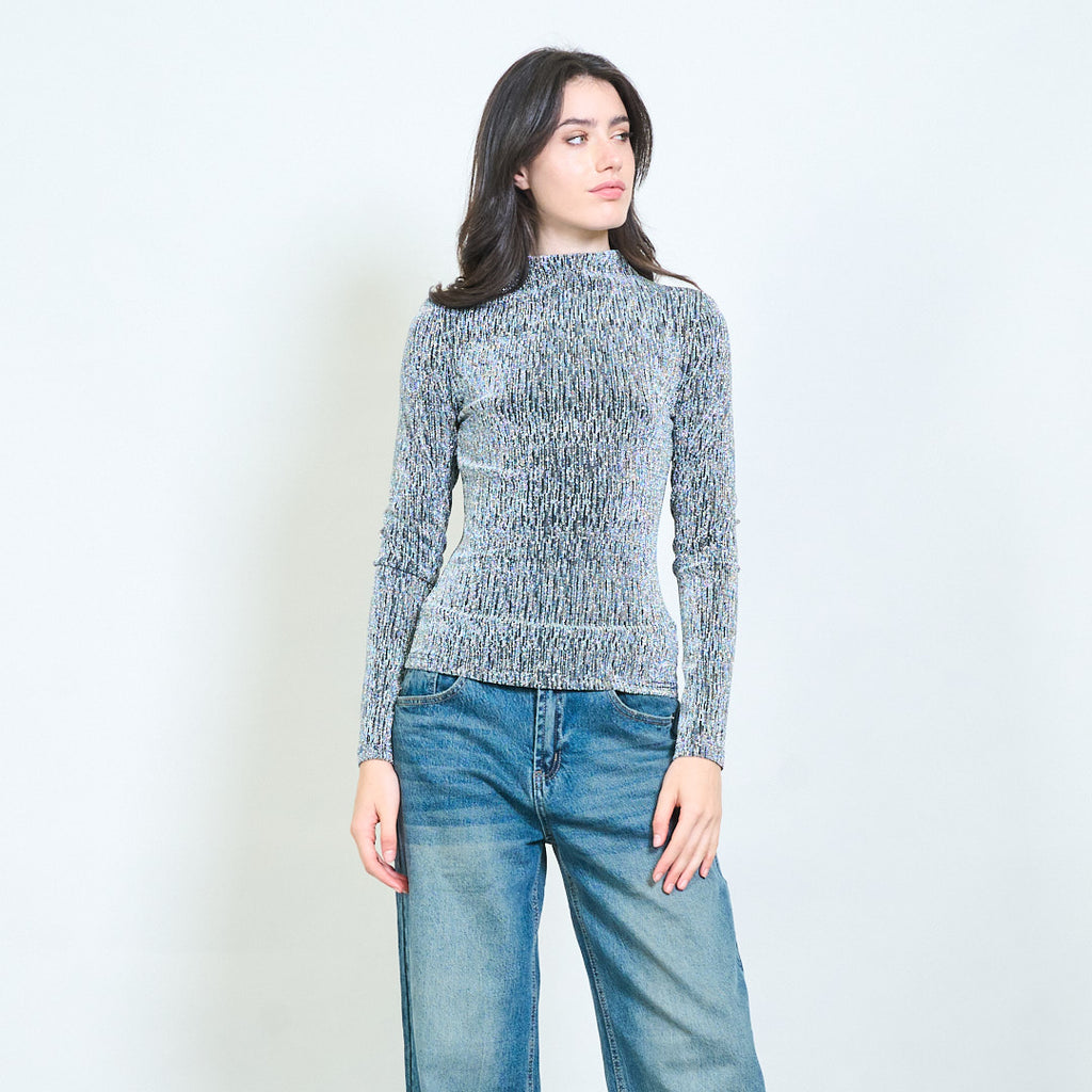 - Žvilgantis metalinis efektas su vertikalios juostelių dizainu