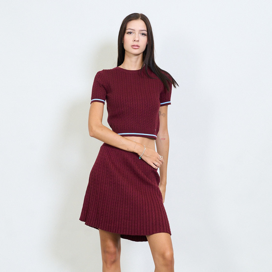 - Dviejų dalių kabelio megztinis komplektas su suderintu viršutine dalimi ir sijonu