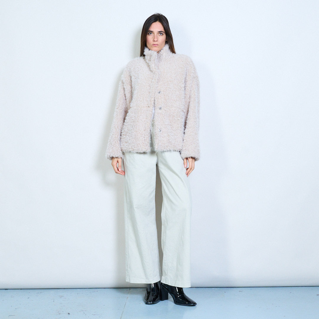 Fuzzy stendo apykaklės mygtukas priekis atsipalaidavusi striukė didmeninė prekyba