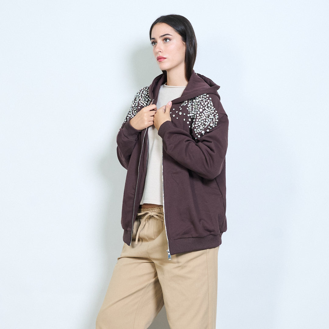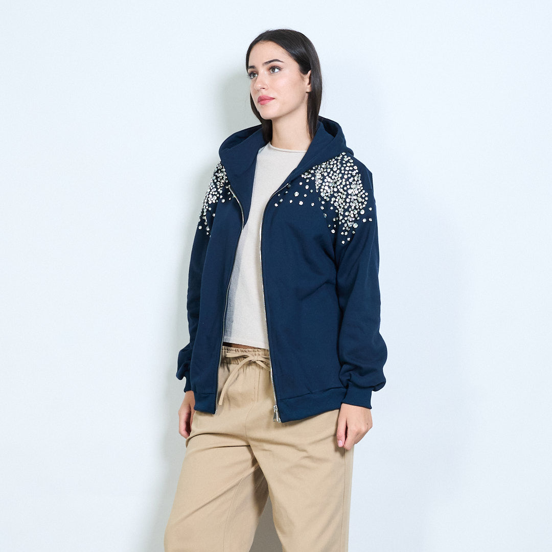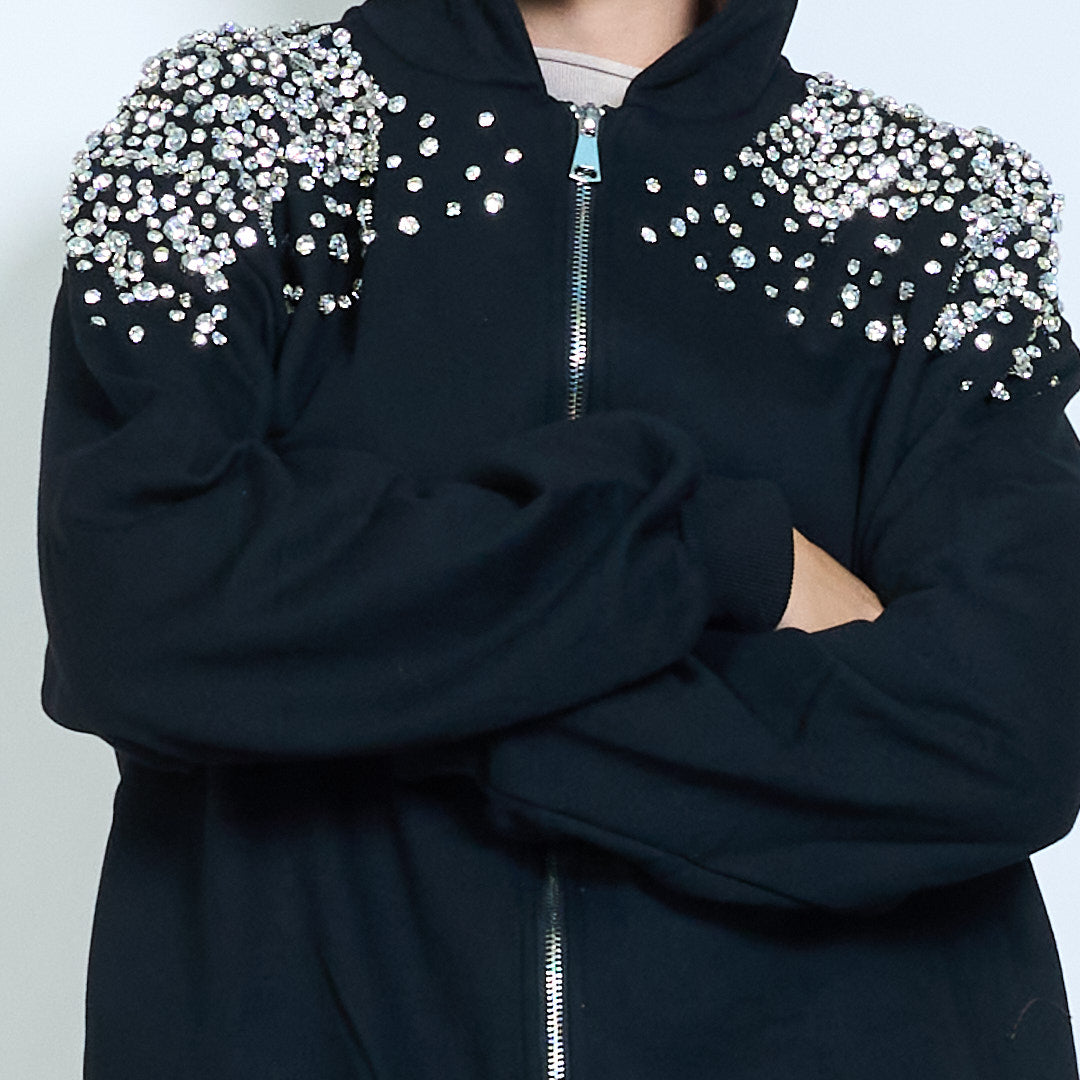Kalnų krištolas puošta striukė su užtrauktuku su gobtuvu didmeninė prekyba