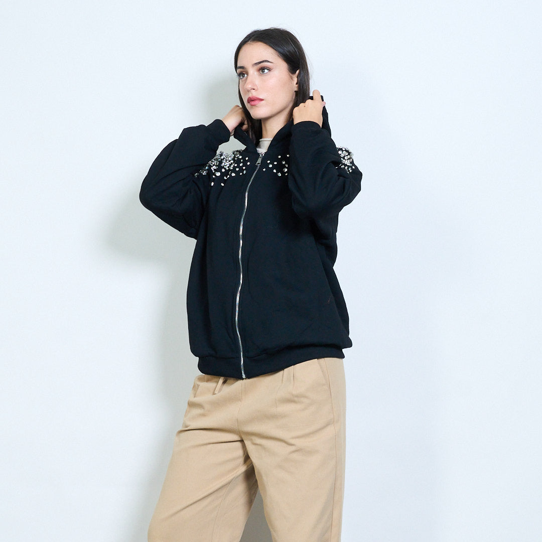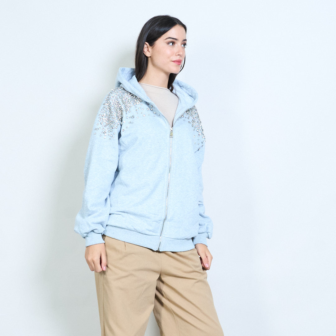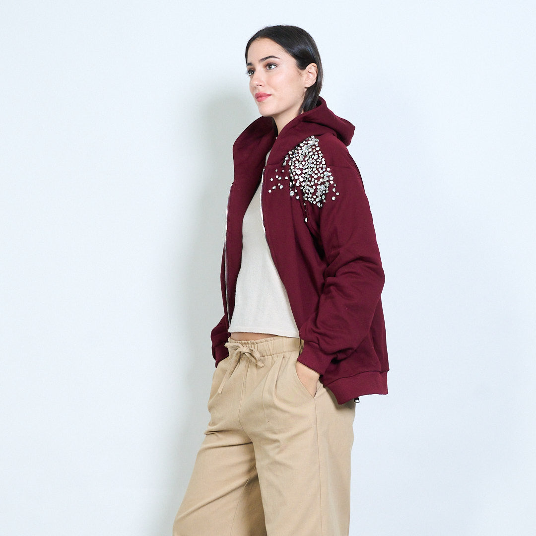 Kalnų krištolas puošta striukė su užtrauktuku su gobtuvu didmeninė prekyba