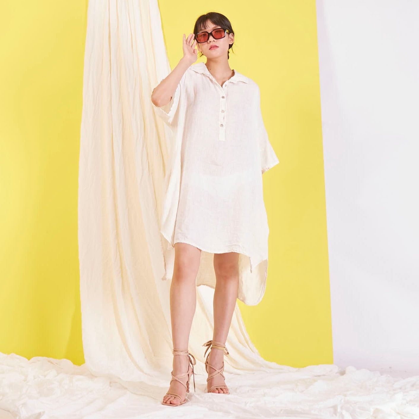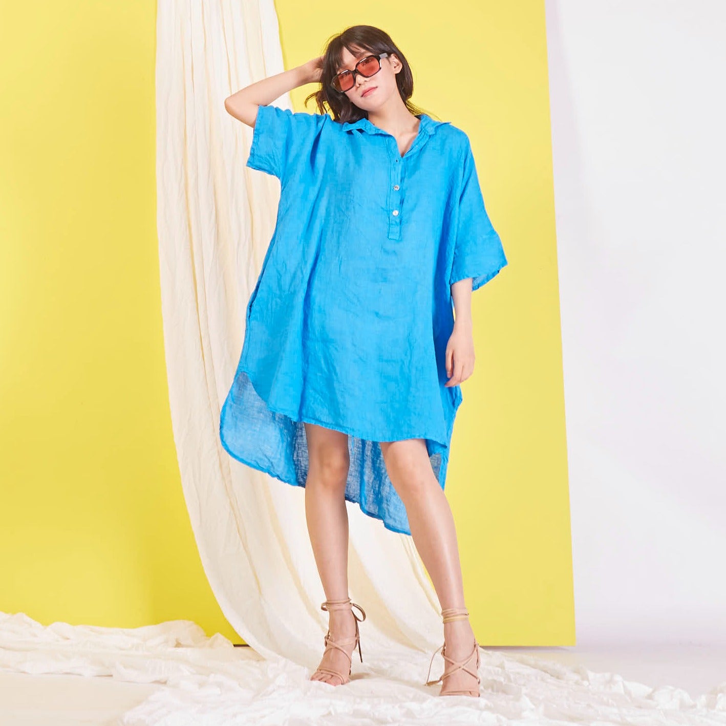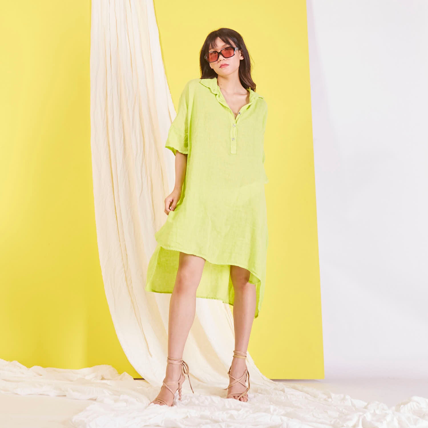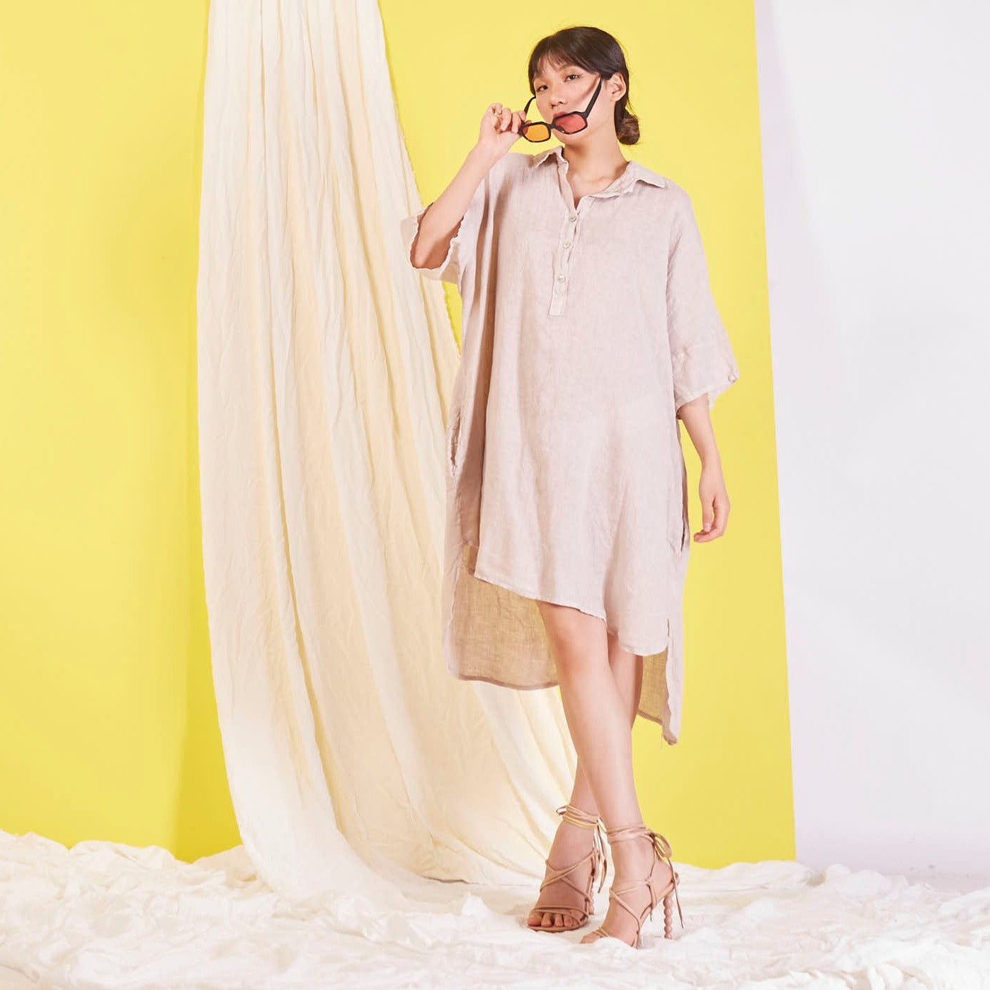 Didmeninė „Maxi“ lininė suknelė su marškinių apykakle