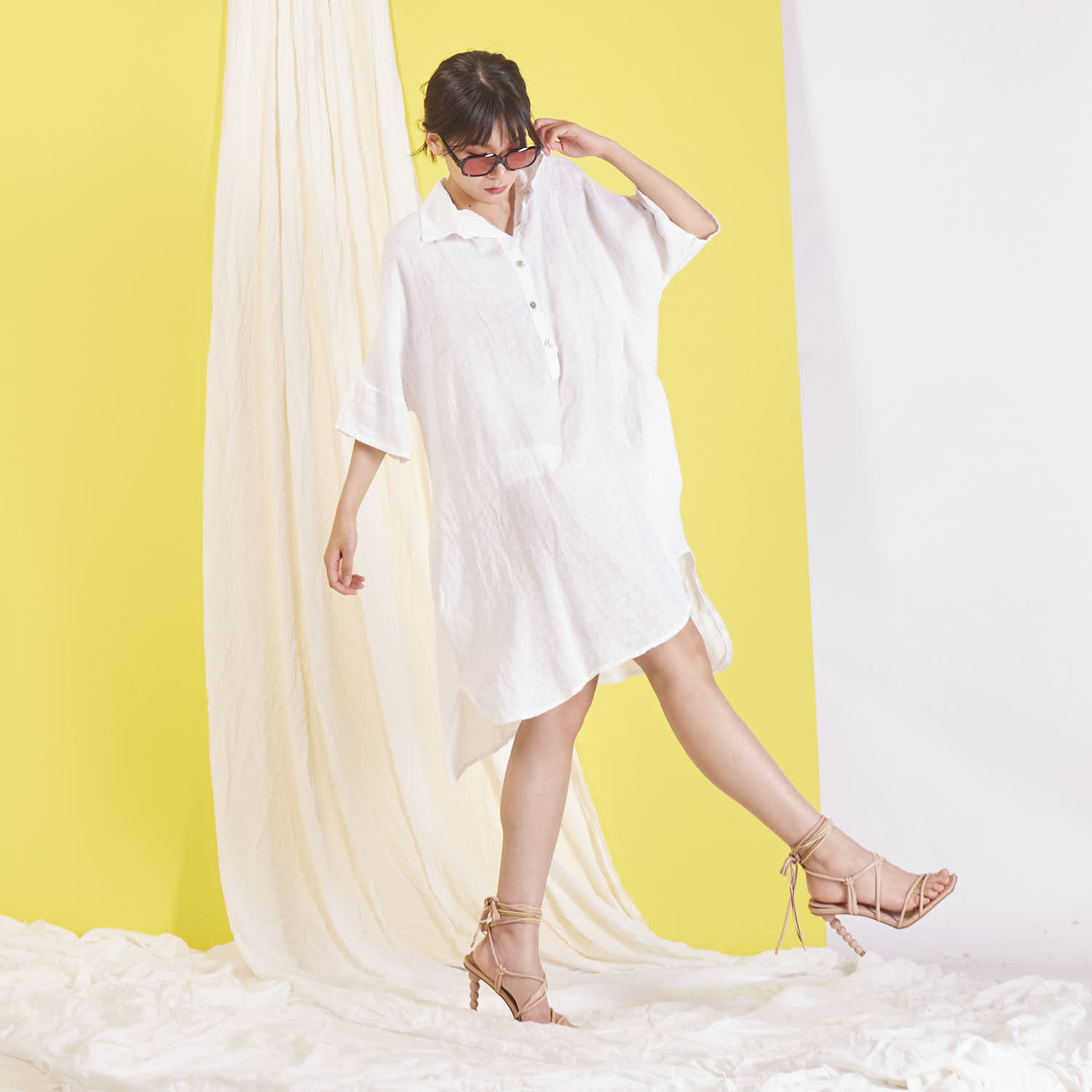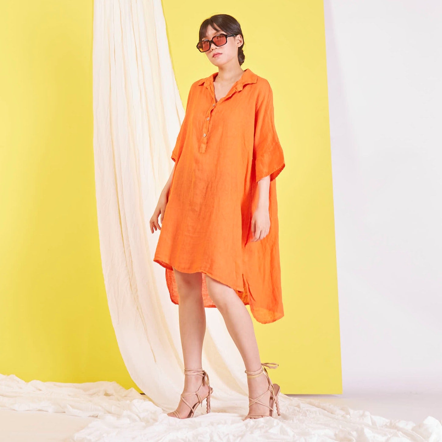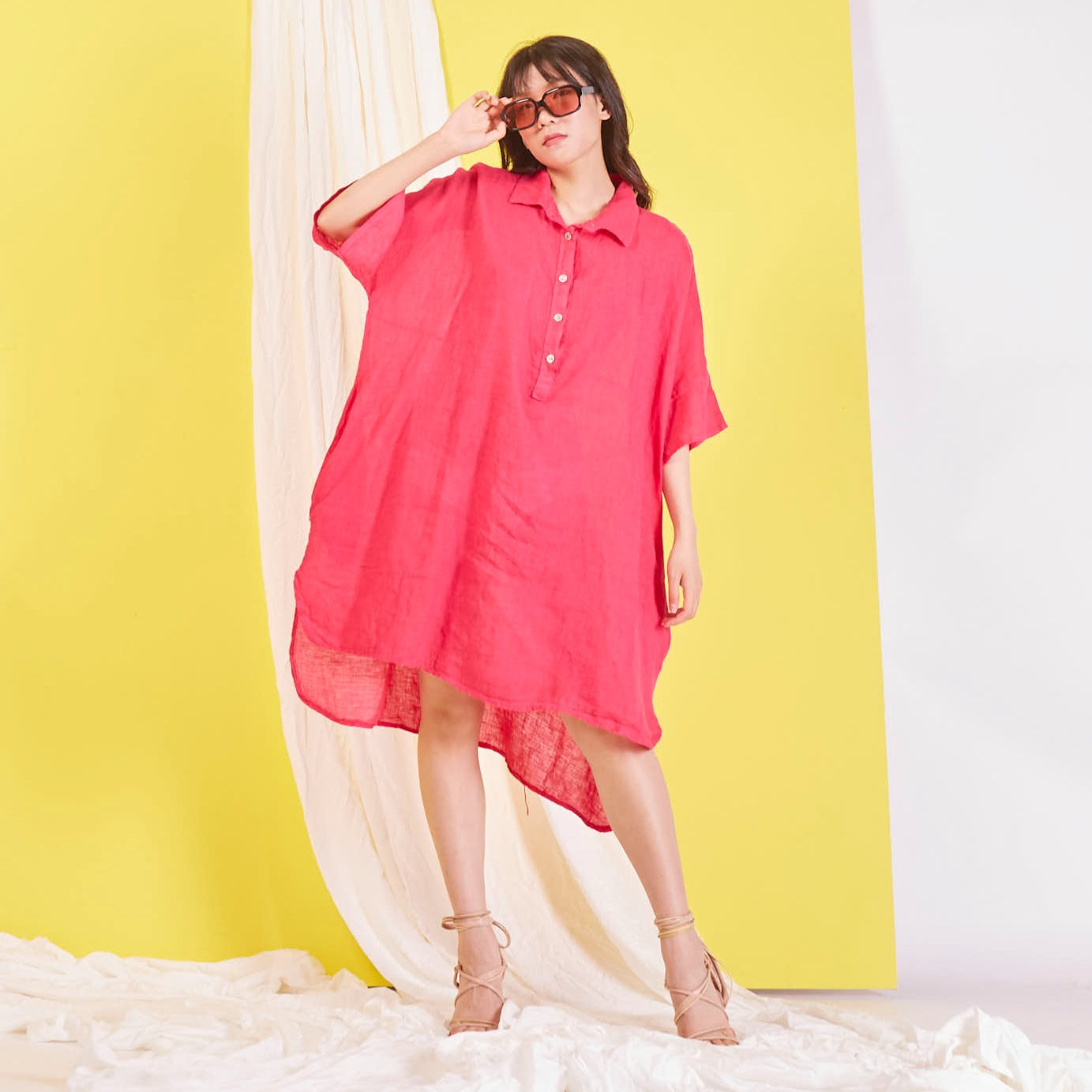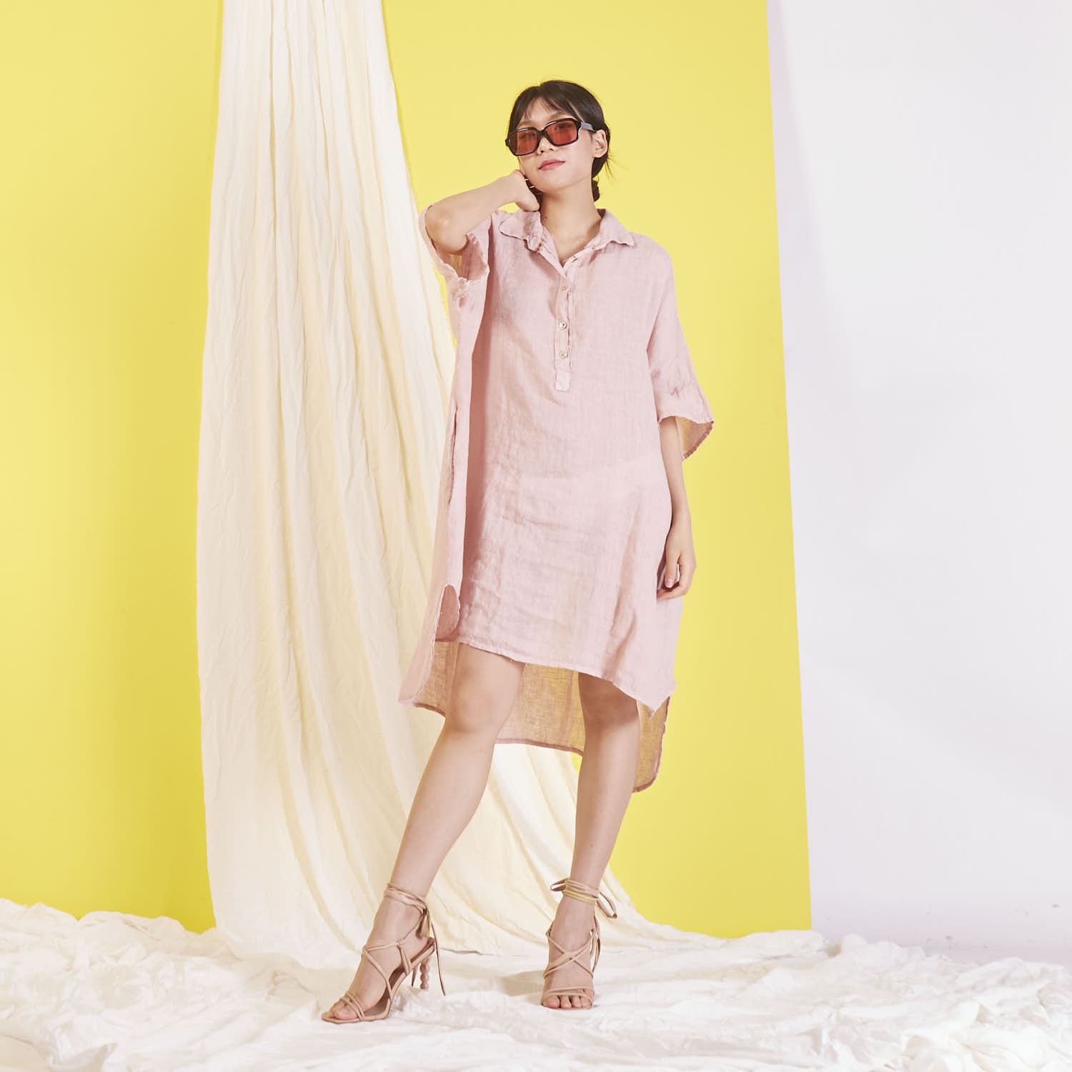 Didmeninė „Maxi“ lininė suknelė su marškinių apykakle