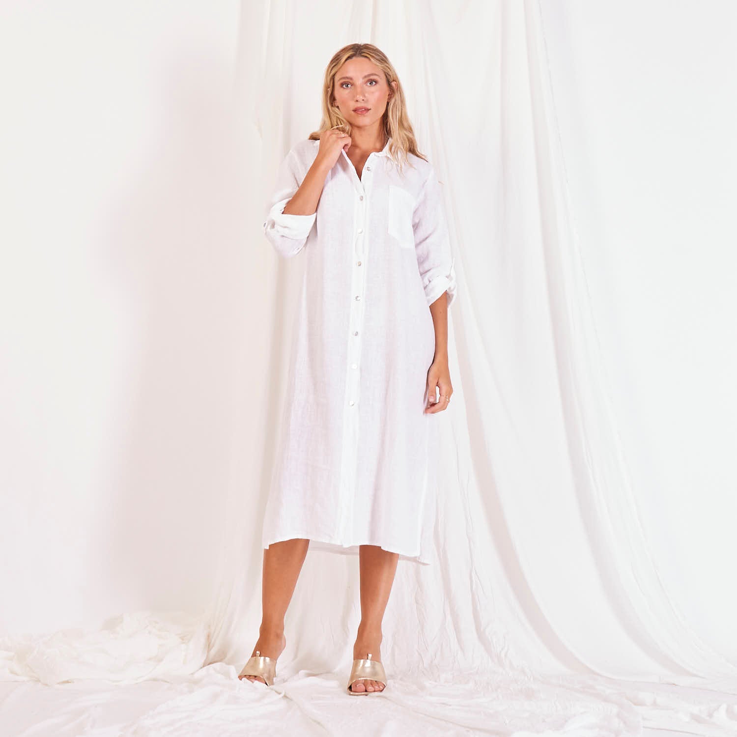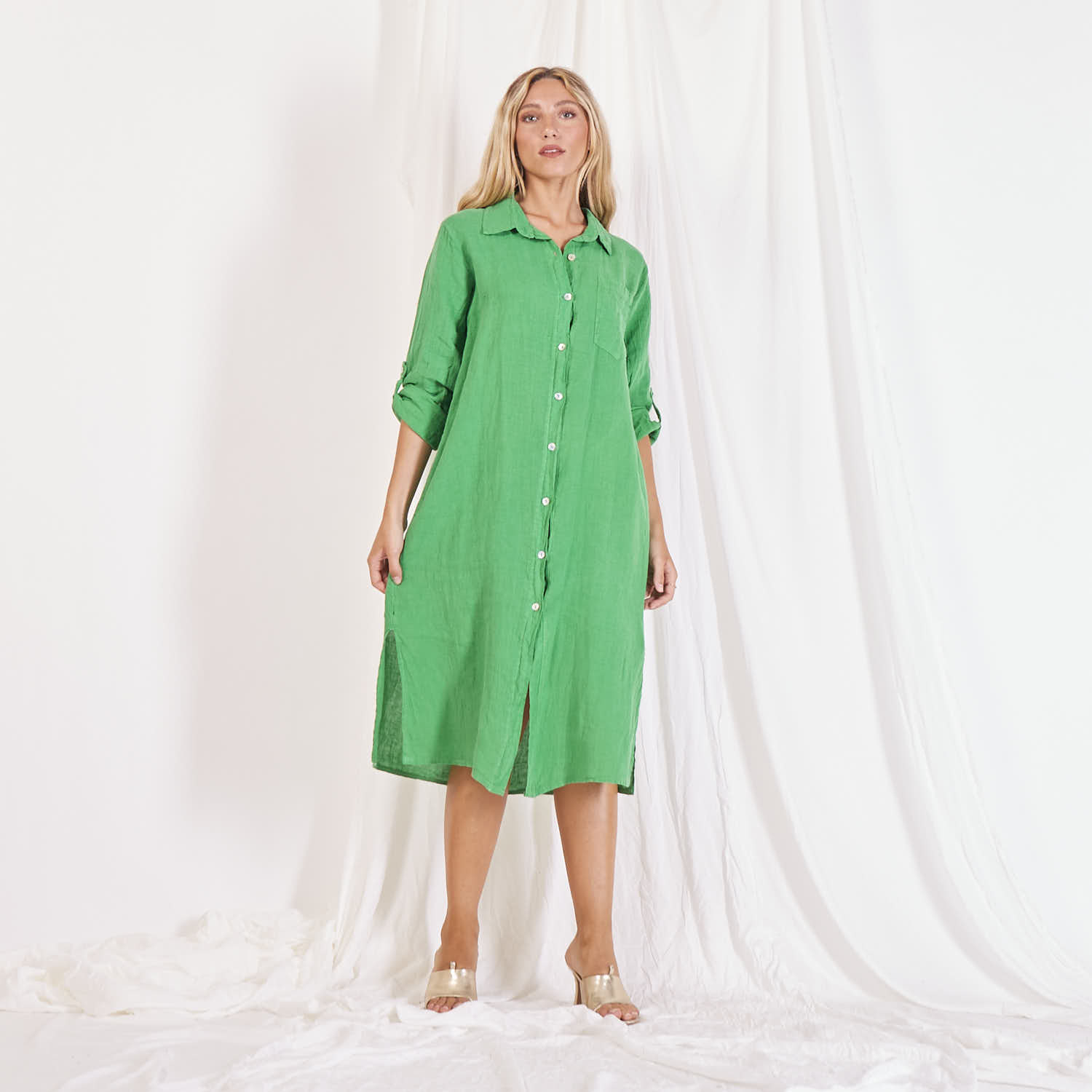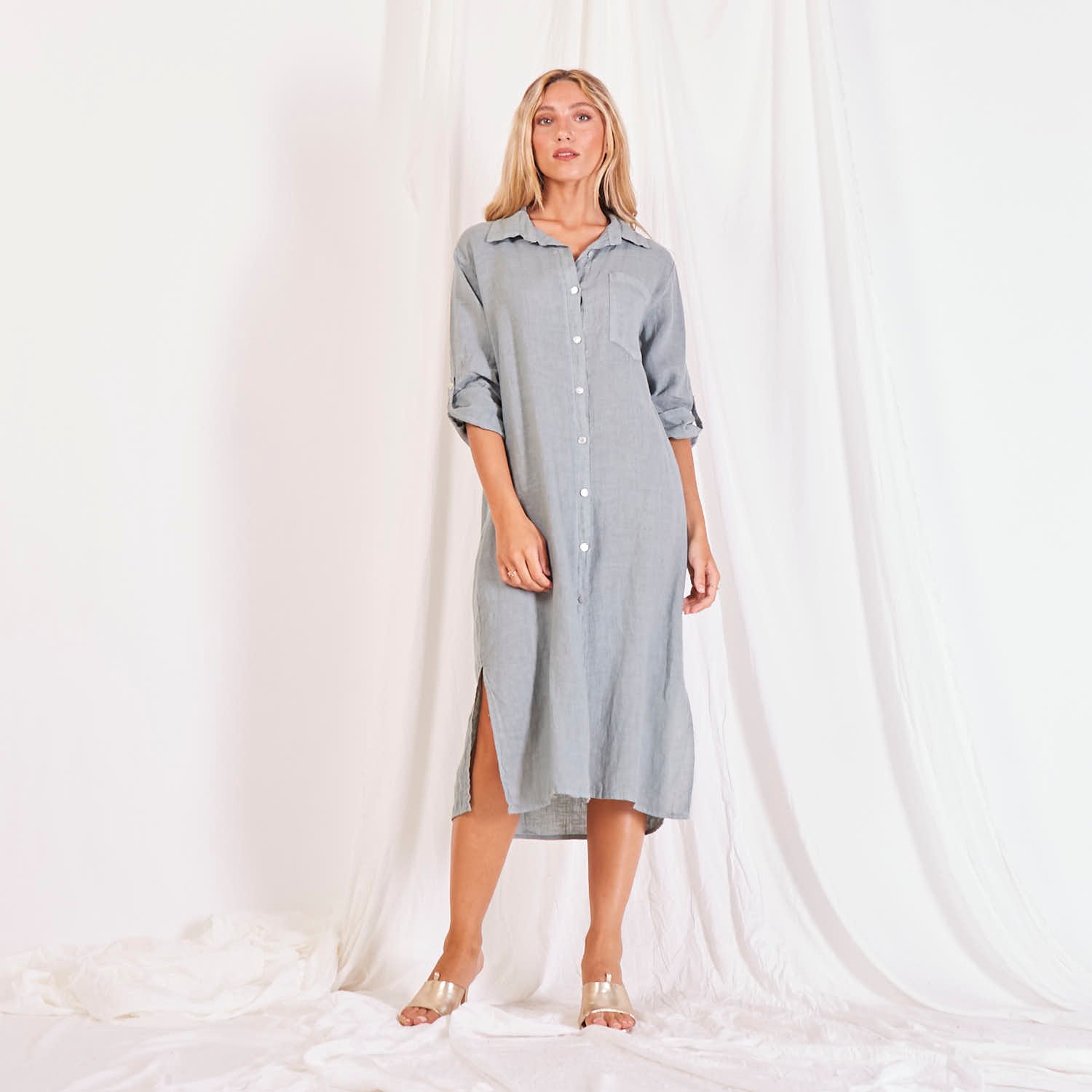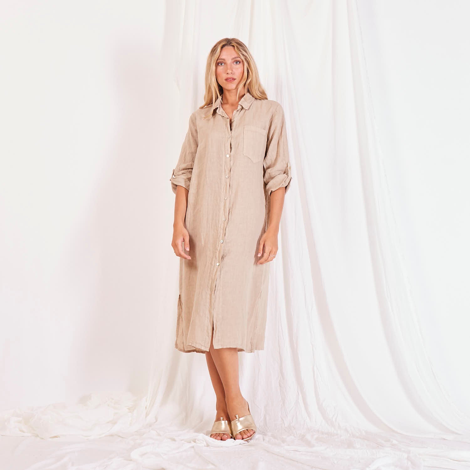 Didmeninės lininės marškinių suknelė su mygtukais