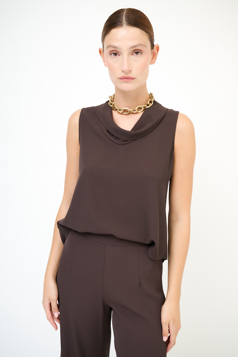 Drapinė iškirptė be rankovių.