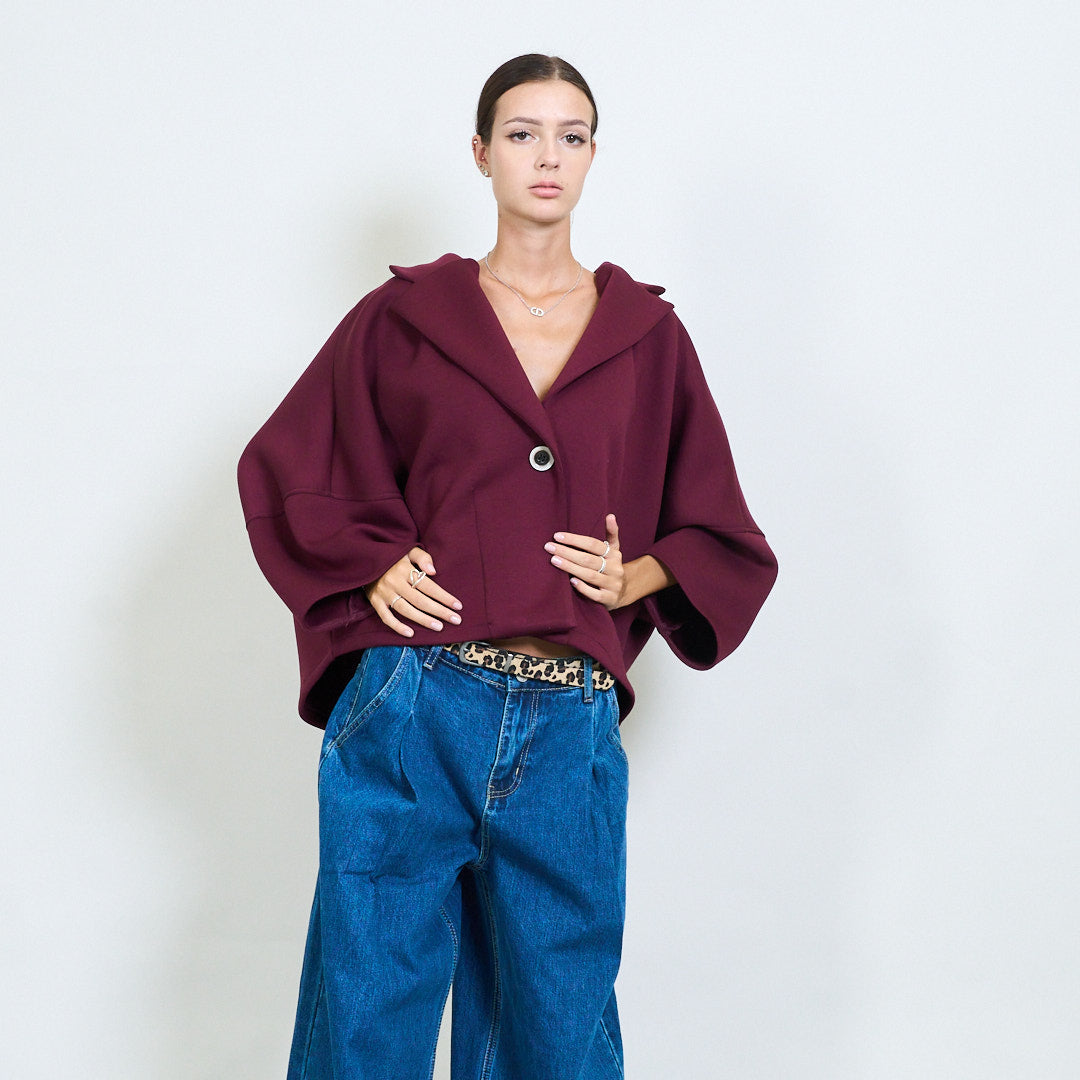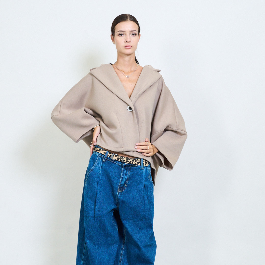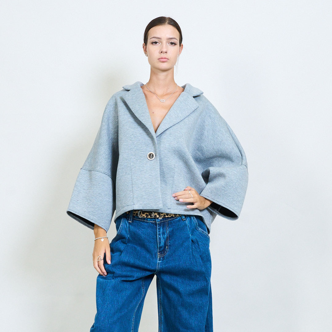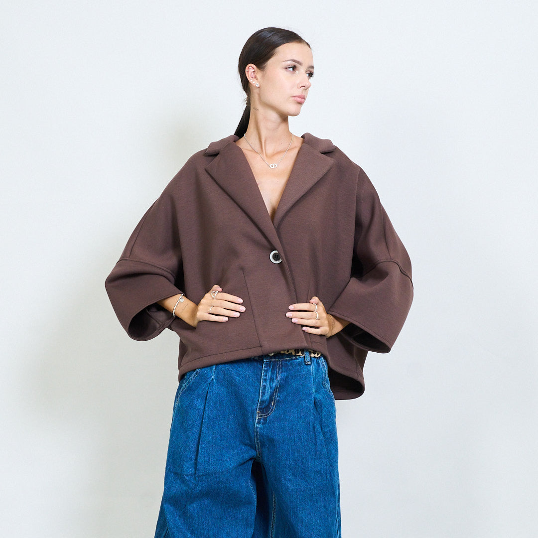 Apkarpytas „Cape“ stiliaus švarkelis su didmeniniu mygtuku