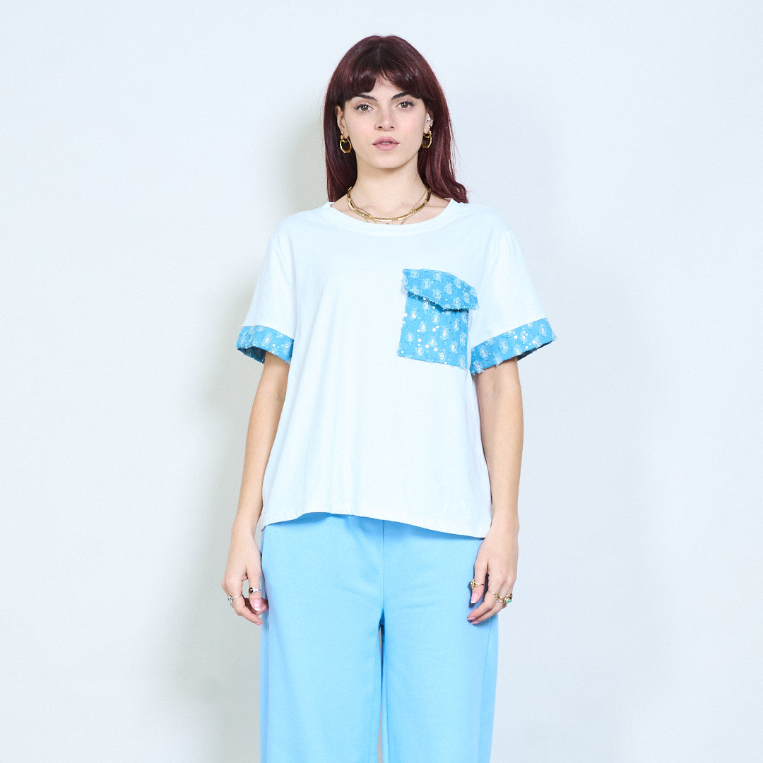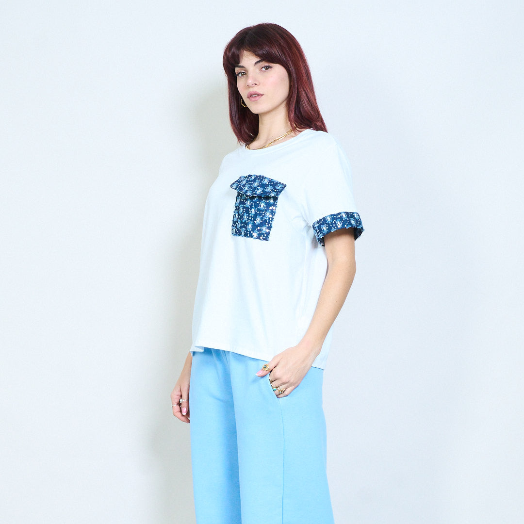 Didmeninė prekyba blizgučiais su kišenėmis, trumpomis rankovėmis apvalia kaklą